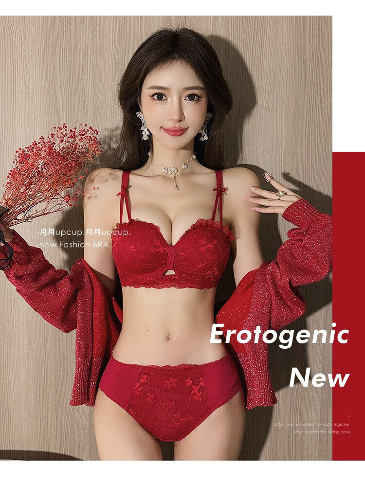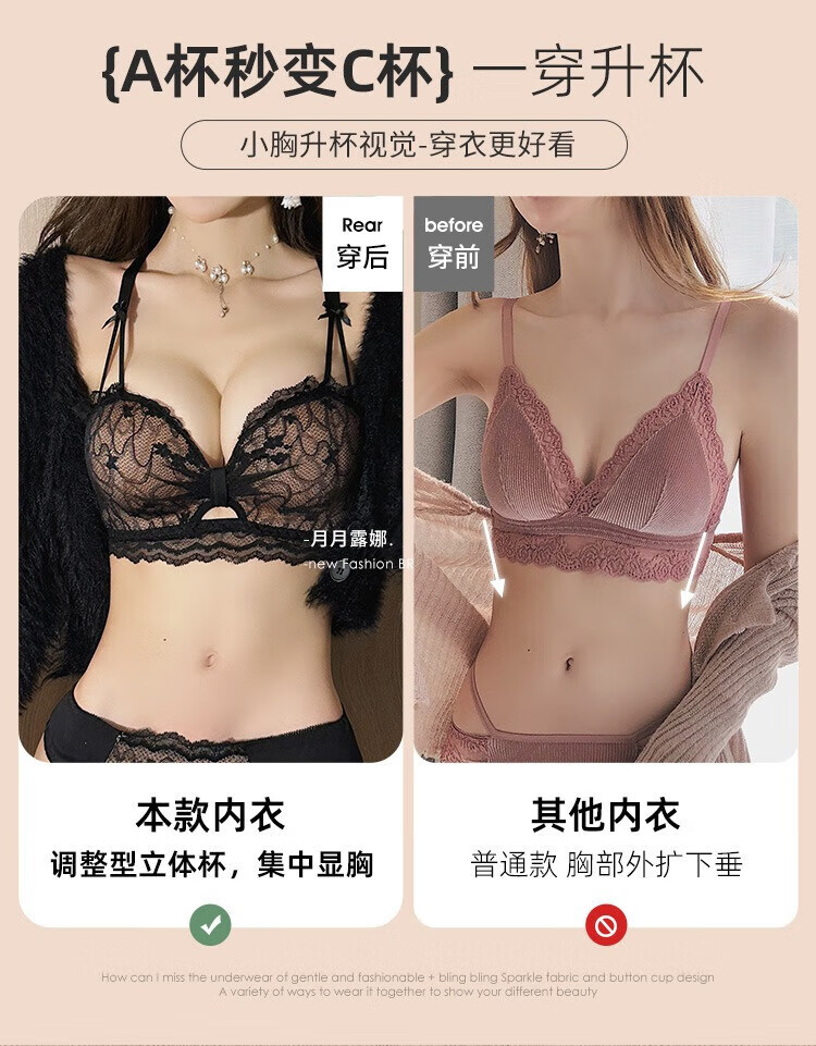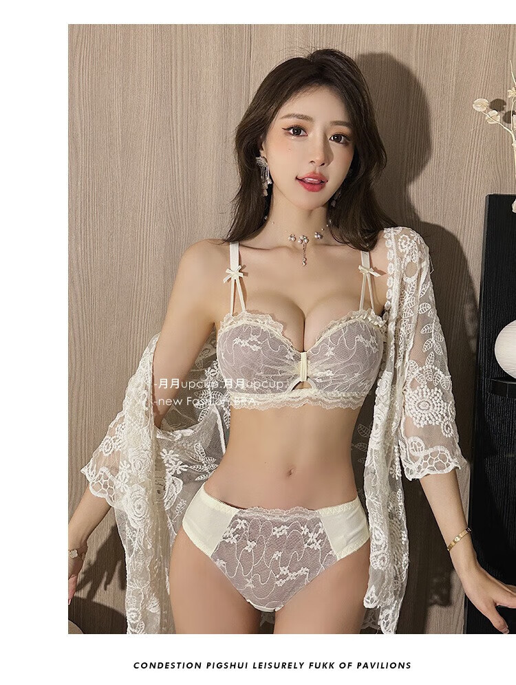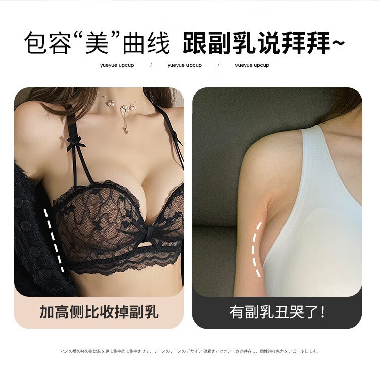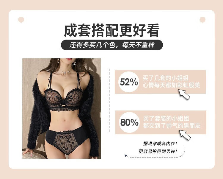 Victoria's Fantasy French underwear women's small bra push-up big sexy lace bra set with anti-sagging no wires black suit 70A 32