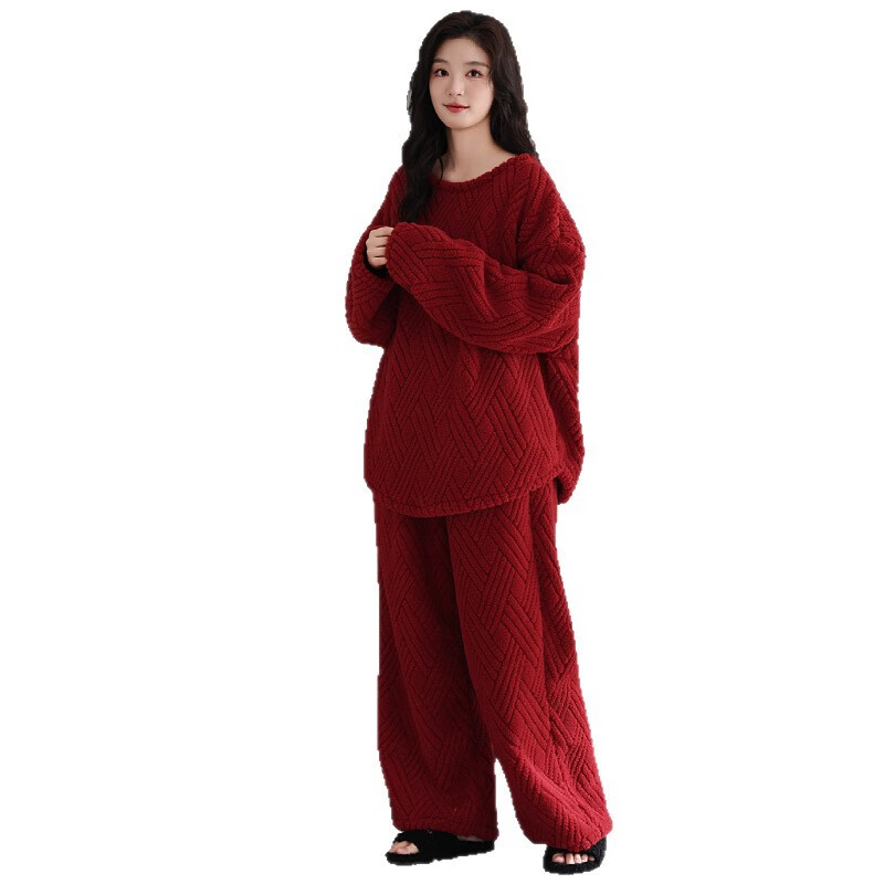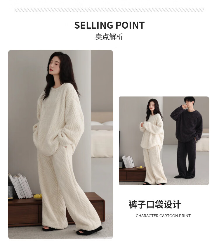Modal Couple Pajamas Zodiac Year Women's Red Coral Velvet Suit Winter Home Clothes Men's Thickened Festive Wedding Suit Red + Male (With Pocket) M (80-100Jin Jin equals 0.5kg)