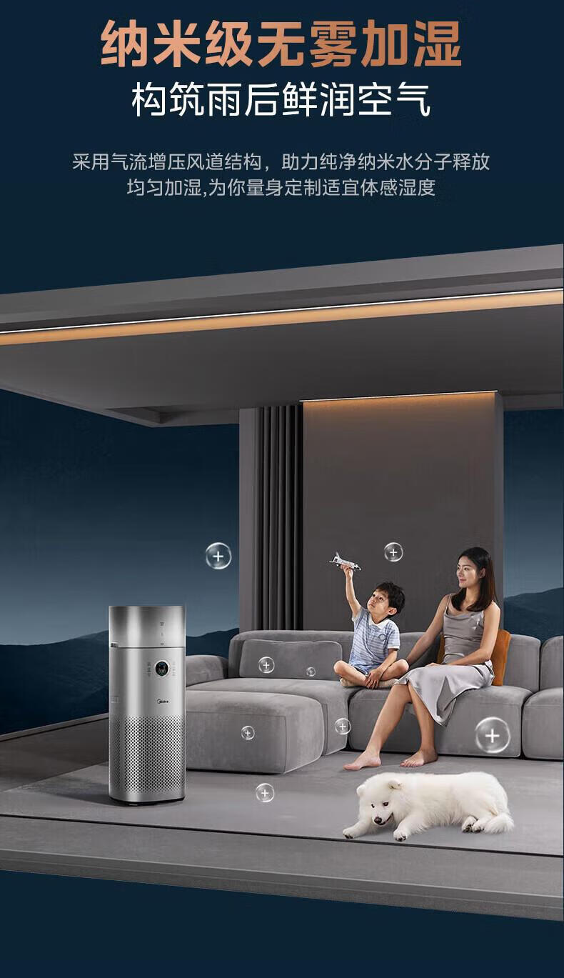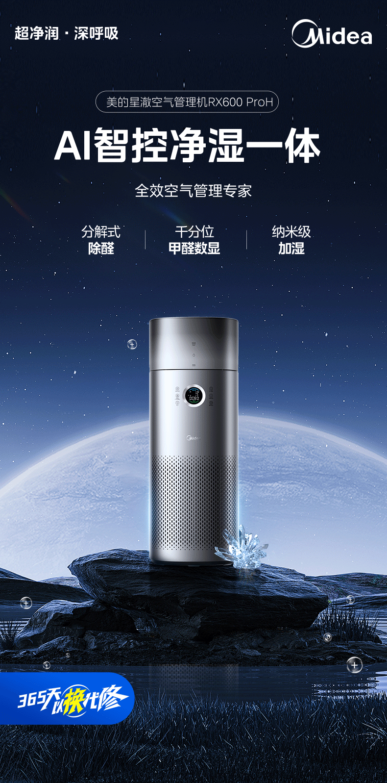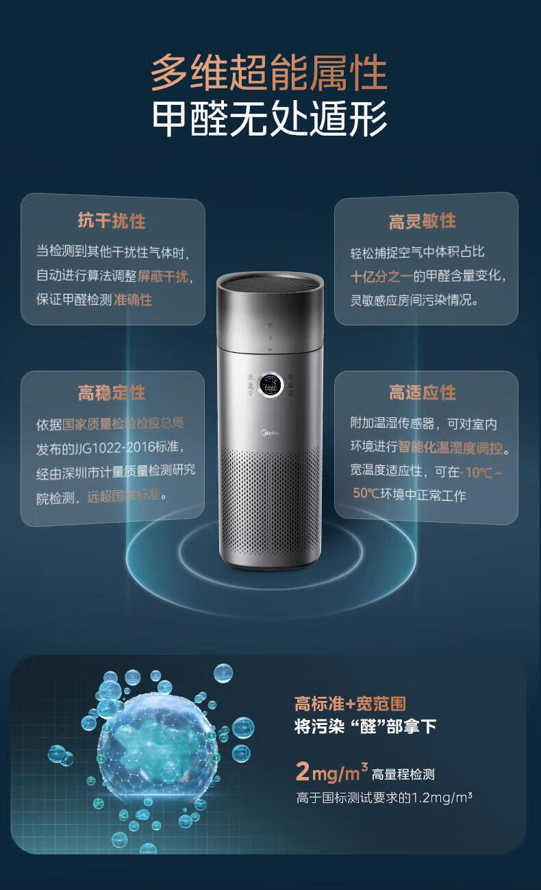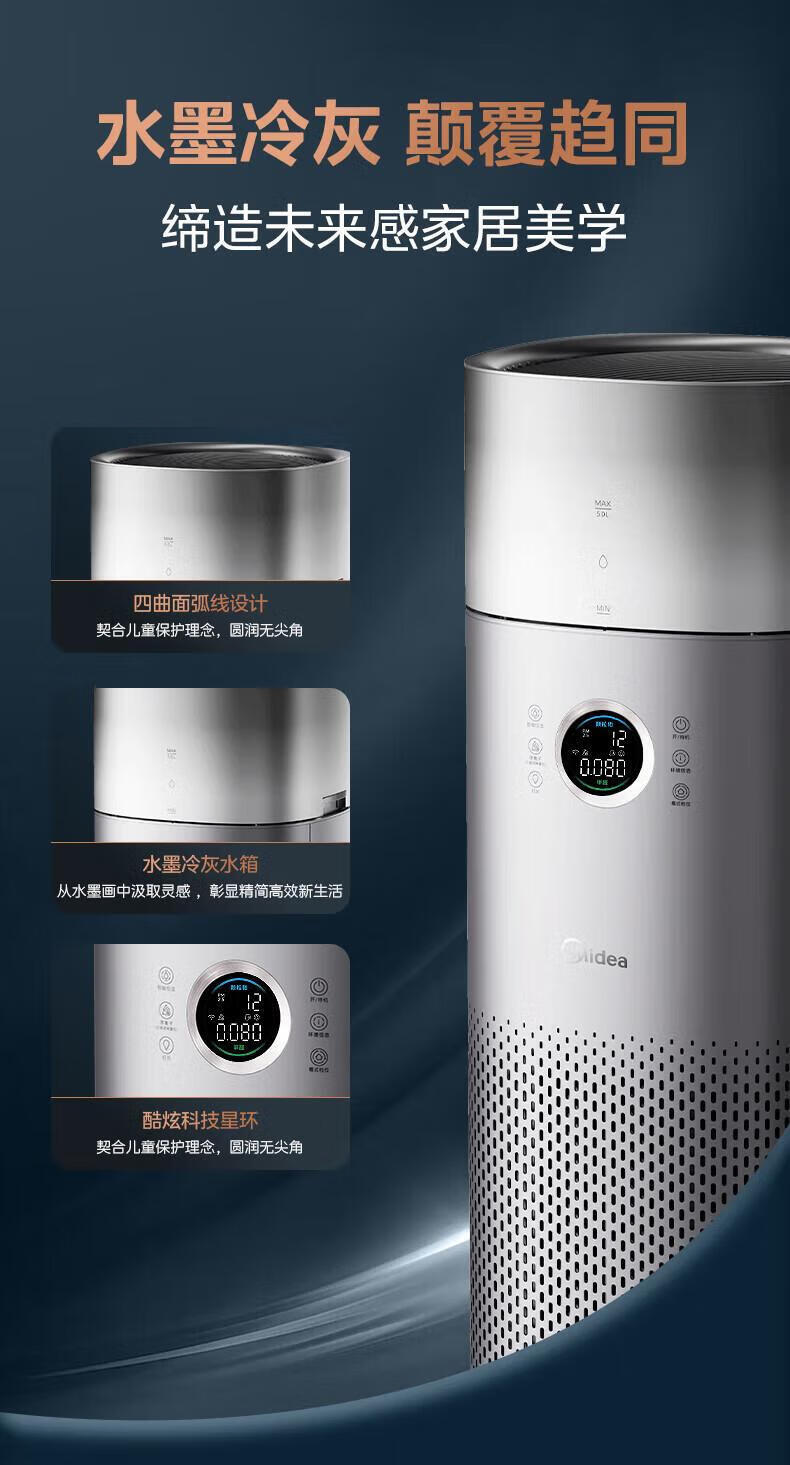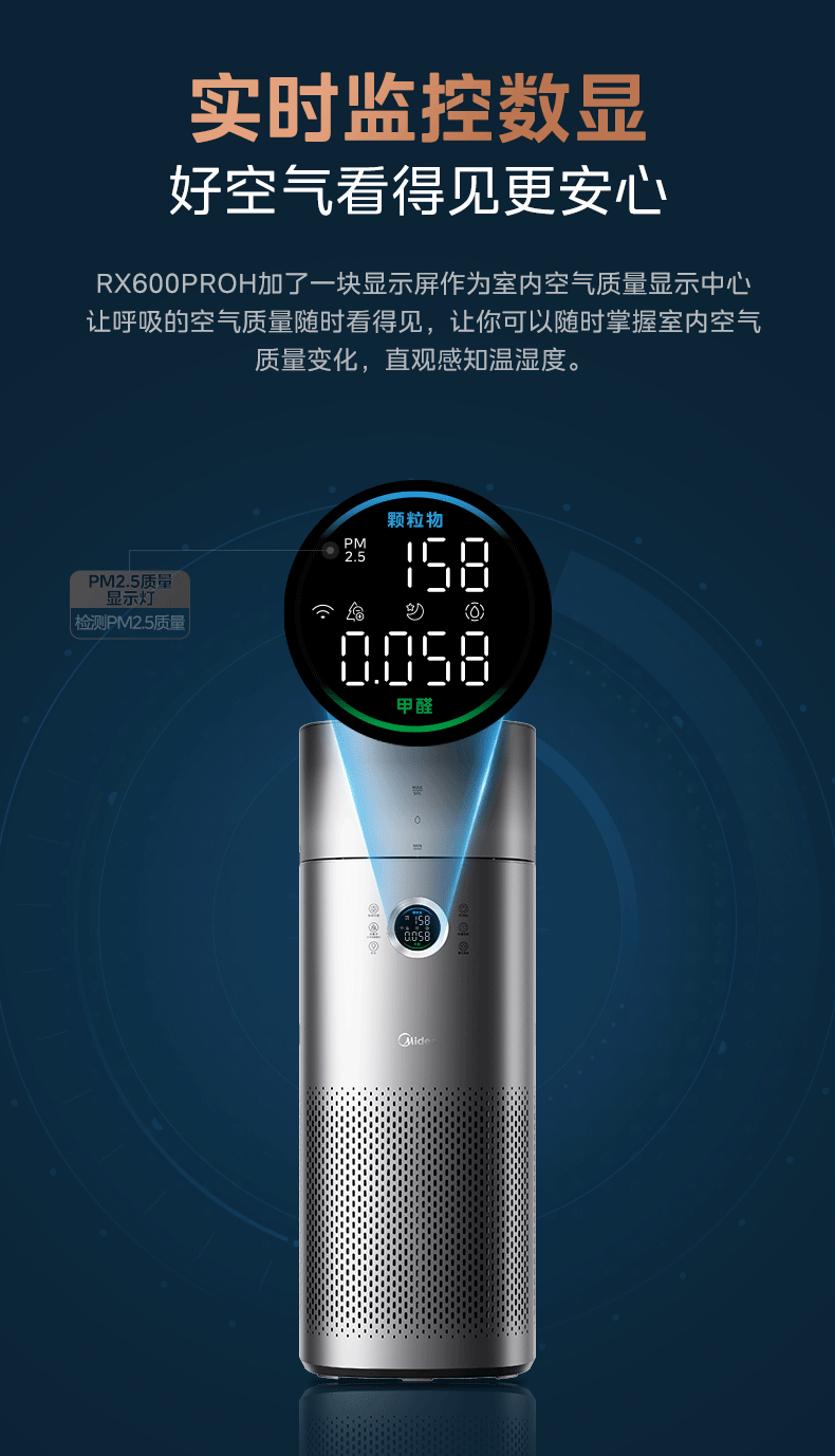 Midea Xingche Air Care Machine Decomposition-type air purifier removes formaldehyde, odor, haze, smoke, and sterilizes cat hair. Medical-grade household disinfection machine. Ion purifier. New formaldehyde dual digital display RX600 ProH.
