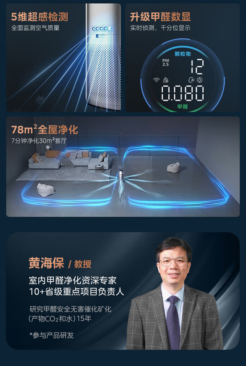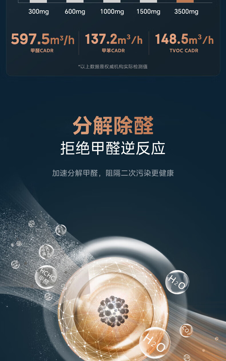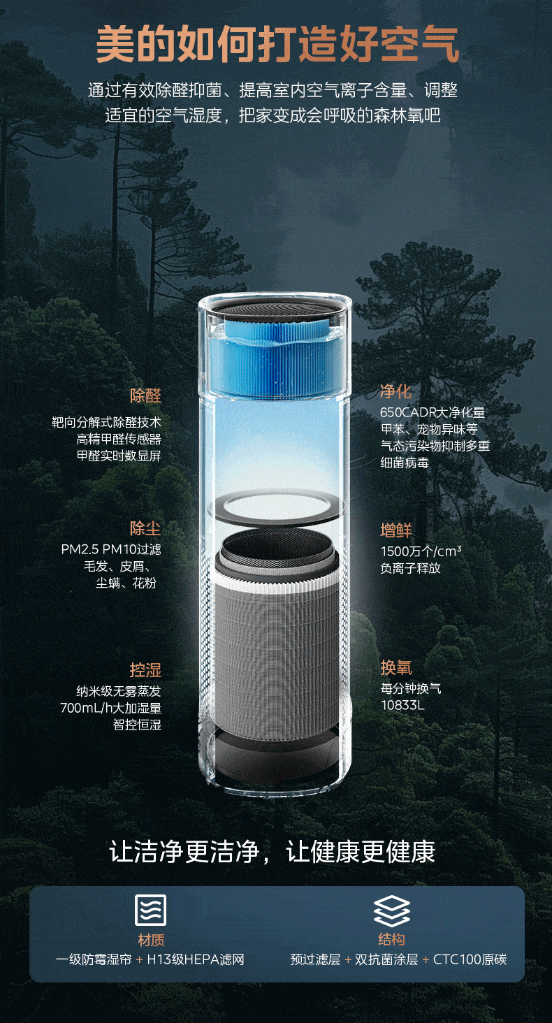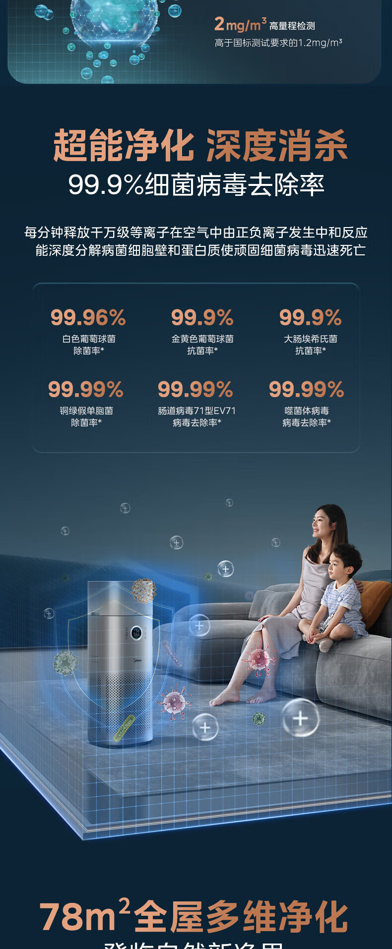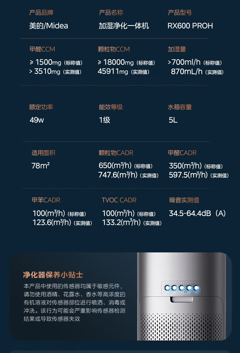 Midea Xingche Air Care Machine Decomposition-type air purifier removes formaldehyde, odor, haze, smoke, and sterilizes cat hair. Medical-grade household disinfection machine. Ion purifier. New formaldehyde dual digital display RX600 ProH.