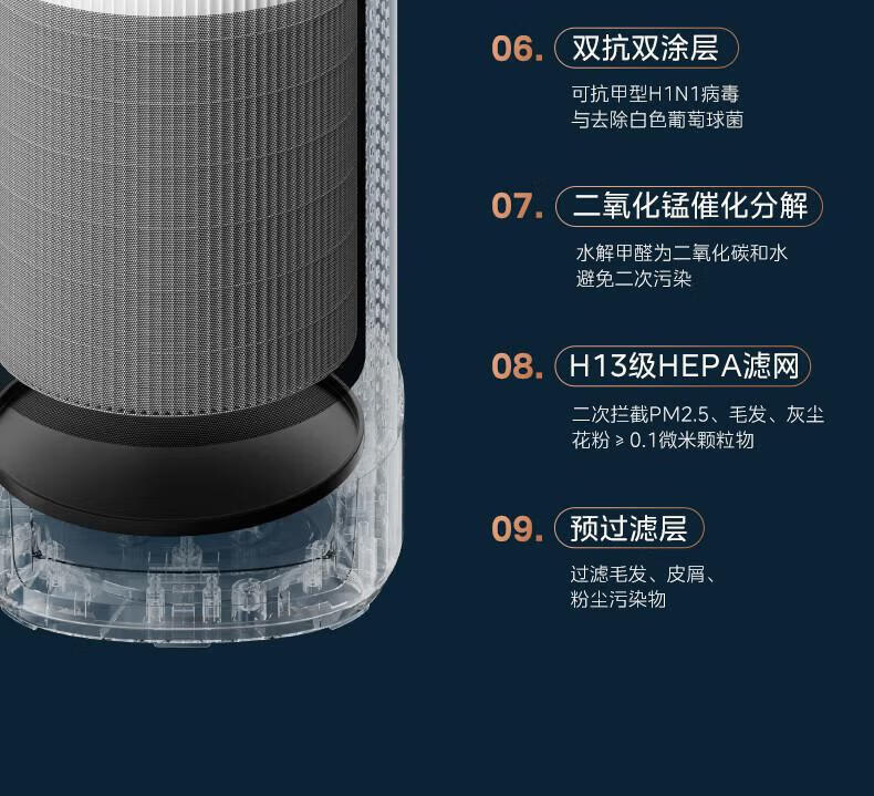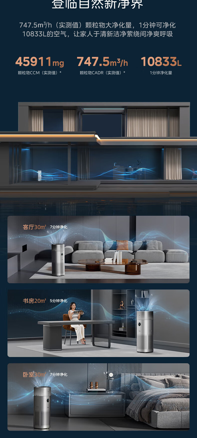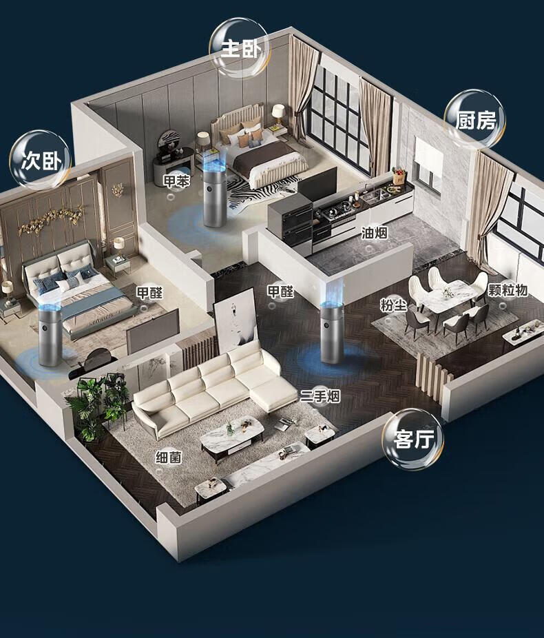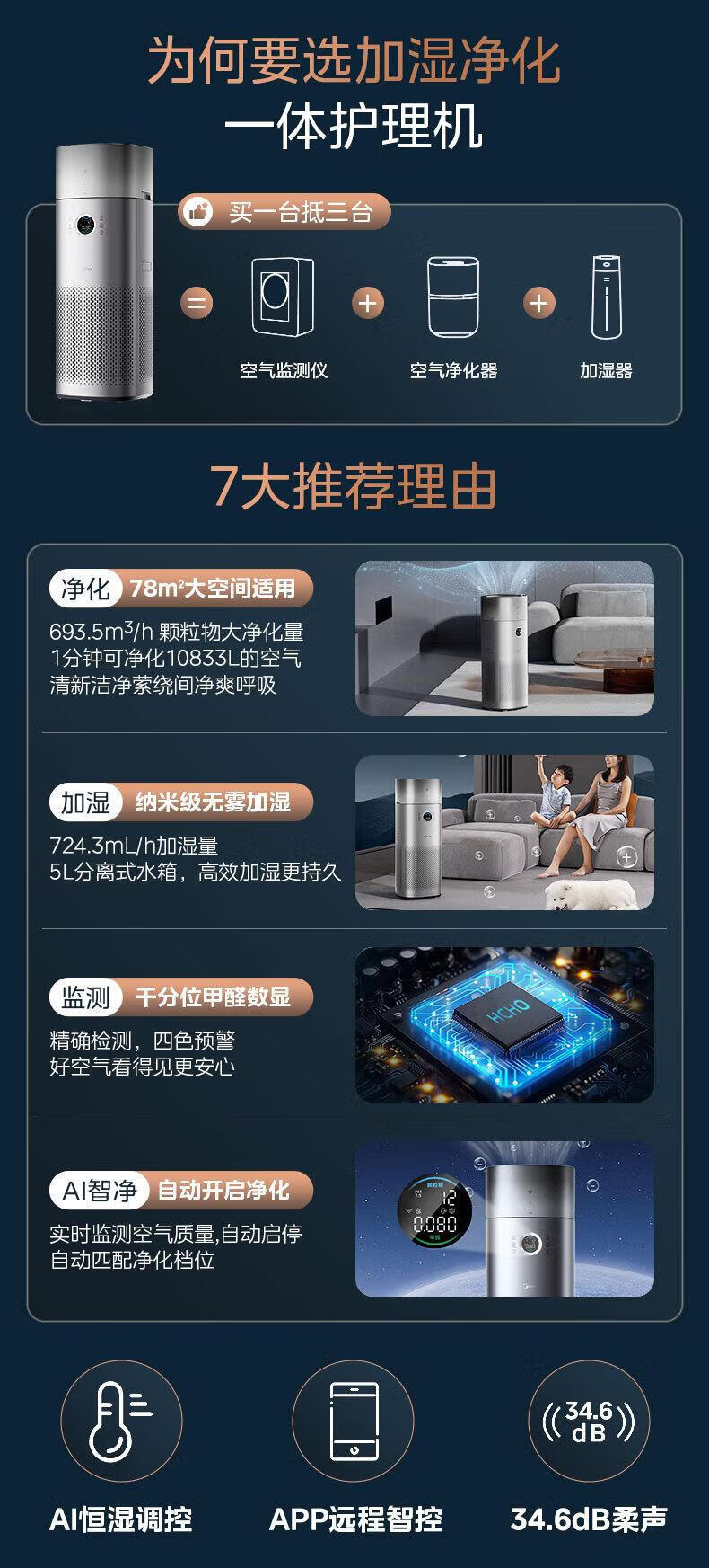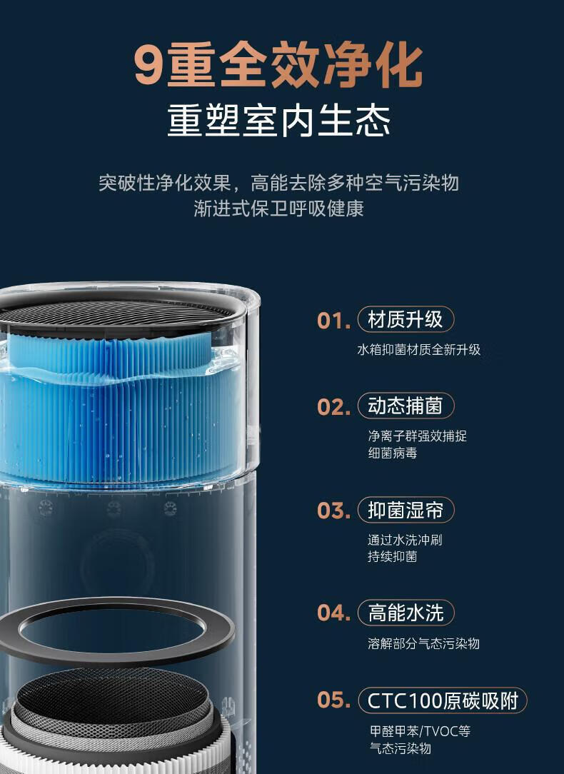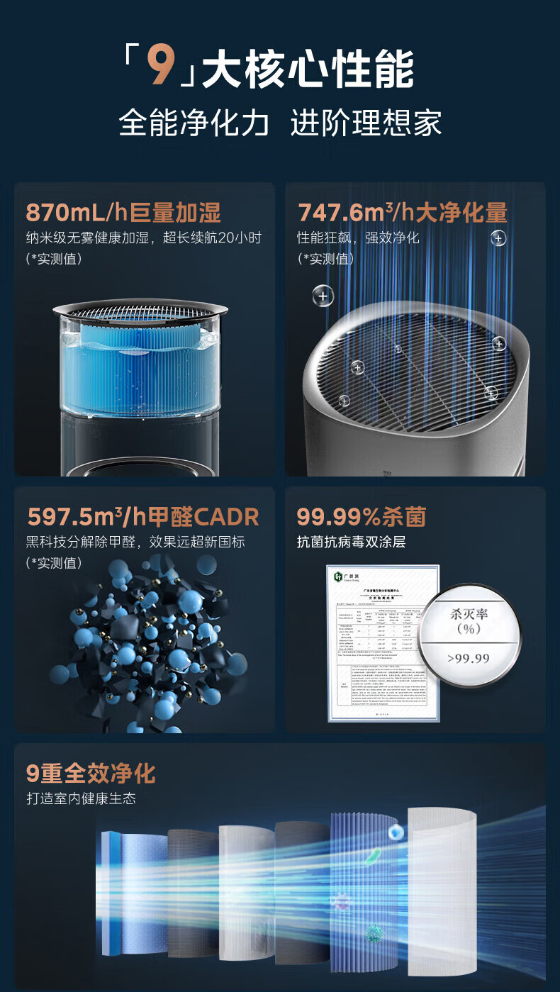 Midea Xingche Air Care Machine Decomposition-type air purifier removes formaldehyde, odor, haze, smoke, and sterilizes cat hair. Medical-grade household disinfection machine. Ion purifier. New formaldehyde dual digital display RX600 ProH.