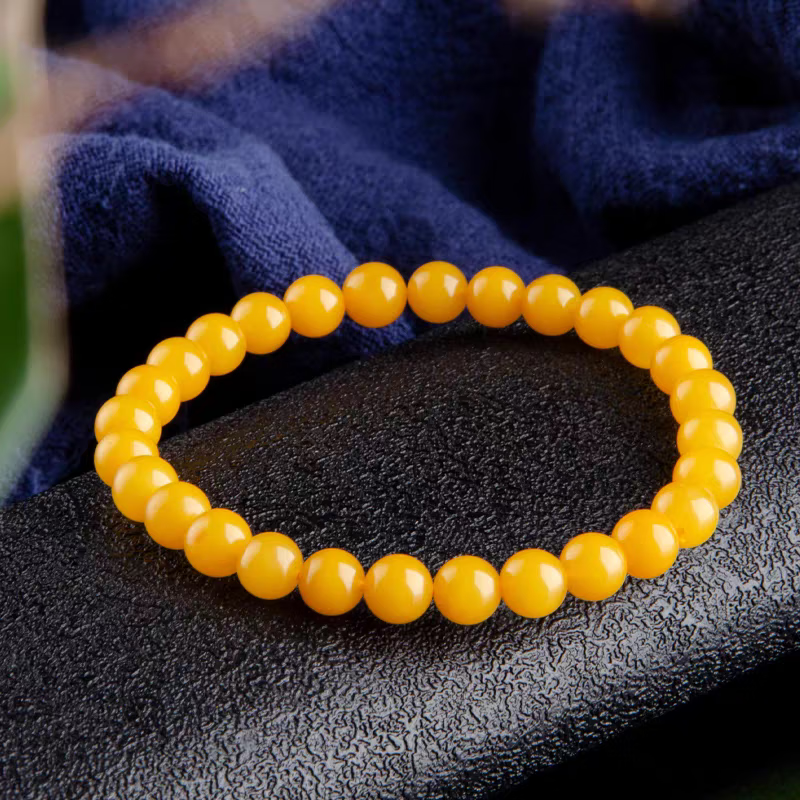 VAUBEL natural old beeswax bracelets for women, authentic chicken oil yellow bracelets, Buddha beads, and Chinese characters, super popular birthday gifts for boyfriends and girlfriends, auspicious and wealthy 10mm-collectible natural beeswax (one item, one certificate)