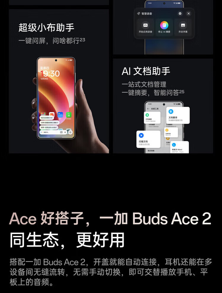 OPPO OnePlus Ace5 pro buy Snapdragon 8 Extreme Edition, Windchi Gaming Core, Tiangong Cooling, 6400mAh, Full Speed Black, 12GB+256GB Bluetooth Headset Set Version | Broken Screen Insurance + 365 Days Store Extended Warranty