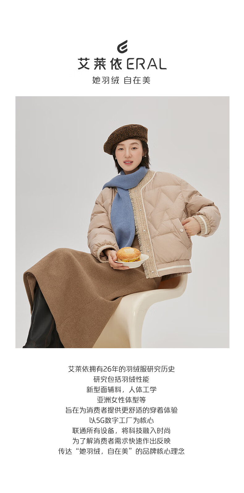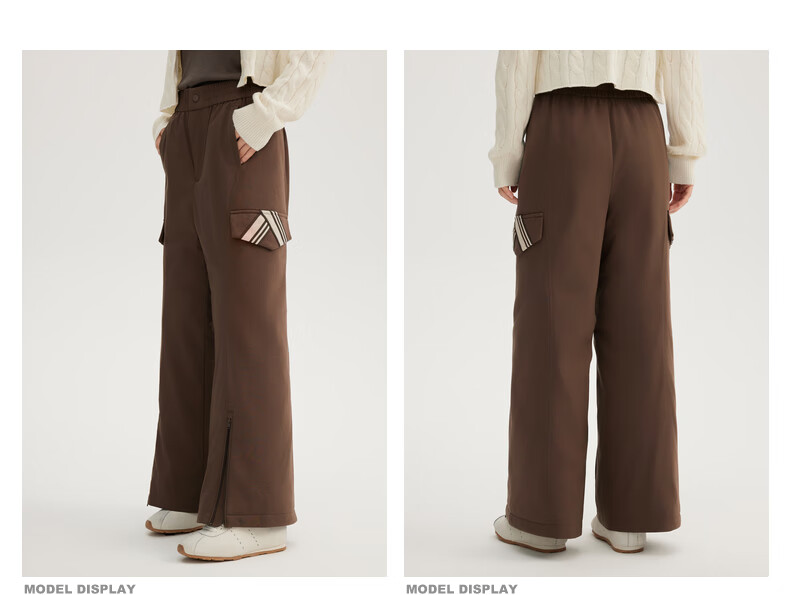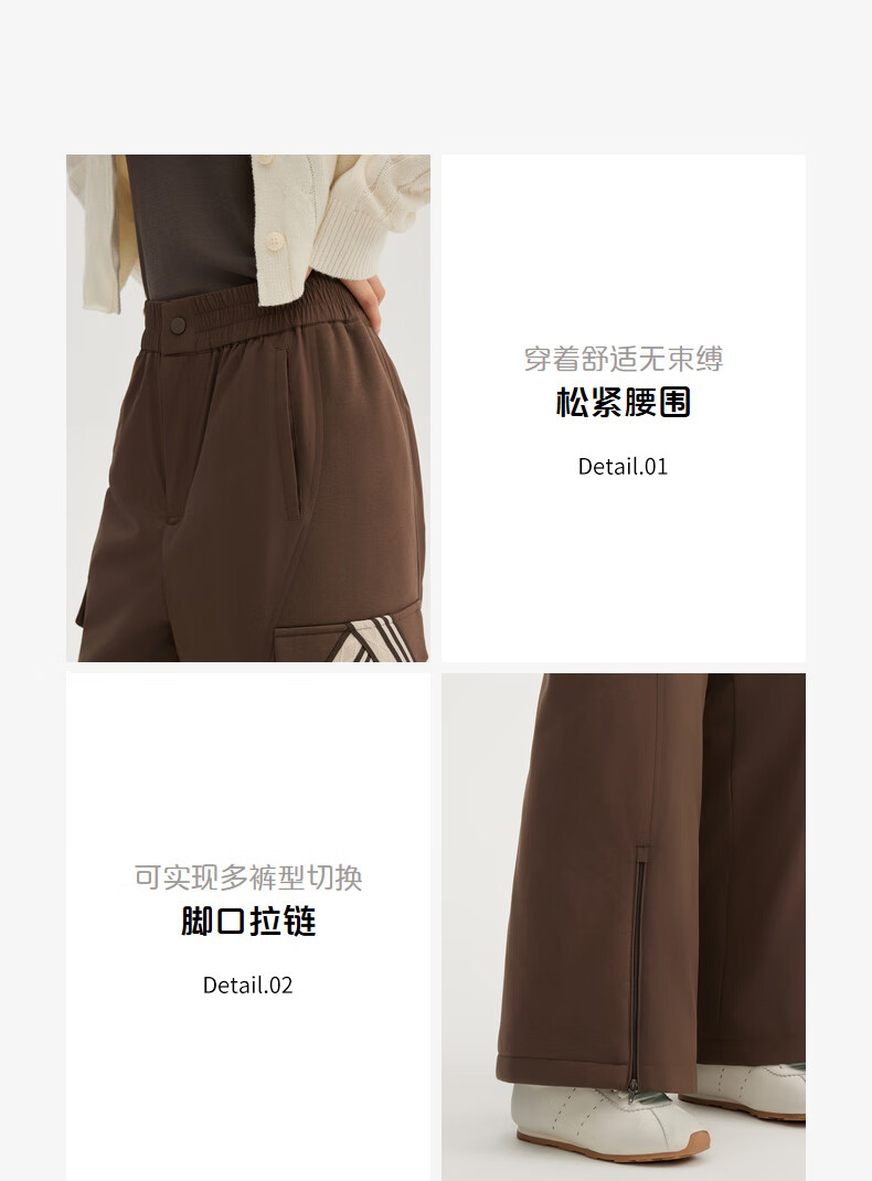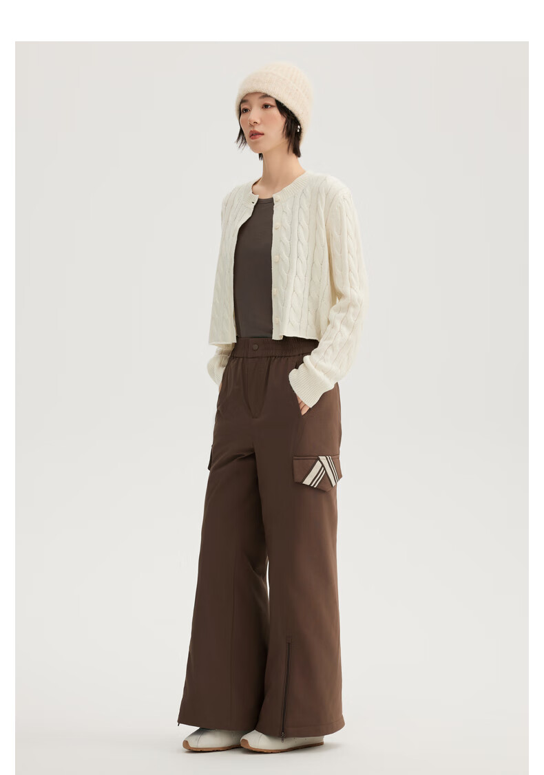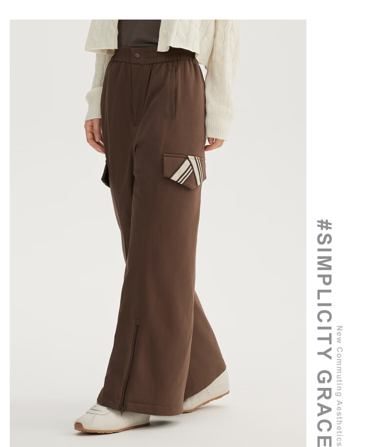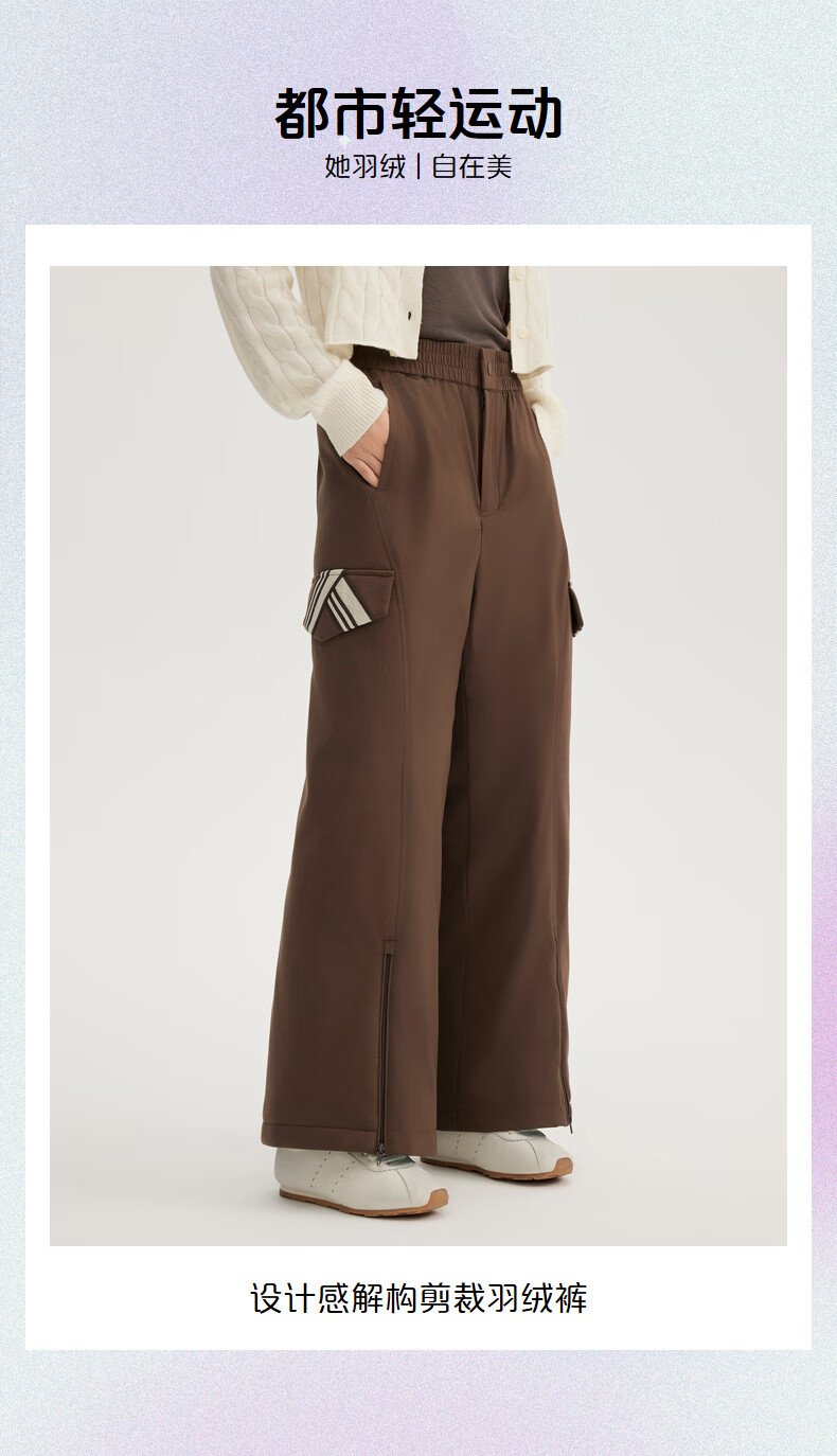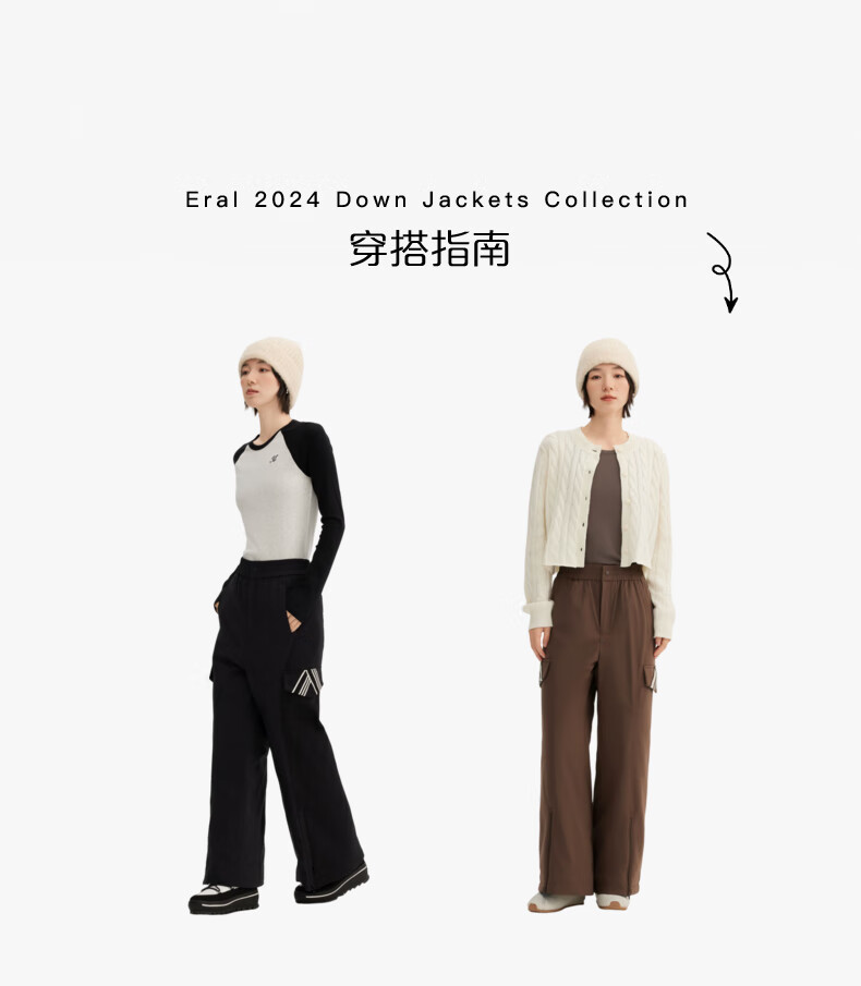 ERAL Down Pants Women's Design Deconstructed Cut Down Pants Simple Flared Loose Trousers Duck Down Warm Straight Pants Raccoon Brown L 165 Recommended 130-145 Jin Jin equals 0.5 kg