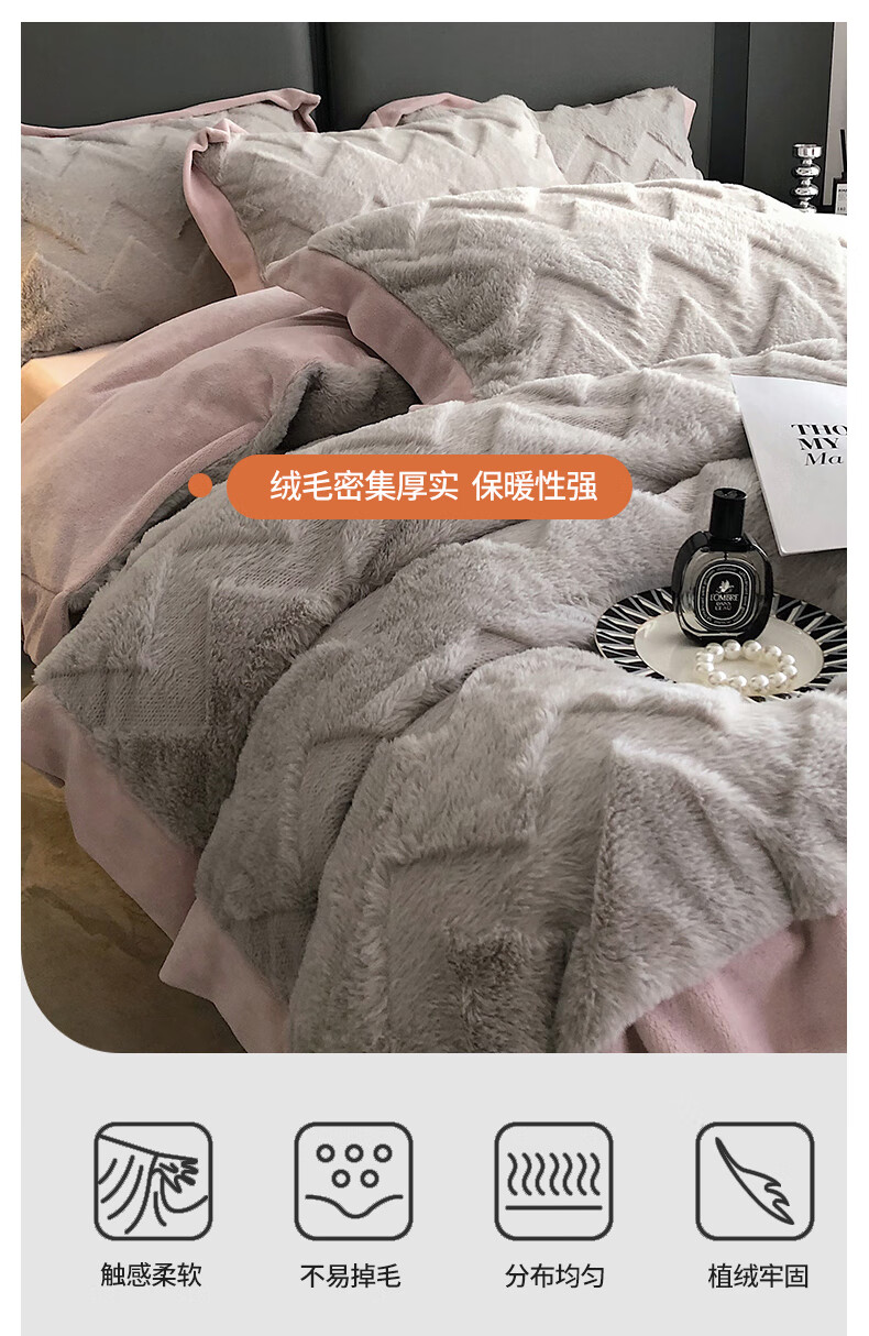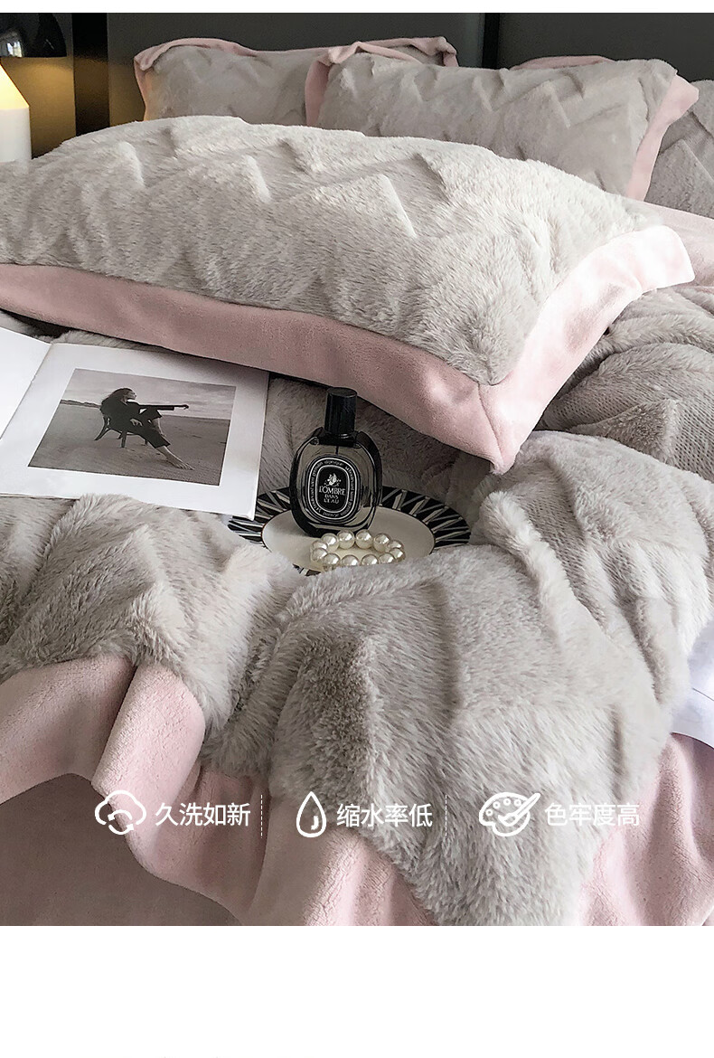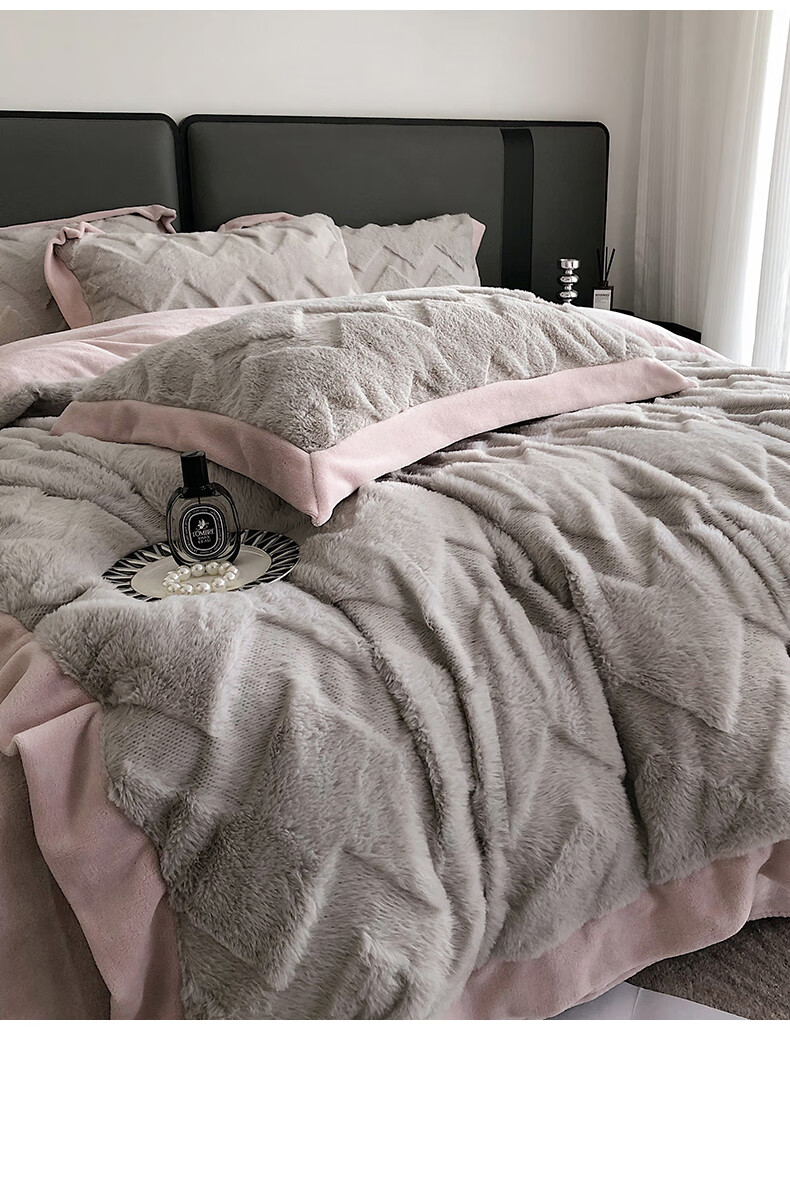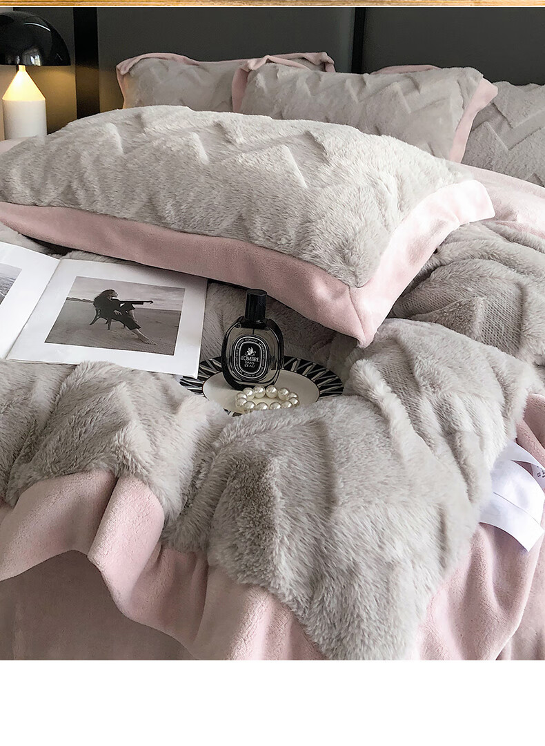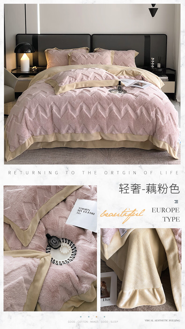 Cheng Baobao rabbit plush four-piece set milk velvet winter coral velvet flannel bed quilt cover solid color high-end home textile bed sheet style rabbit plush-lotus pink bed sheet style 1.5m bed four-piece set suitable for 200*230cm quilt