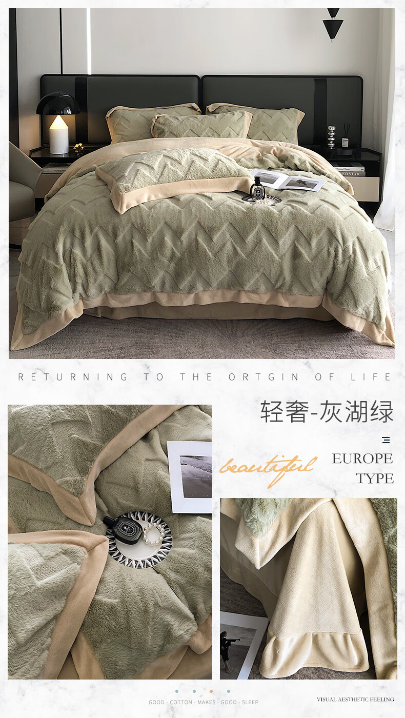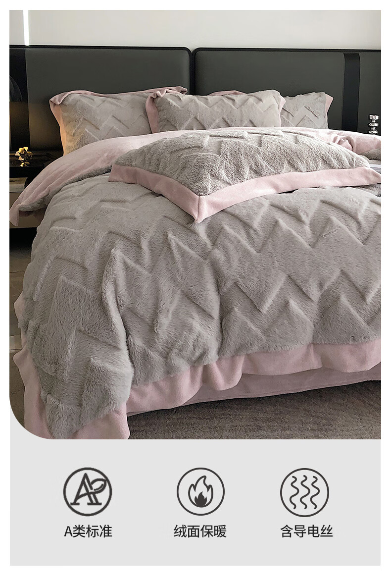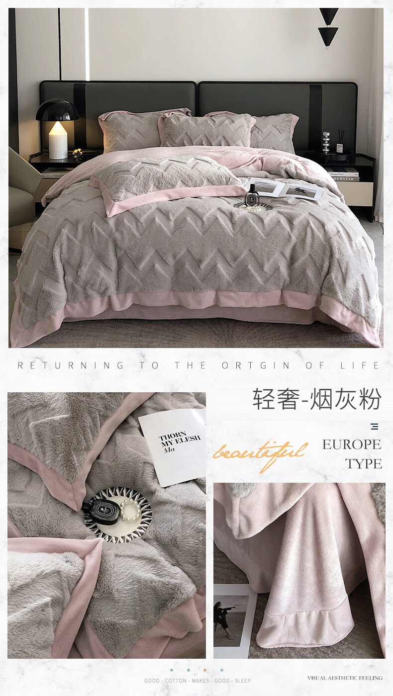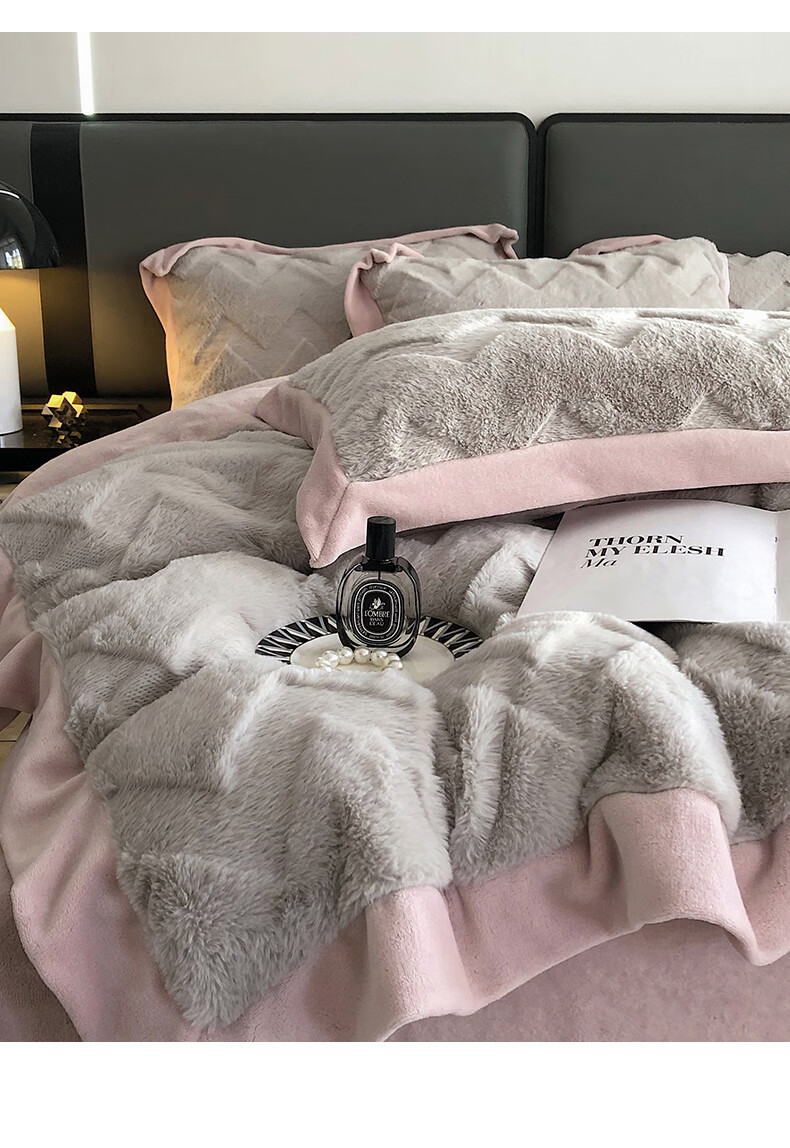Cheng Baobao rabbit plush four-piece set milk velvet winter coral velvet flannel bed quilt cover solid color high-end home textile bed sheet style rabbit plush-lotus pink bed sheet style 1.5m bed four-piece set suitable for 200*230cm quilt