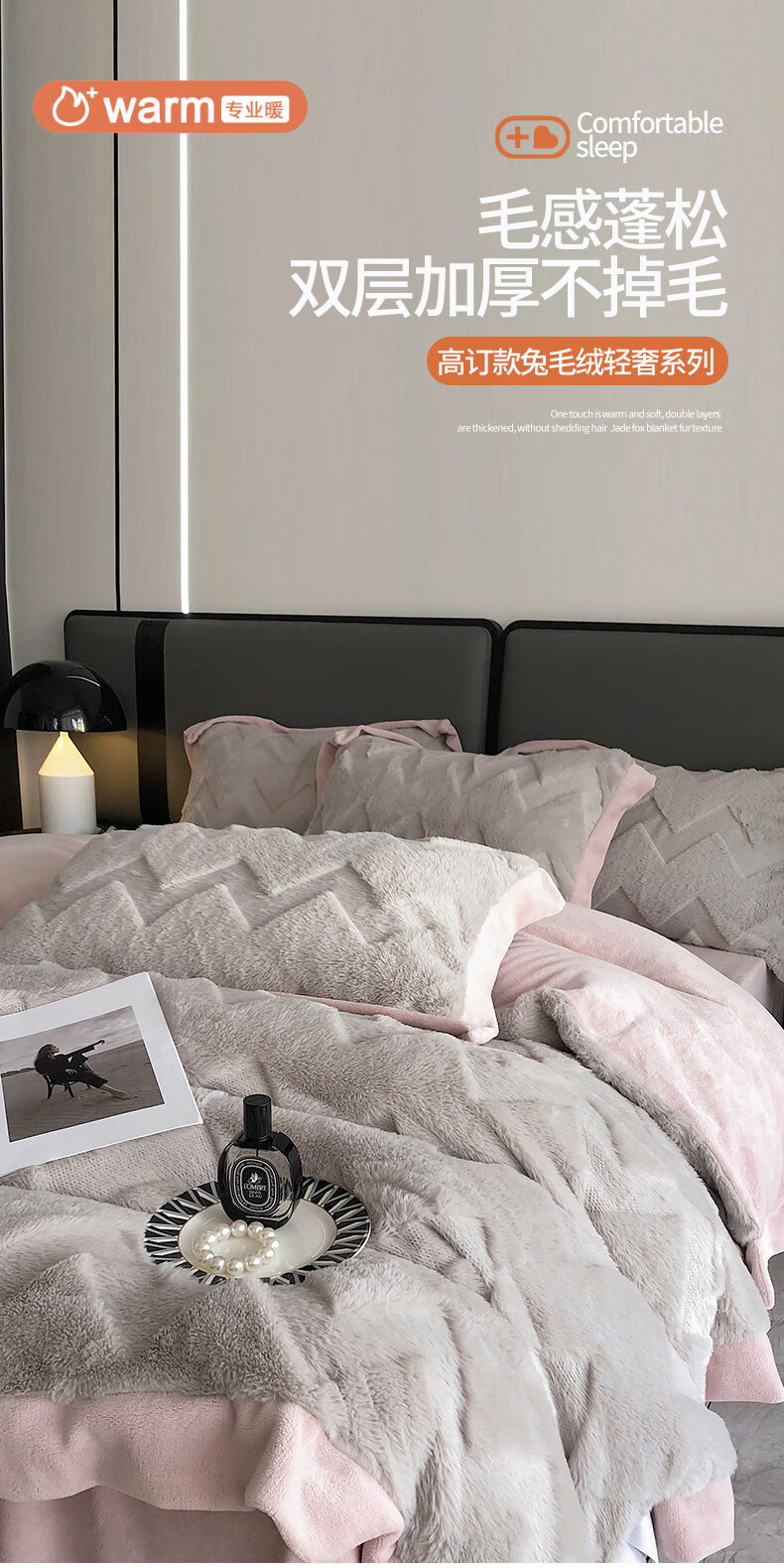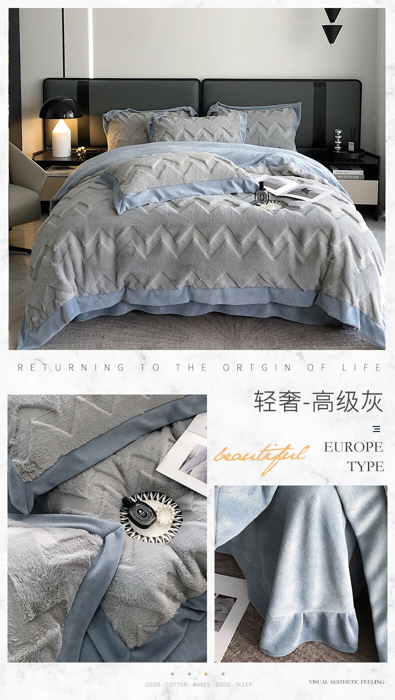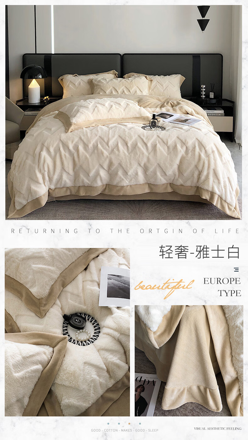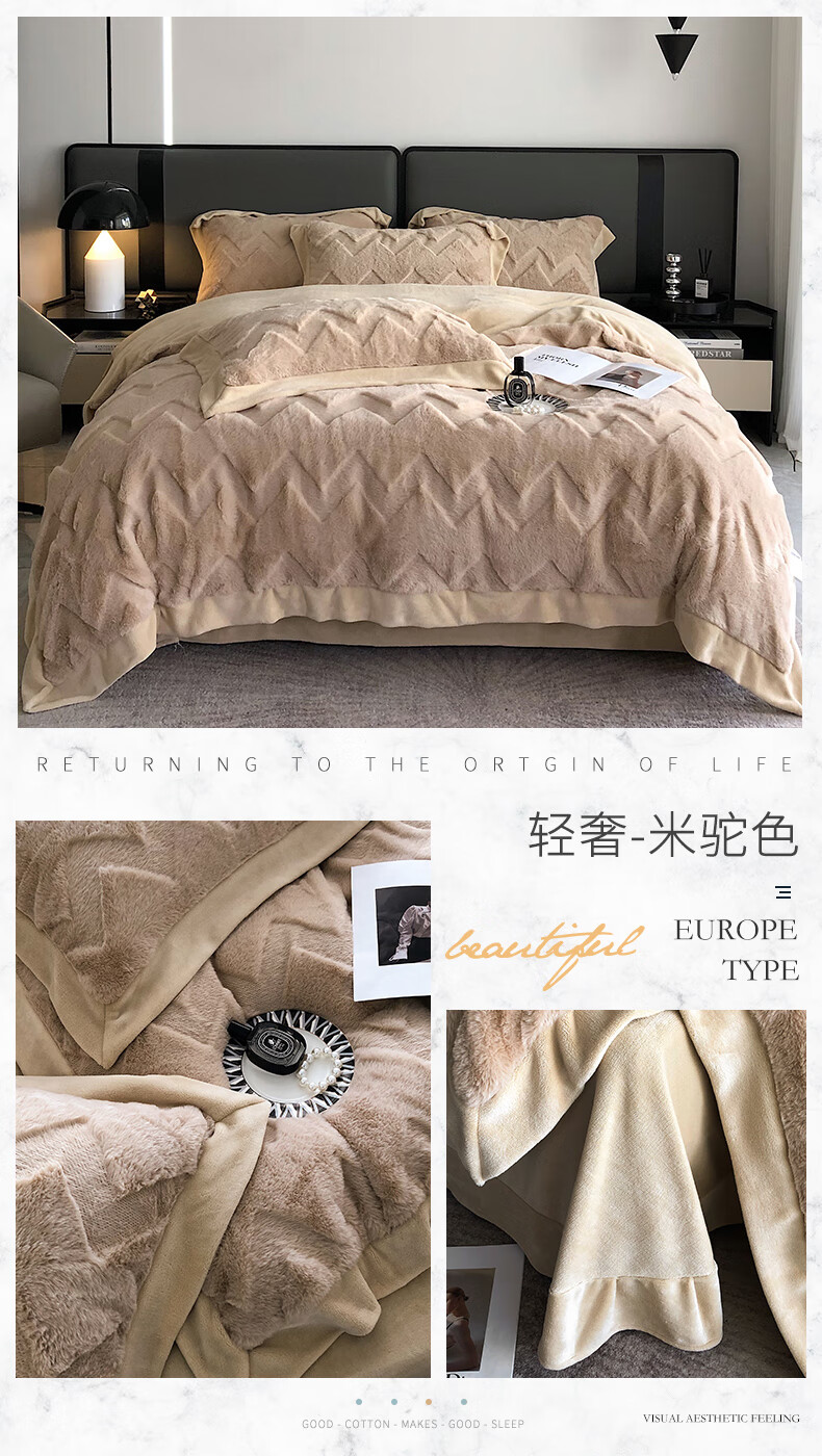 Cheng Baobao rabbit plush four-piece set milk velvet winter coral velvet flannel bed quilt cover solid color high-end home textile bed sheet style rabbit plush-lotus pink bed sheet style 1.5m bed four-piece set suitable for 200*230cm quilt