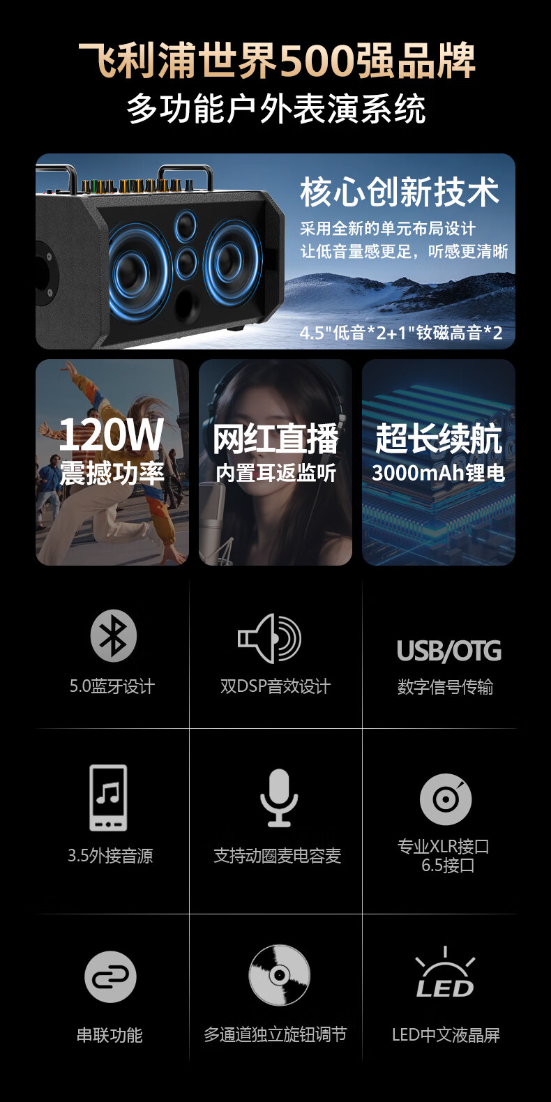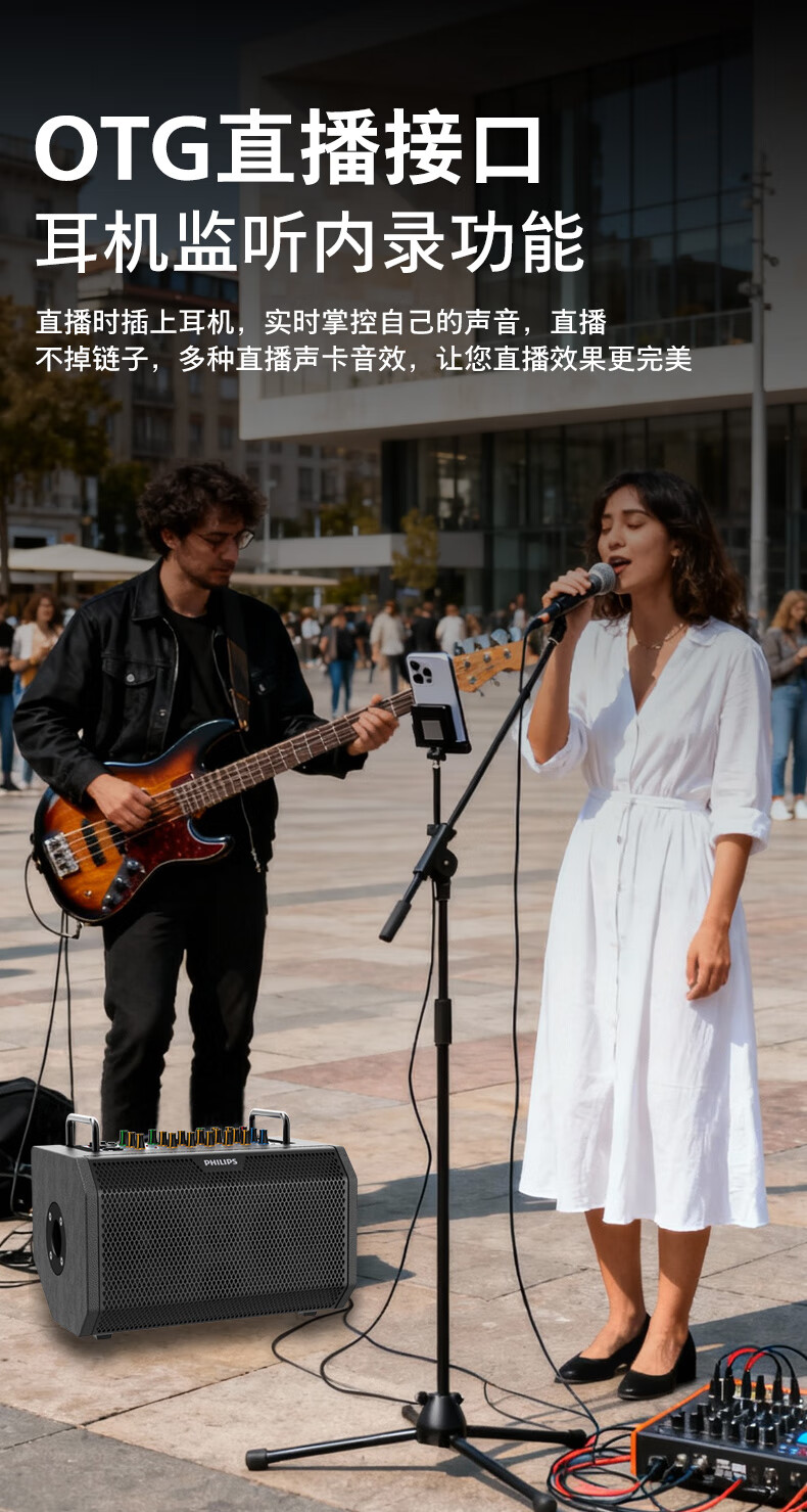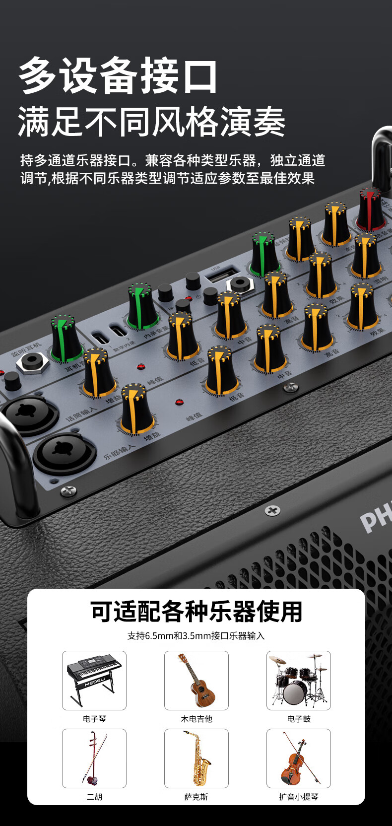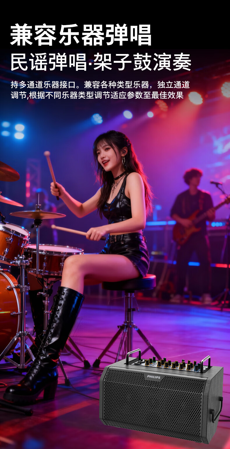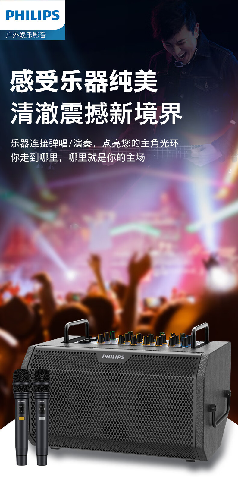 Philips (PHILIPS) SD420 outdoor musical instrument speaker live broadcast Bluetooth karaoke audio built-in recording guitar playing and singing saxophone performance portable musical instrument audio SD420 standard + bracket + bag + OTG cable package