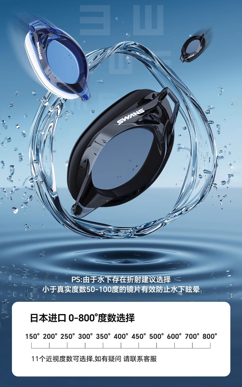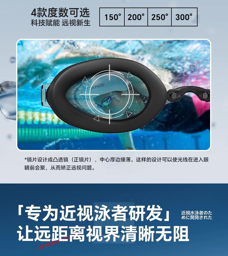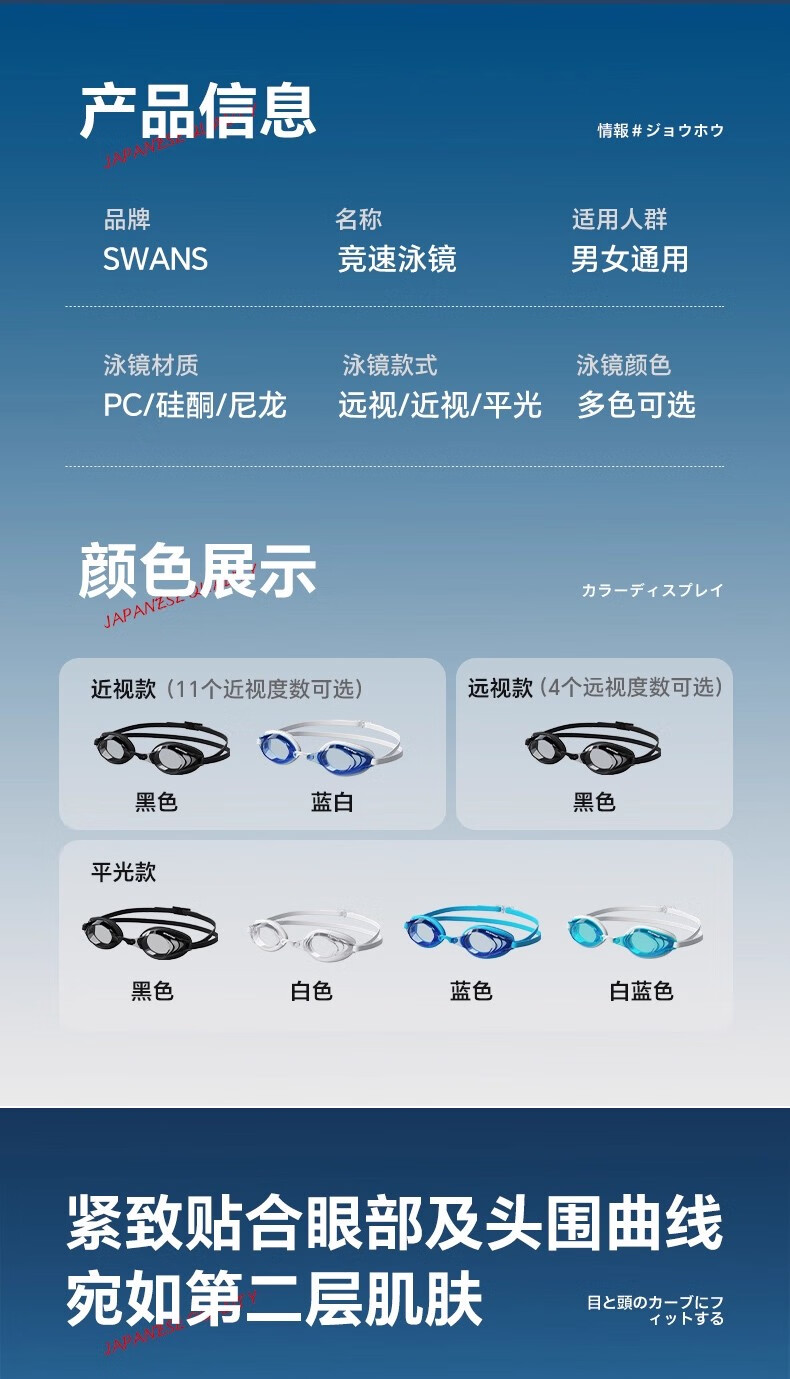 SWANS swimming goggles professional anti-fog waterproof high-definition men's and women's farsightedness and myopia racing training swimming goggles SR2 series white flat light