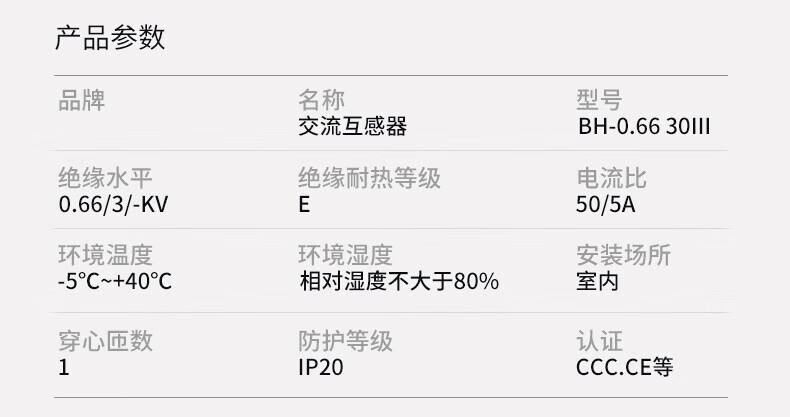 Chint AC current transformer BH-0.66 30 current ratio 75/150/300/500/5A BH-0.661002000/5A0.5 level