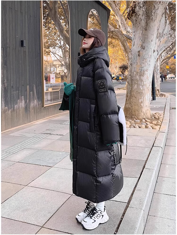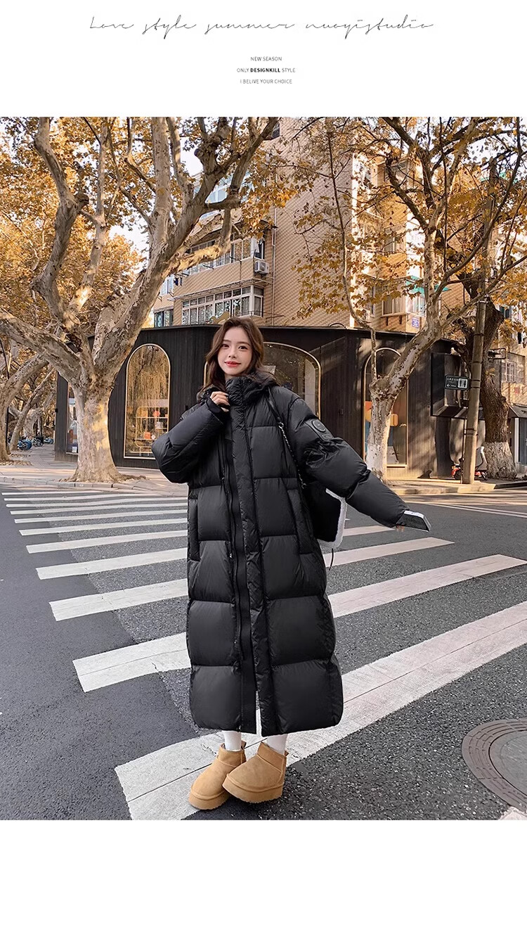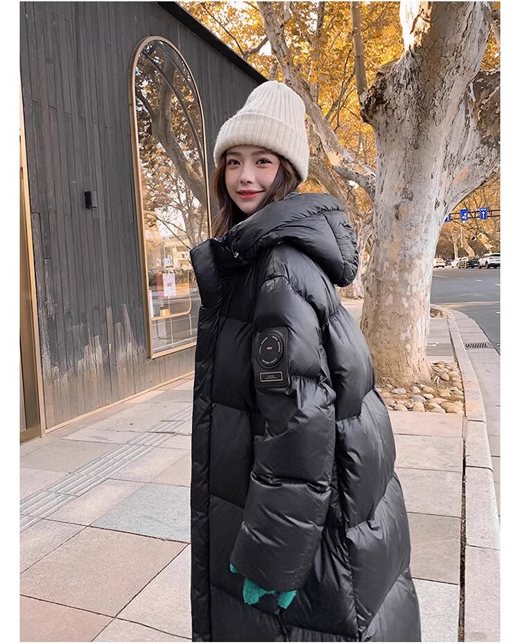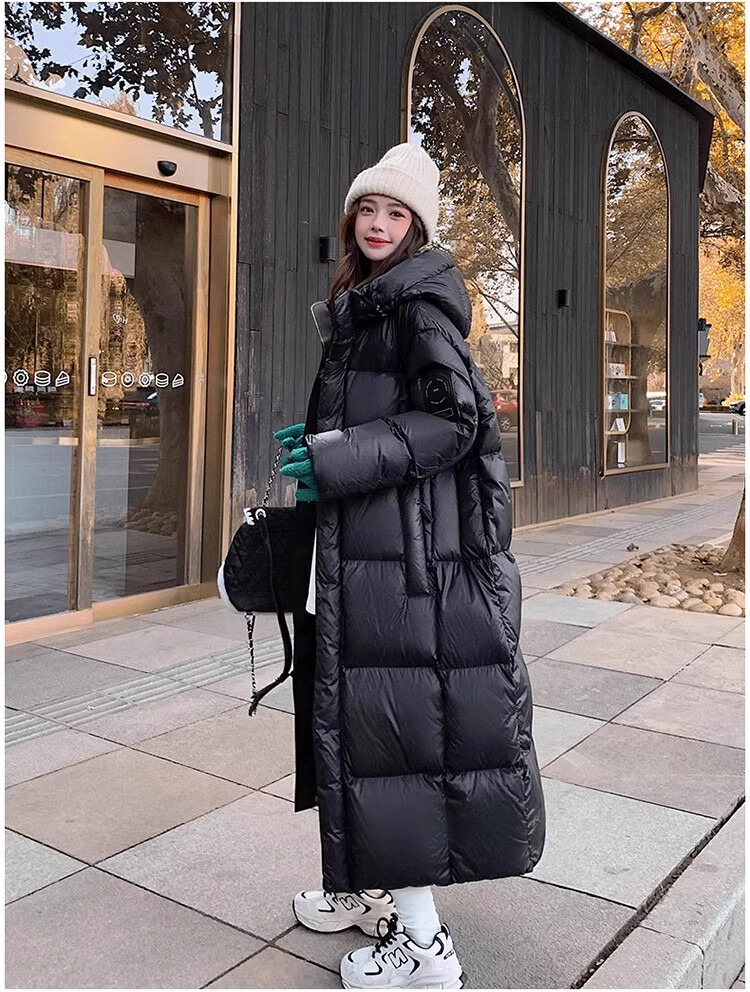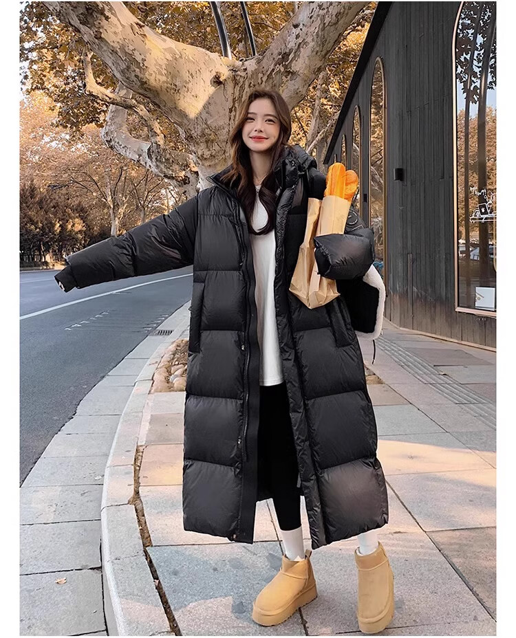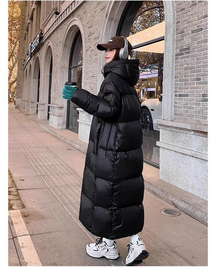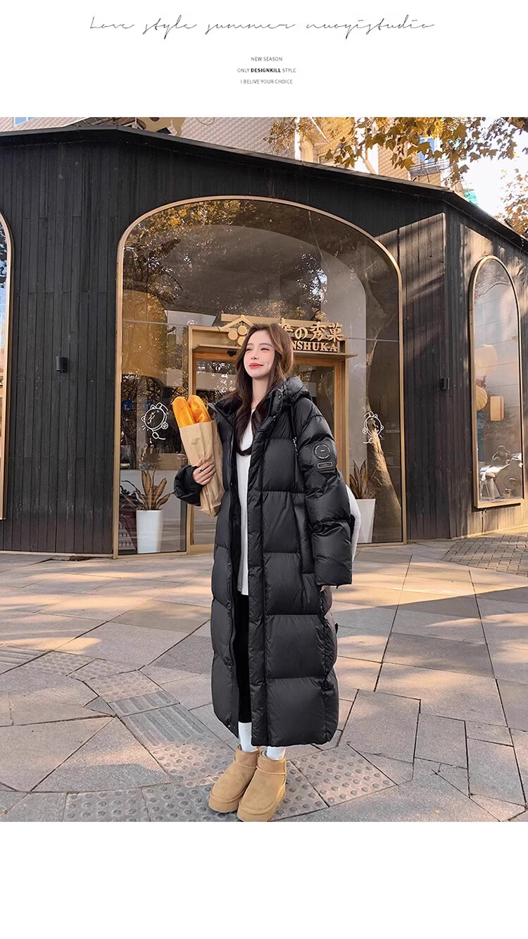 TJQ luxury high-end brand long down jacket for women 2025 winter new slimming Korean version thickened extreme cold warm jacket black M recommended 109~125Jin Jin equals 0.5 kg