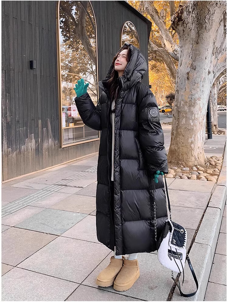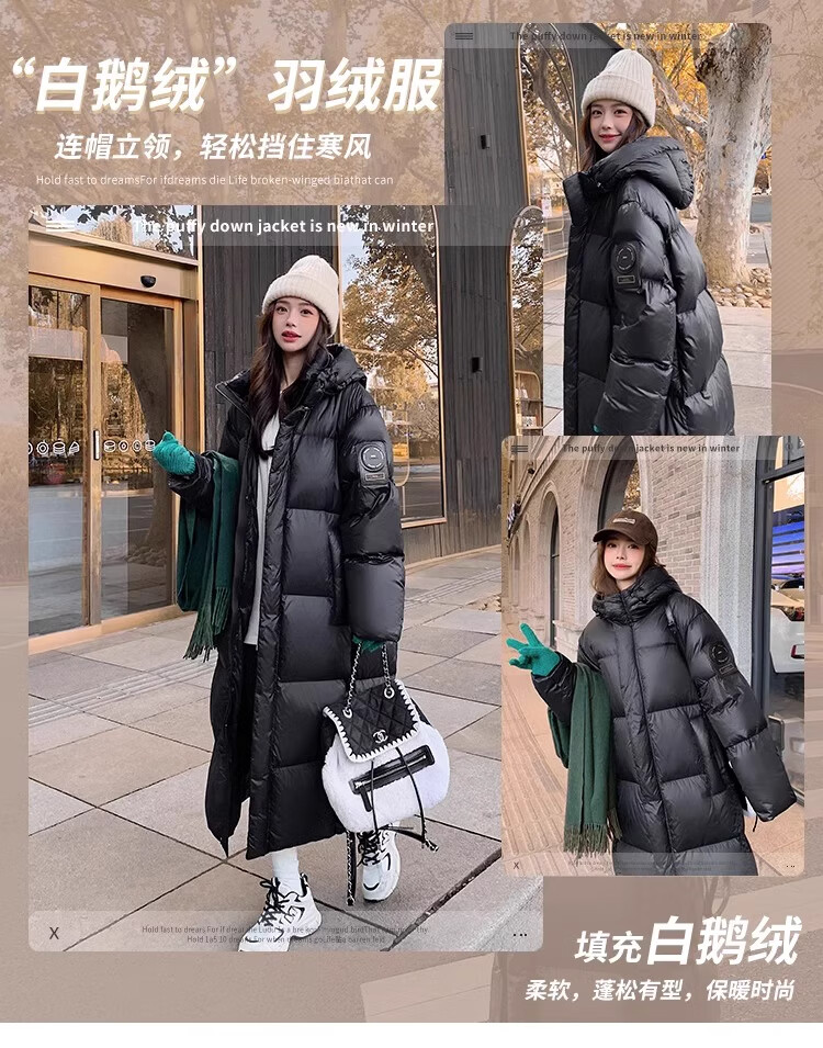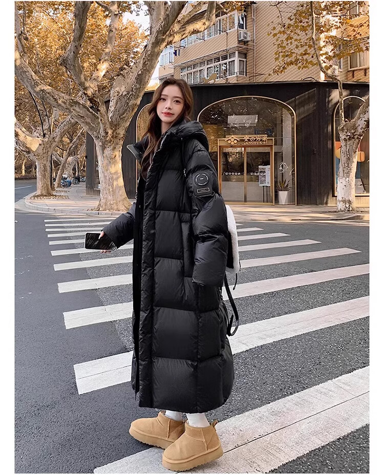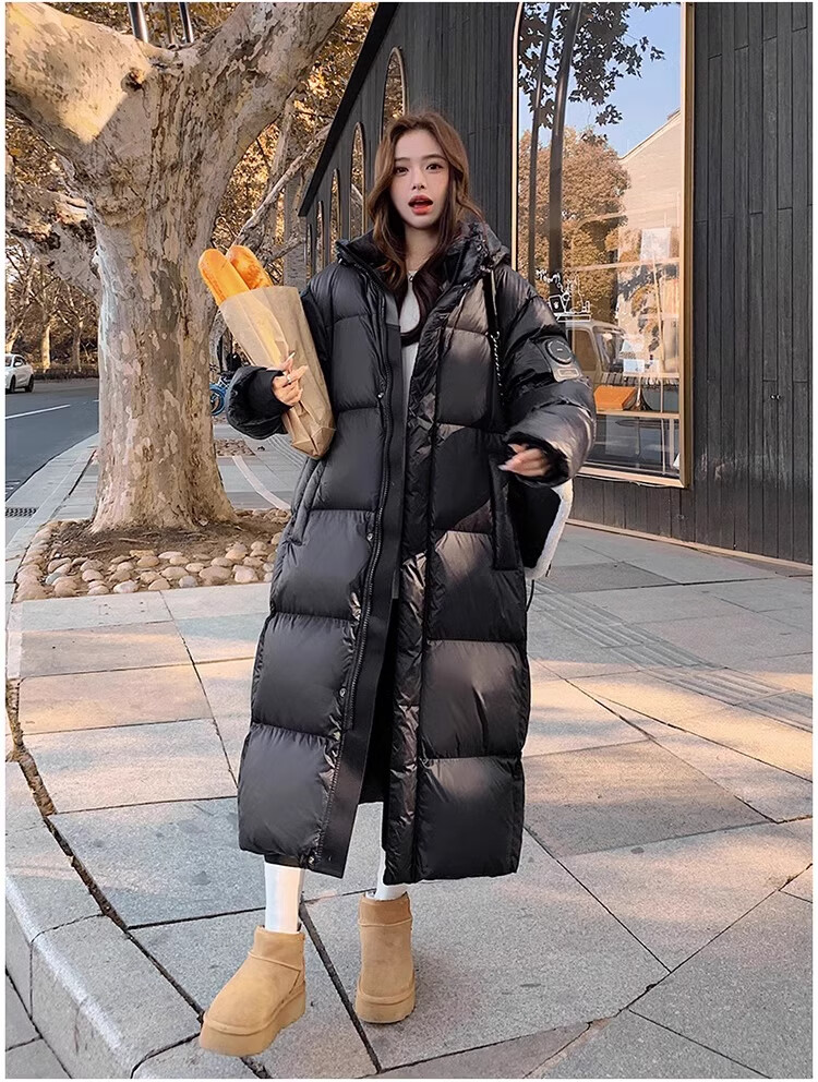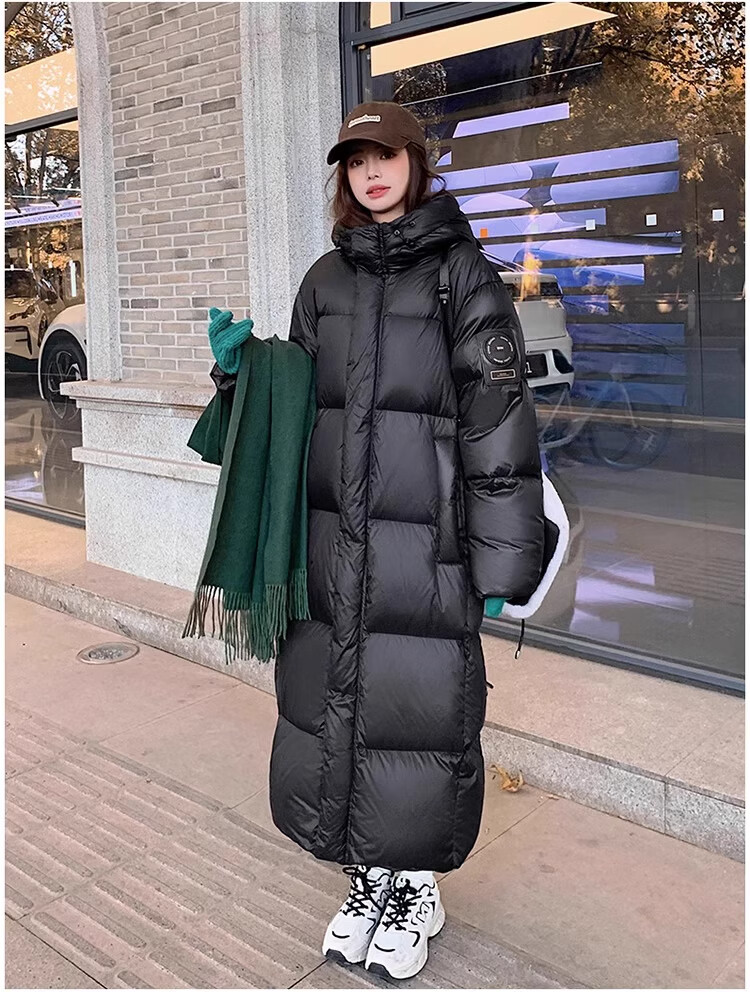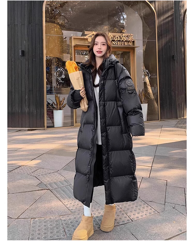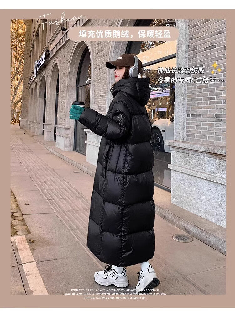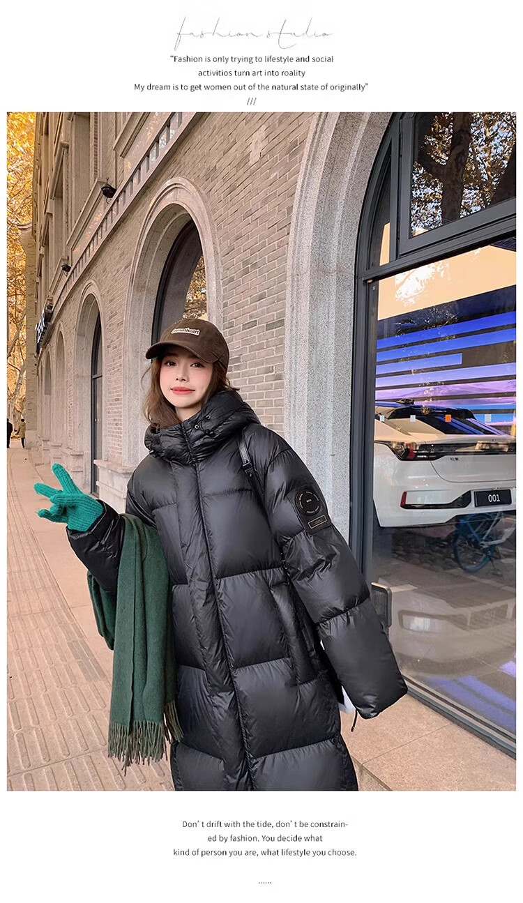 TJQ luxury high-end brand long down jacket for women 2025 winter new slimming Korean version thickened extreme cold warm jacket black M recommended 109~125Jin Jin equals 0.5 kg