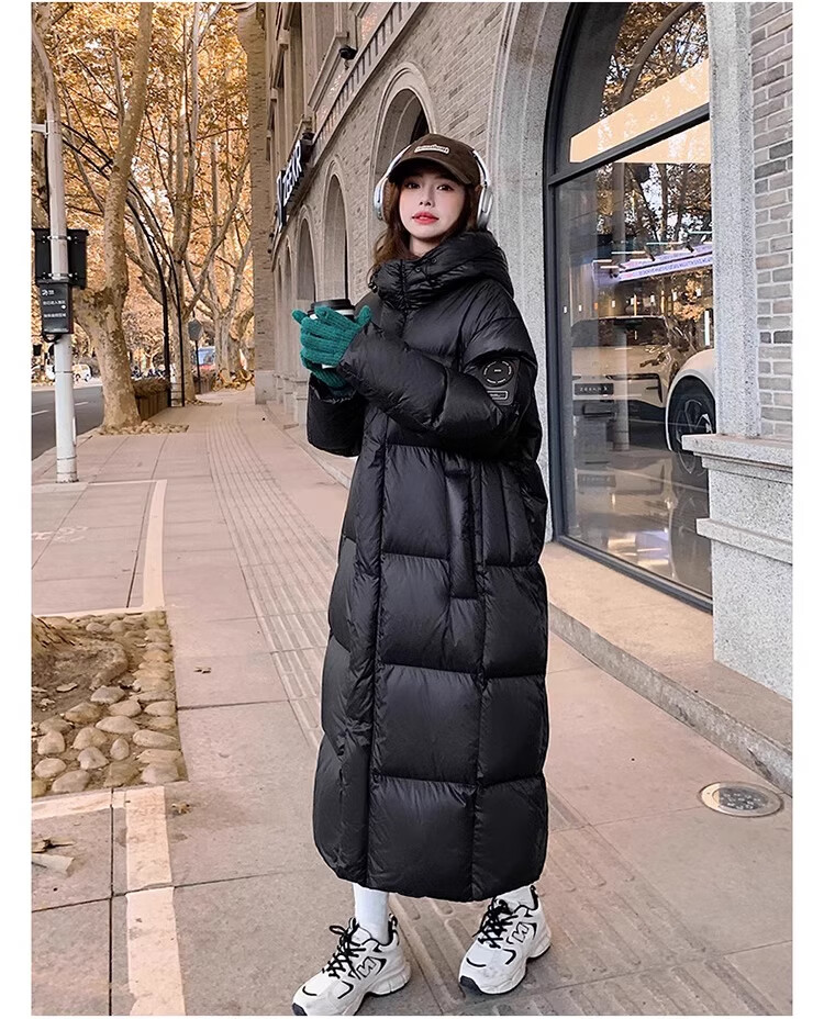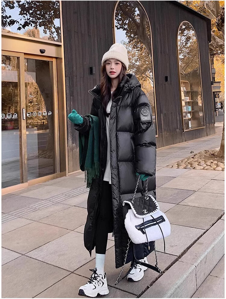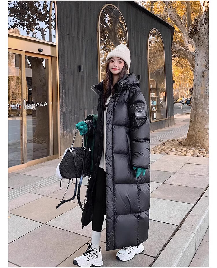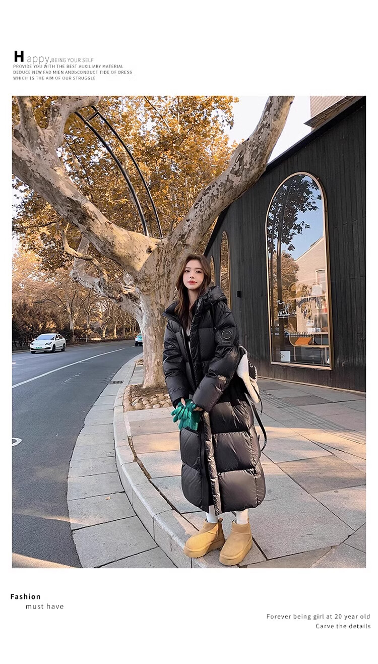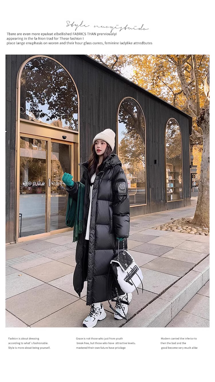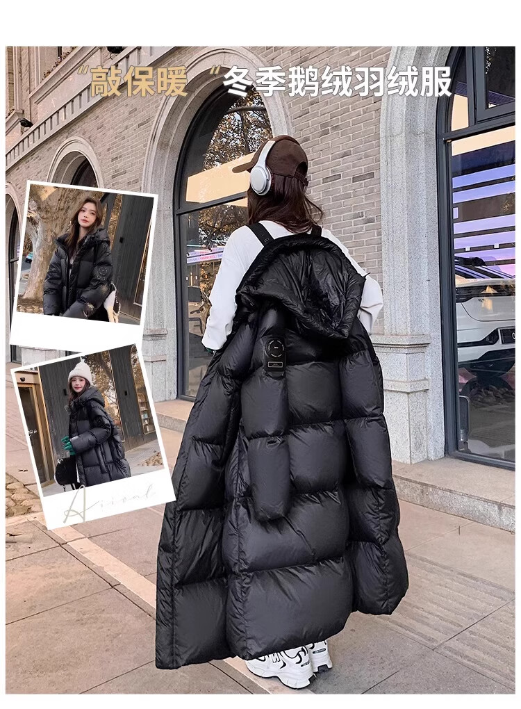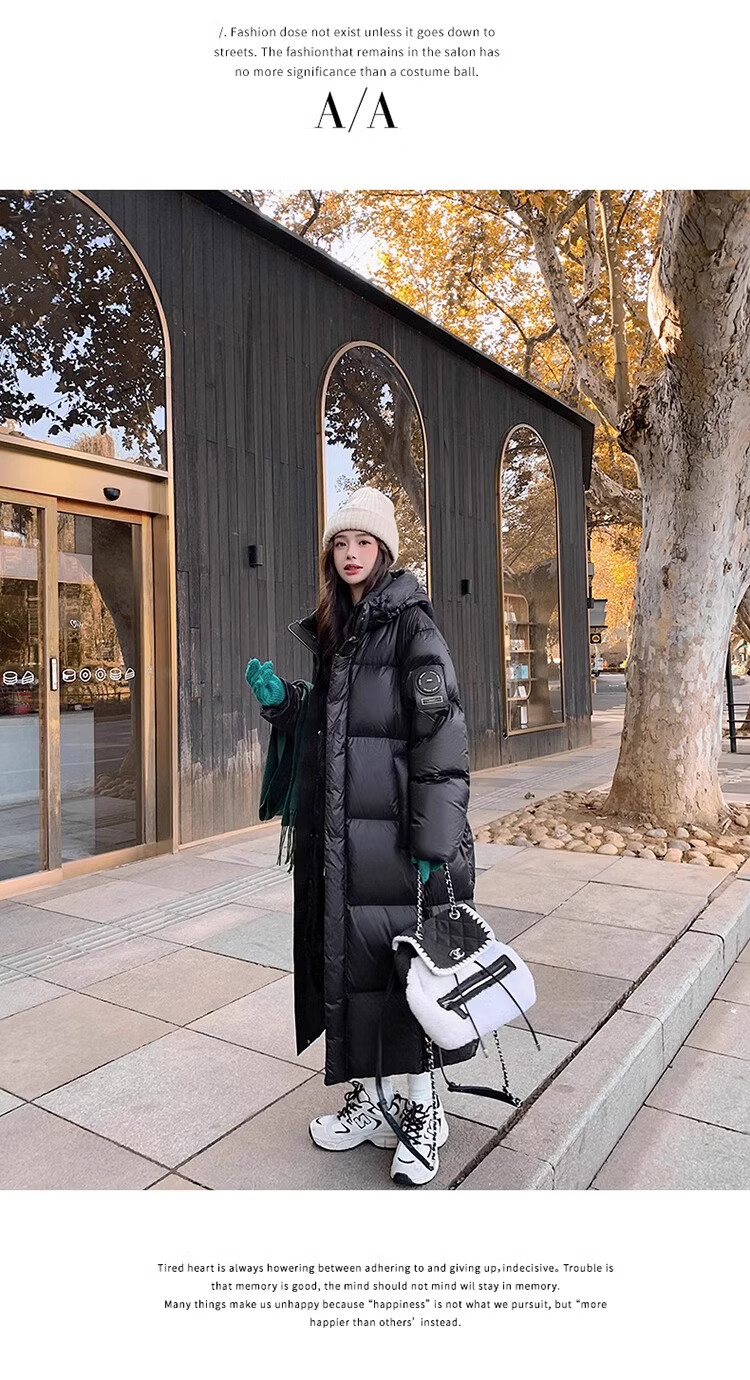 TJQ luxury high-end brand long down jacket for women 2025 winter new slimming Korean version thickened extreme cold warm jacket black M recommended 109~125Jin Jin equals 0.5 kg