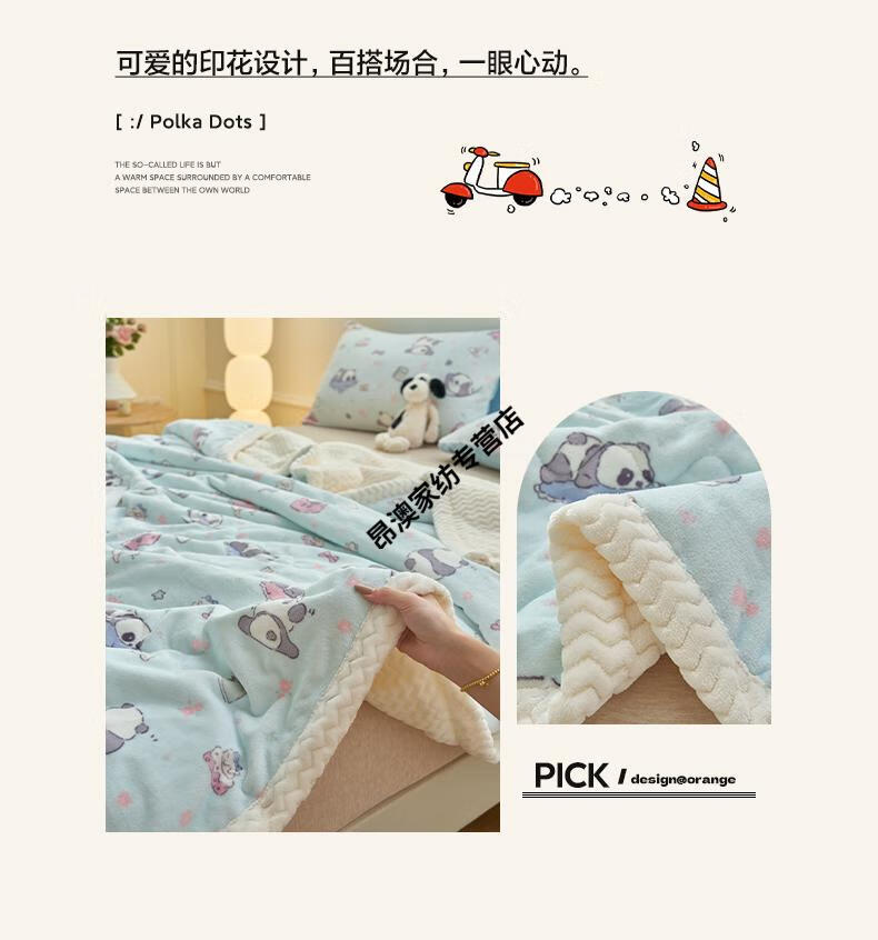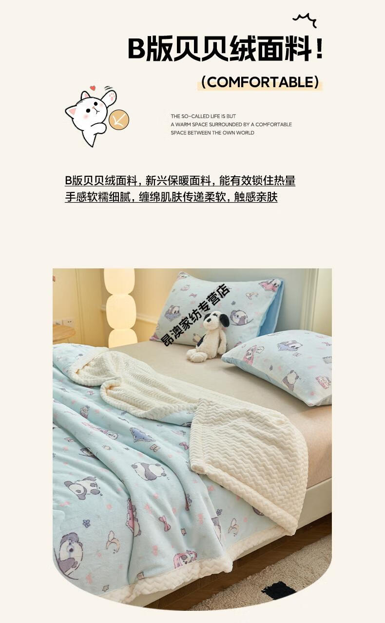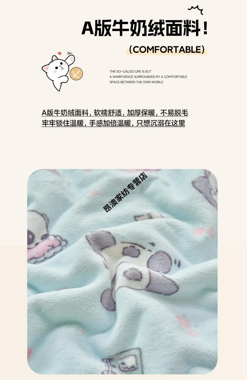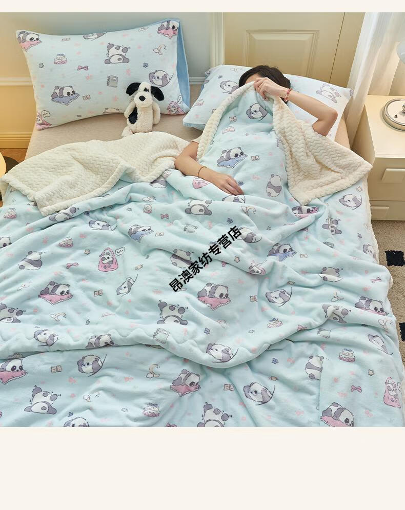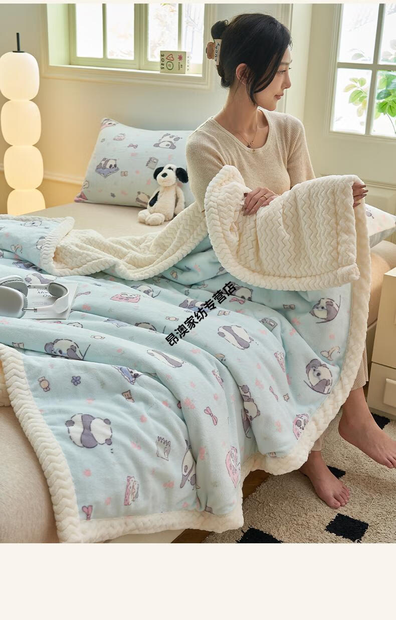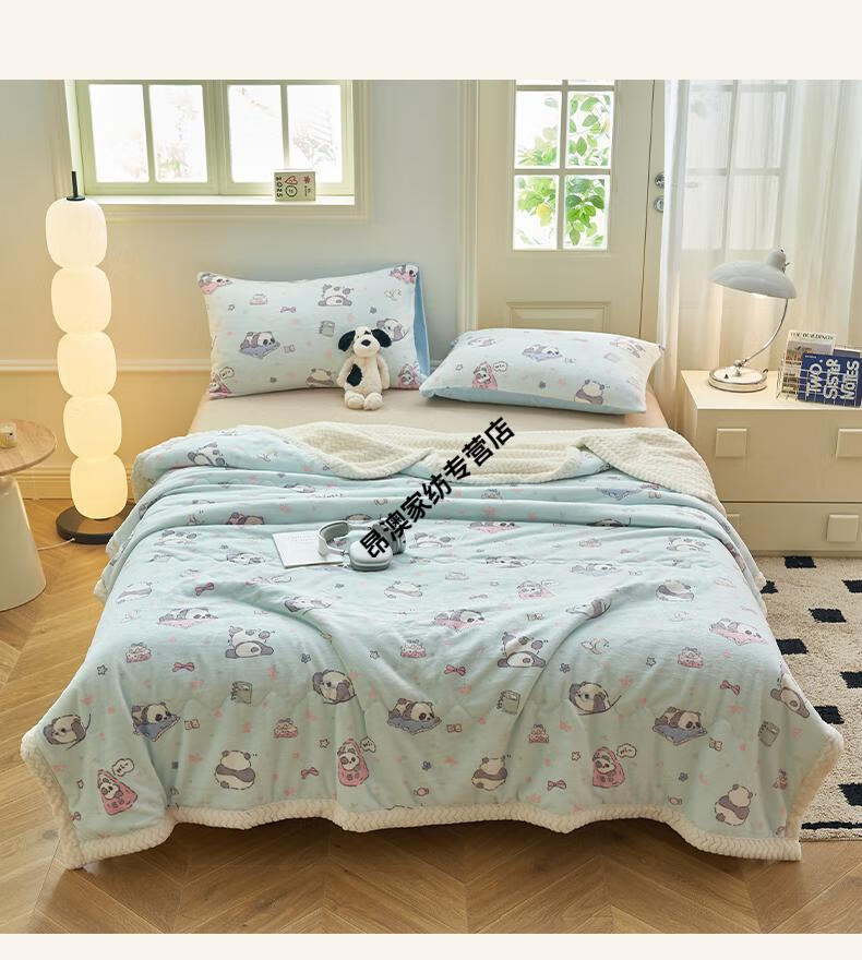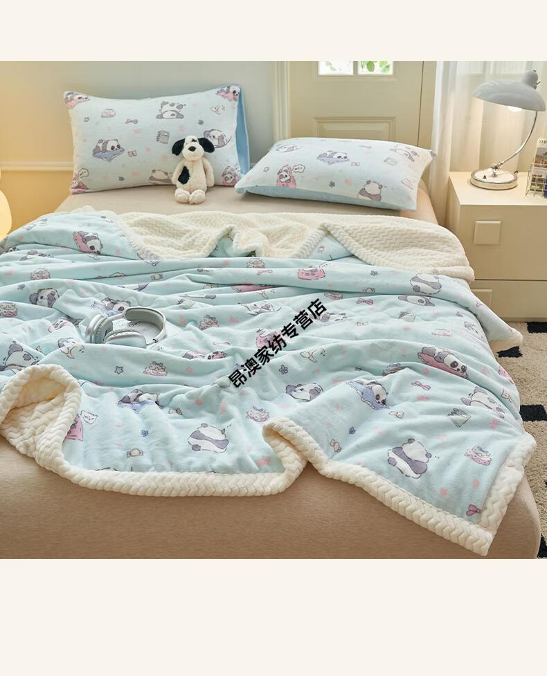 LUOLAI winter thickened milk plush blanket quilt children's blanket flannel sofa cover blanket coral fleece sheet bed Happy Puppy three-layer thickened soft and skin-friendly three-piece blanket set 180x200cm blanket + two pillowcases
