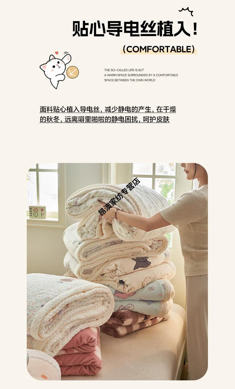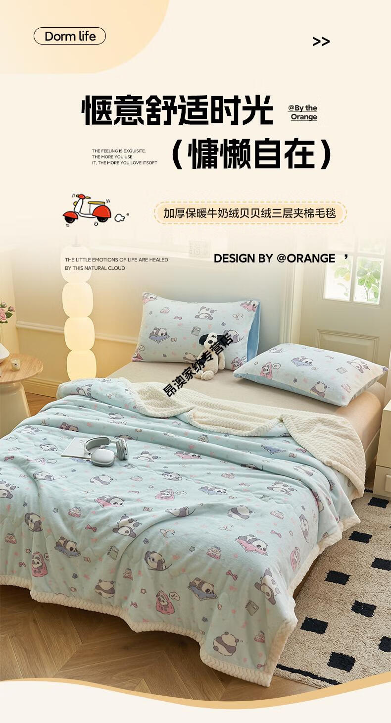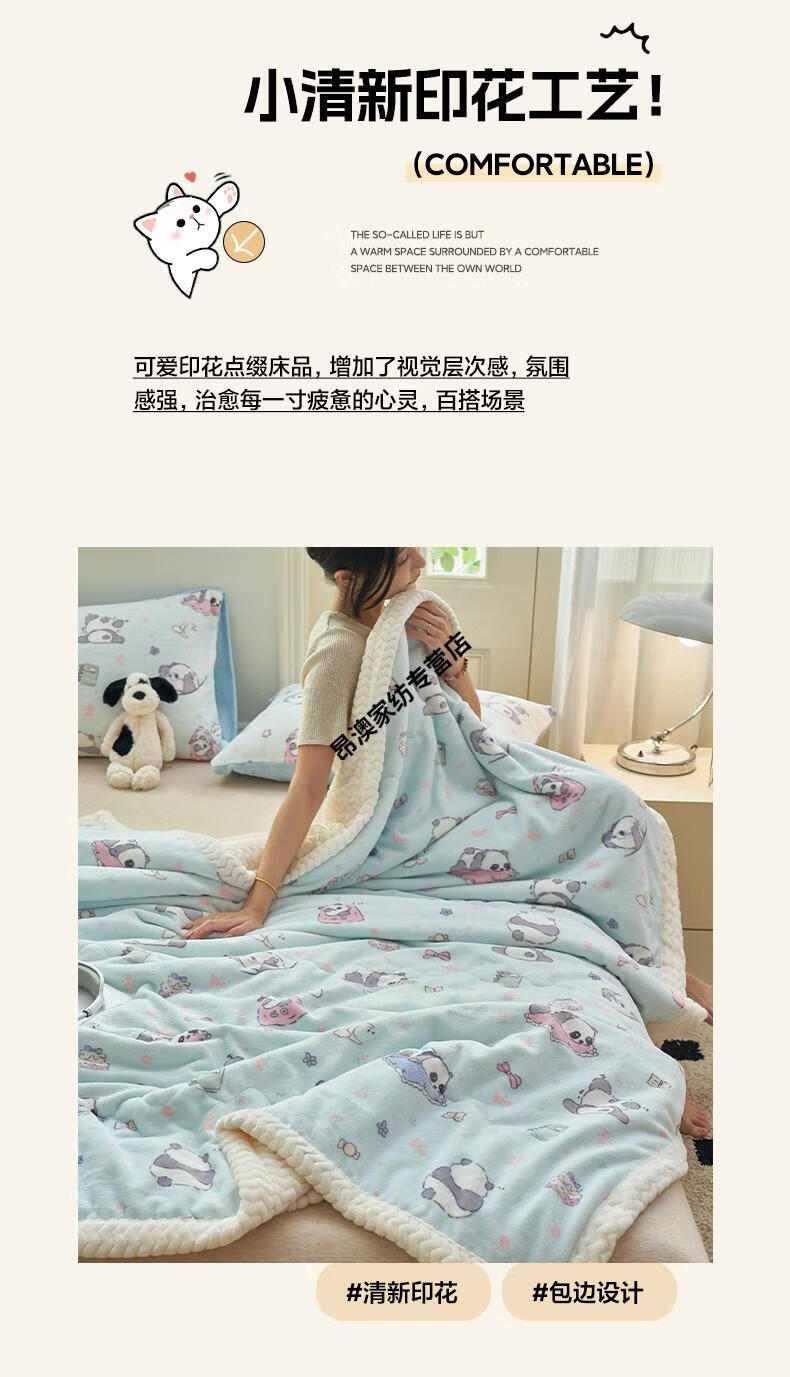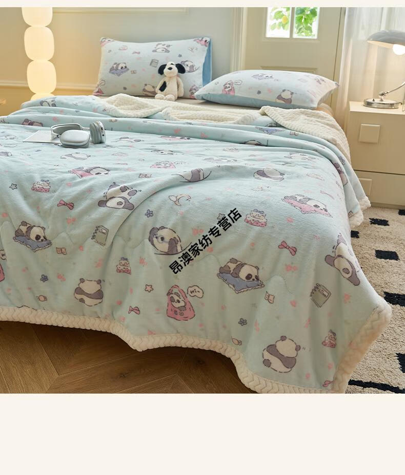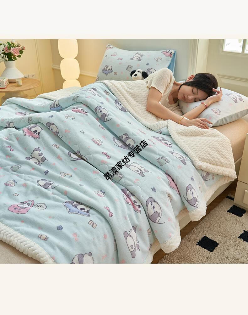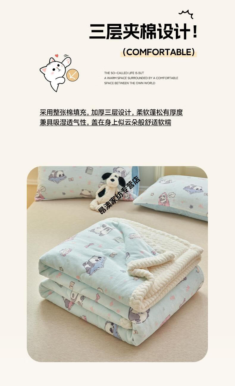 LUOLAI winter thickened milk plush blanket quilt children's blanket flannel sofa cover blanket coral fleece sheet bed Happy Puppy three-layer thickened soft and skin-friendly three-piece blanket set 180x200cm blanket + two pillowcases