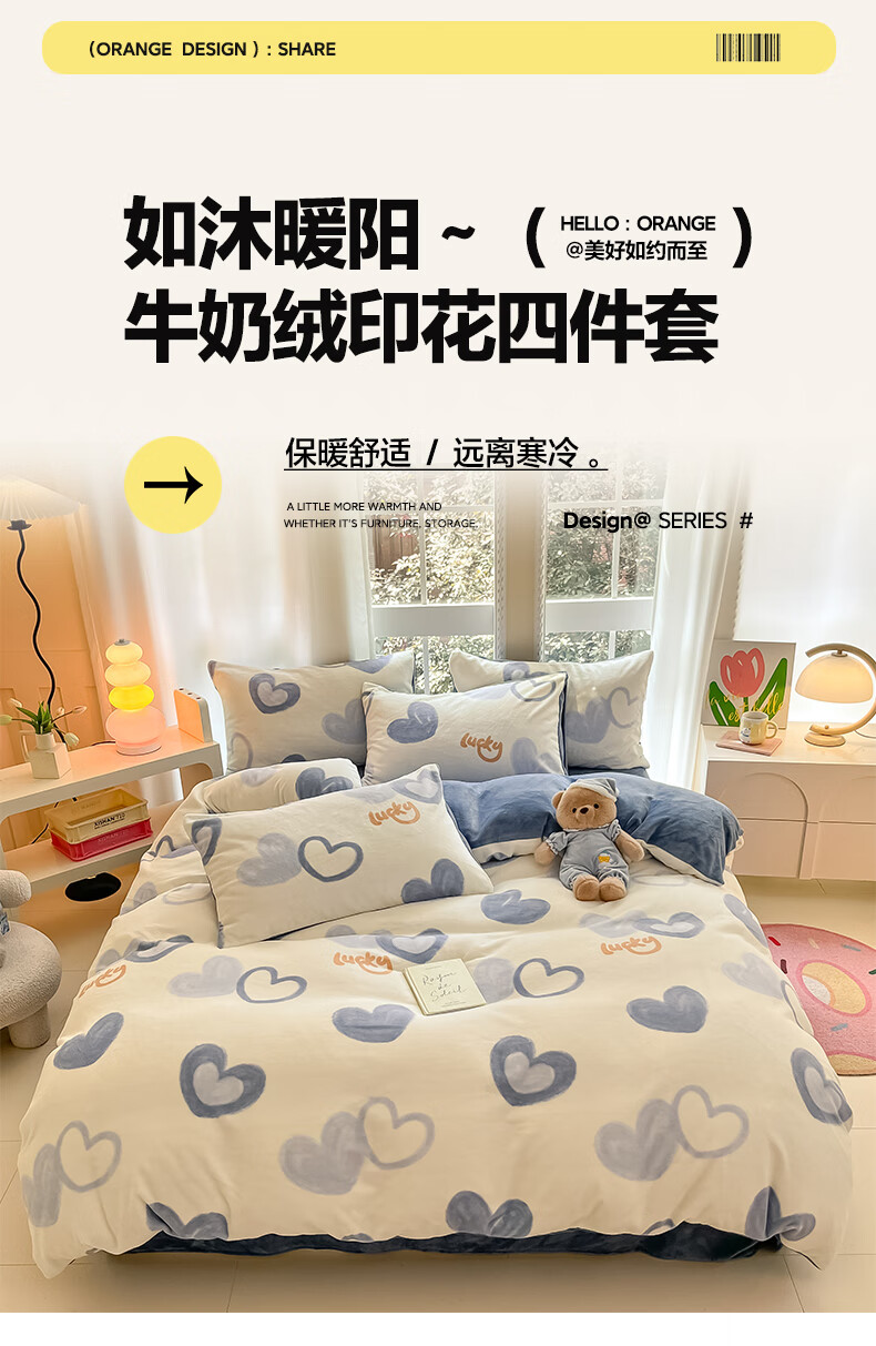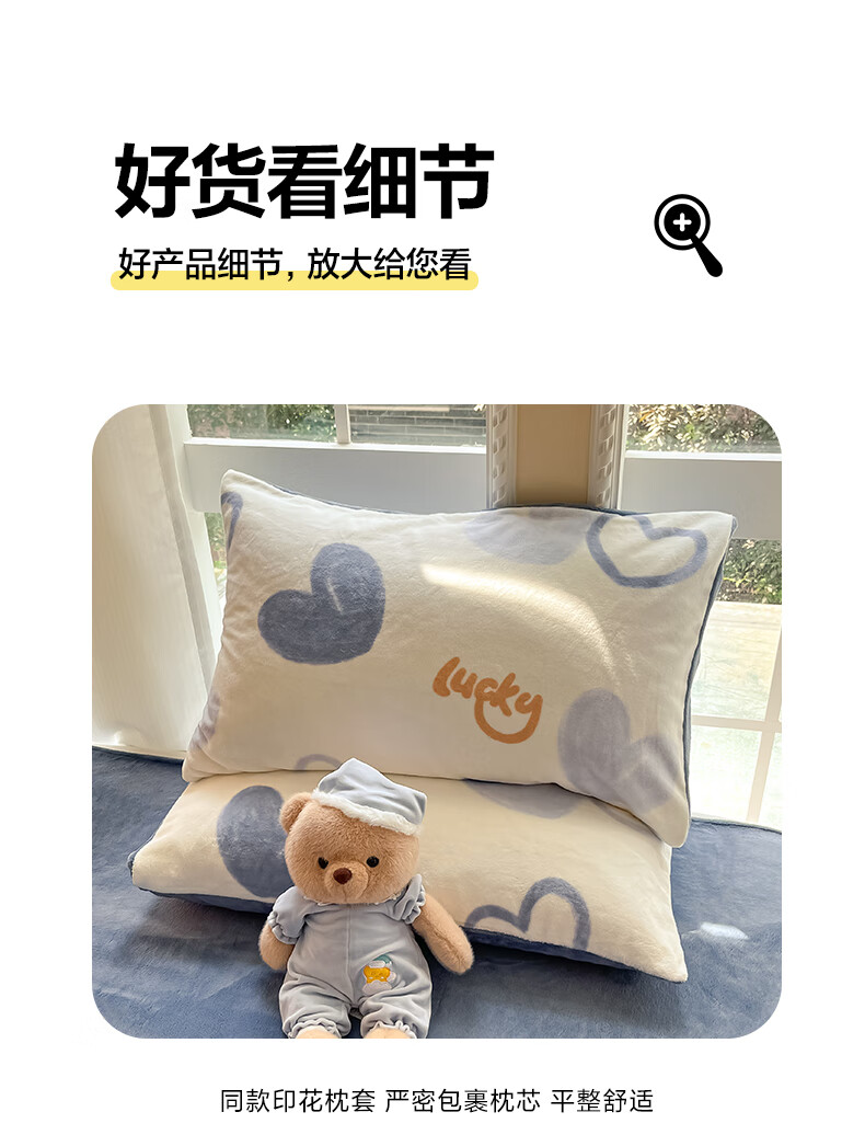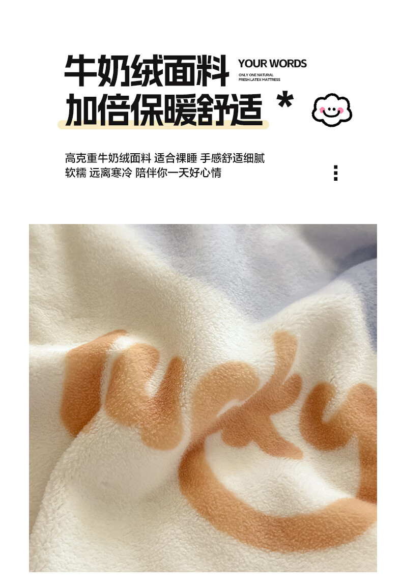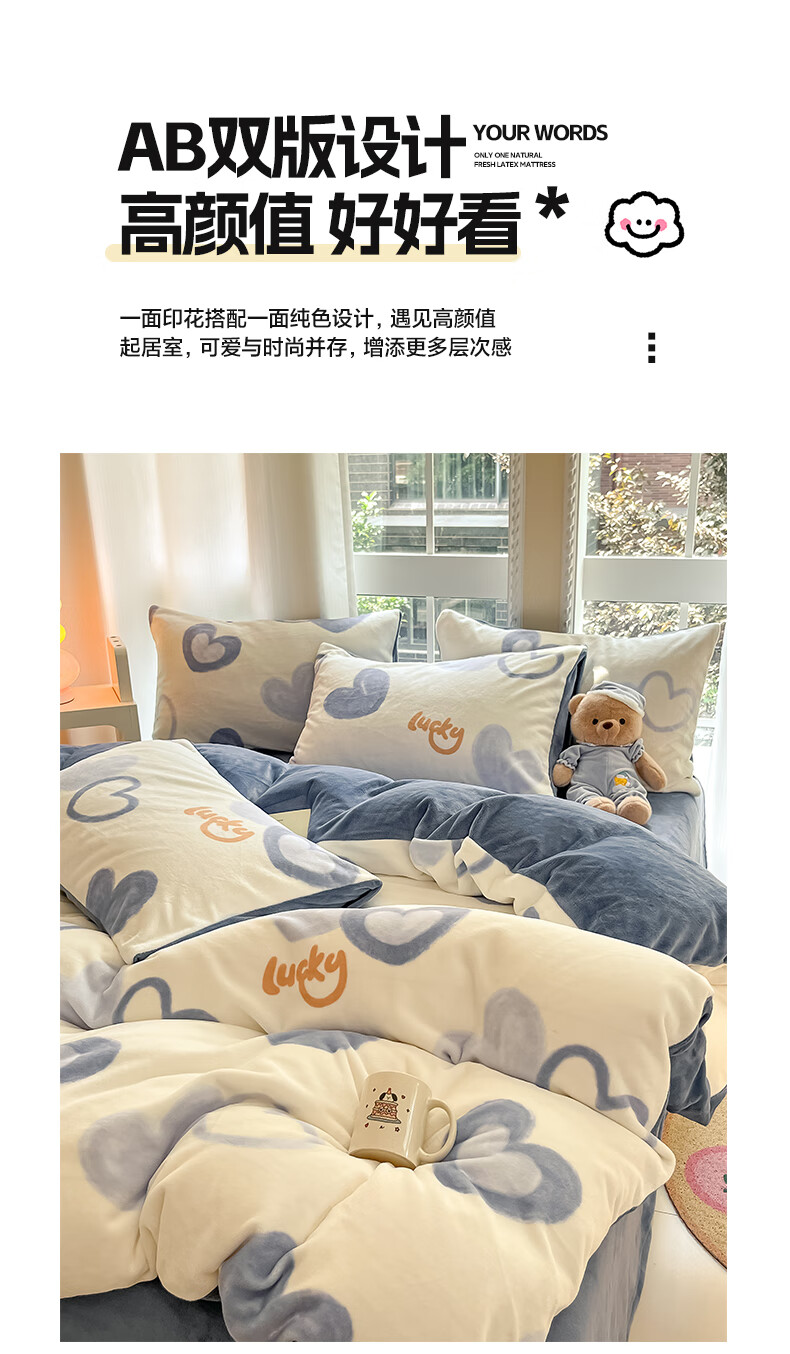 Hongdou Home Textiles Winter Thickened Warm Milk Velvet Bed Four-piece Set Double-sided Velvet Bed Sheets and Quilt Covers Flannel Coral Velvet Bed Sheet Covers Colorful Flower + Baby Blue Velvet Warmth Skin Friendly Anti-static Suitable for 1.2m Bed Sheets - Quilt Cover 150*200cm