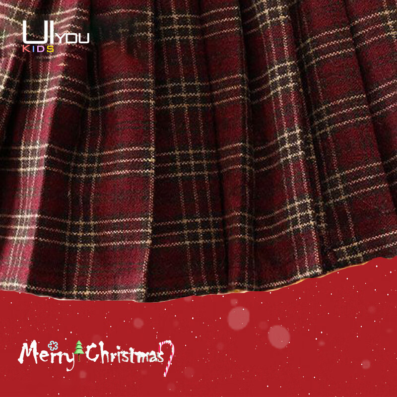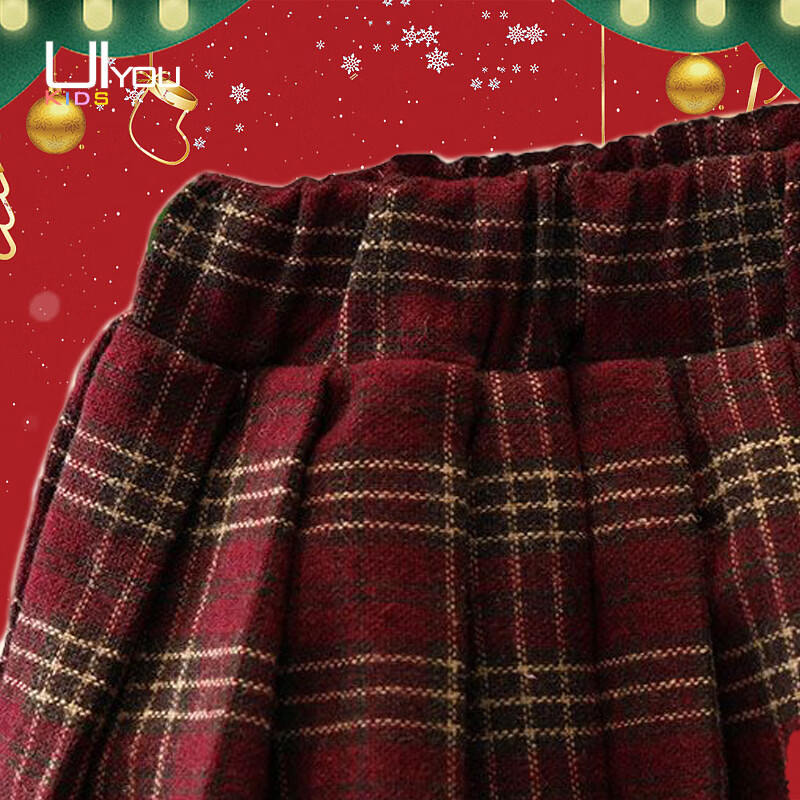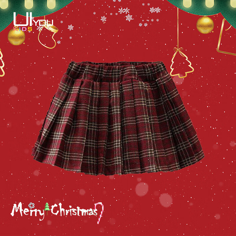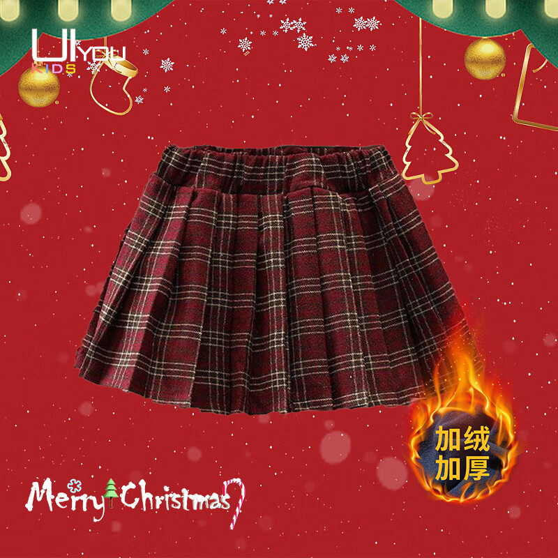 Girls Half-length Pleated Skirt Autumn and Winter Children's JK Skirt Double Denim Girl Middle School Red Plaid Skirt Performance Costume New Year Red-Pleated Skirt 130 130cm