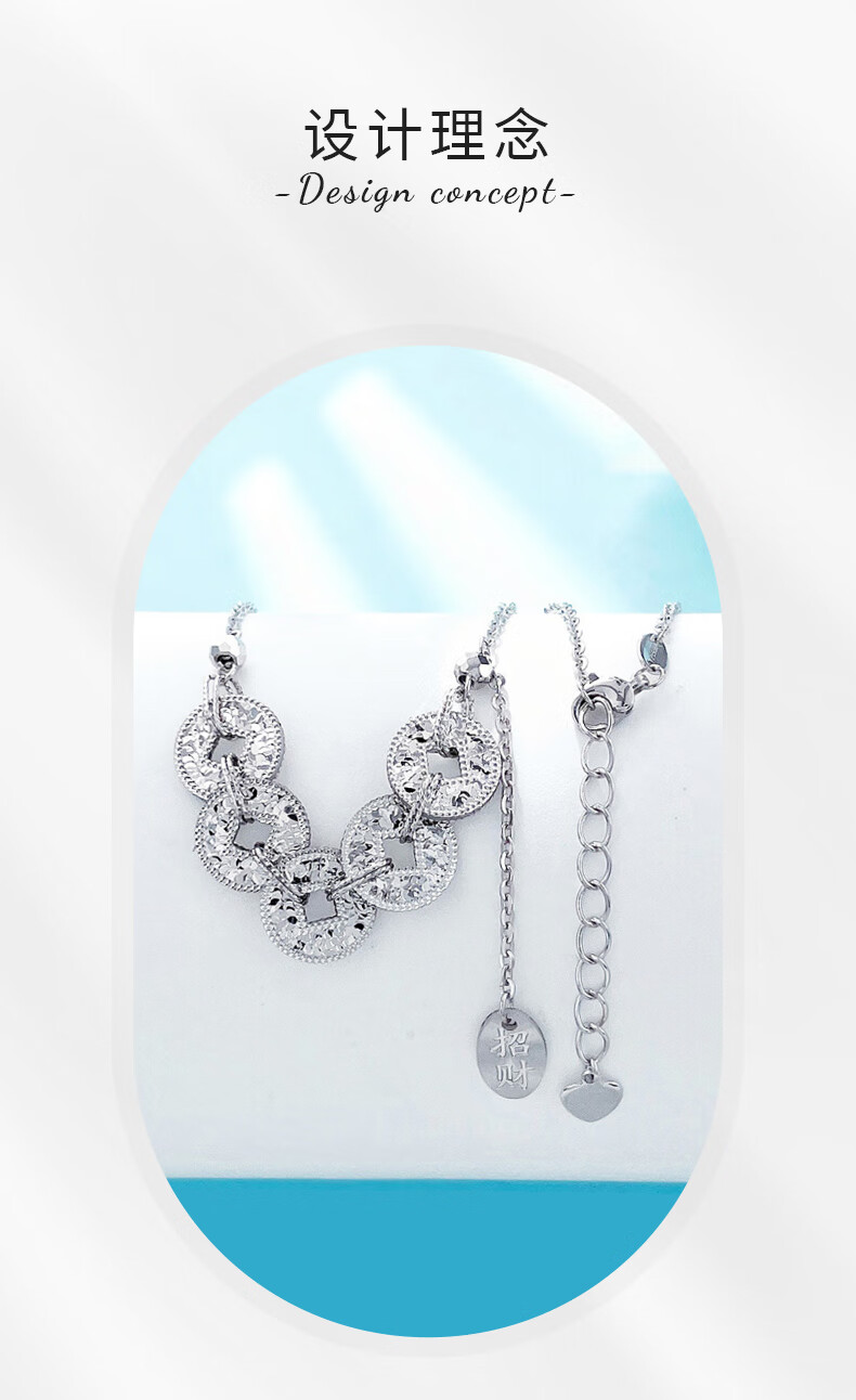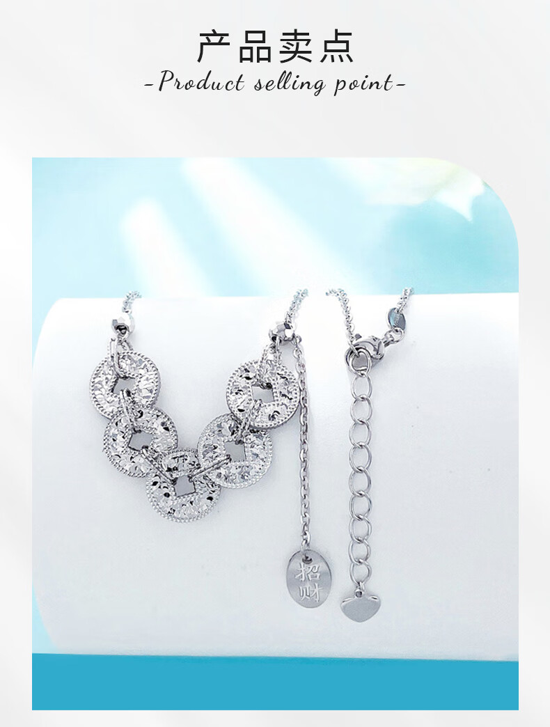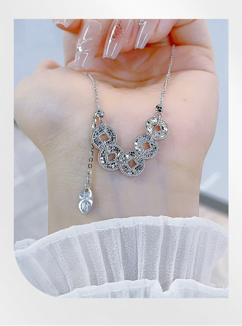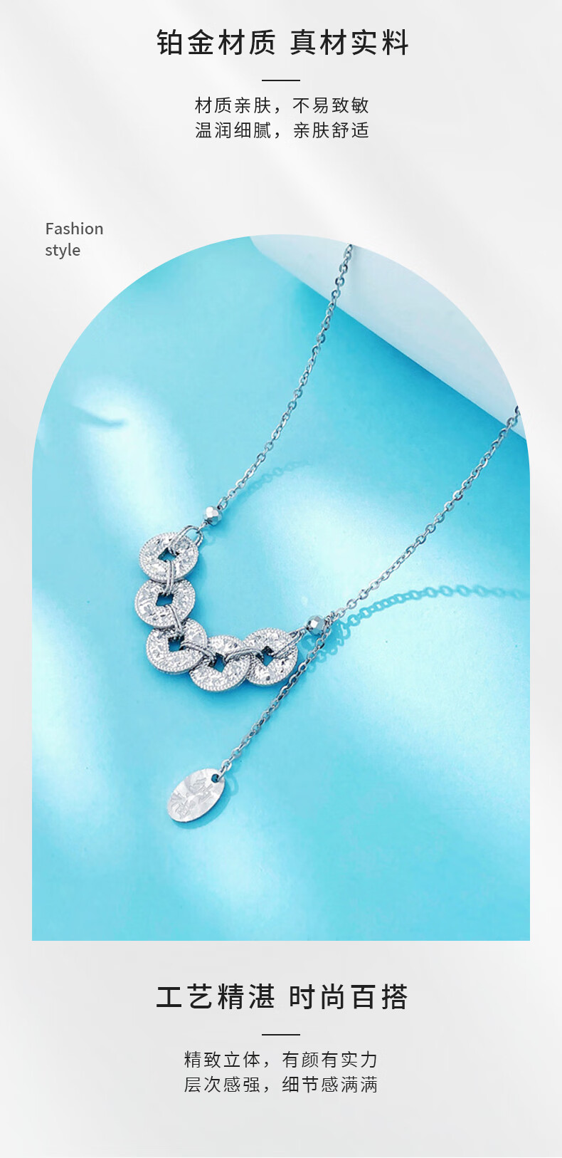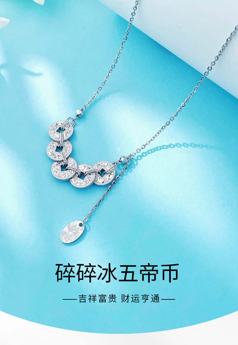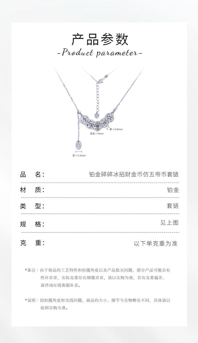 Laomiao PT950 Platinum Necklace Five Emperors Coin Set Chain Crushed Ice Clavicle Chain 2025 Style Birthday Gift for Girlfriend and Wife Platinum Crushed Ice Five Emperors Coin Set Chain Approximately 9.57g