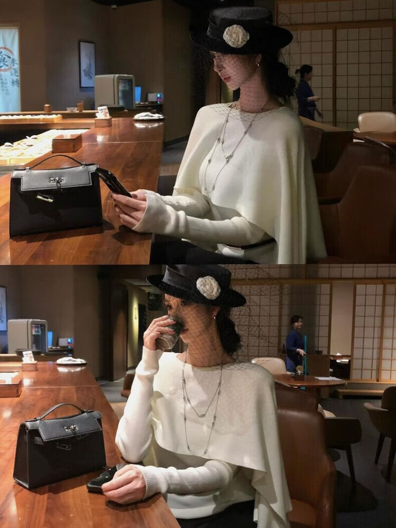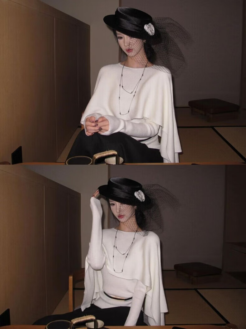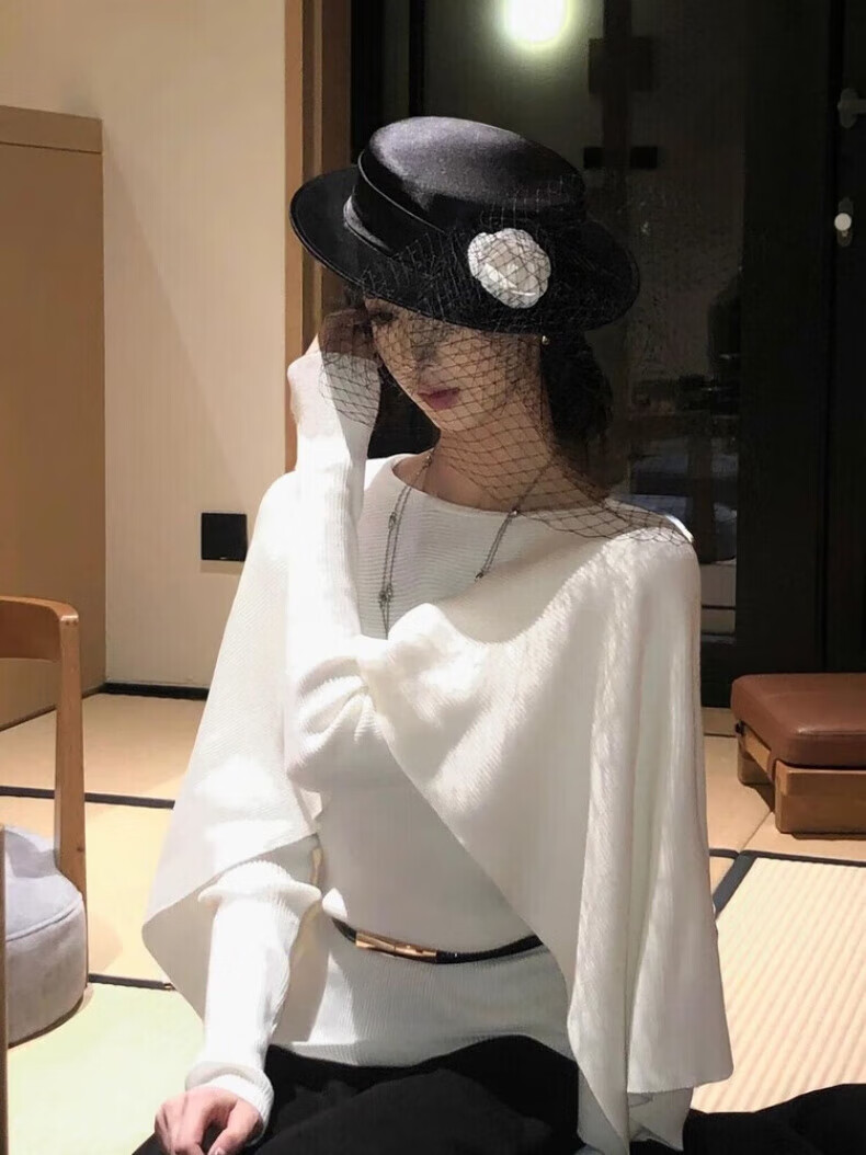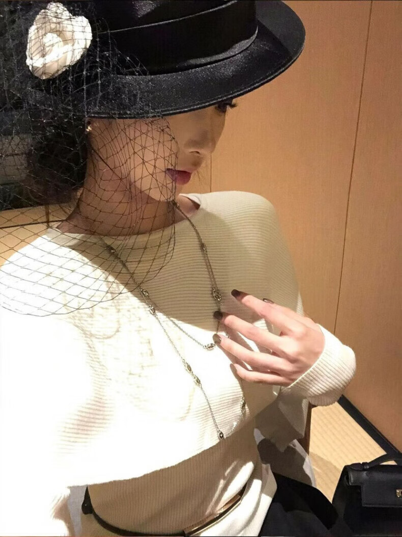 Midelle's Republic of China retro hat Hepburn style black flat hat mesh camellia French retro hat autumn and winter name mesh camellia French retro hat sense