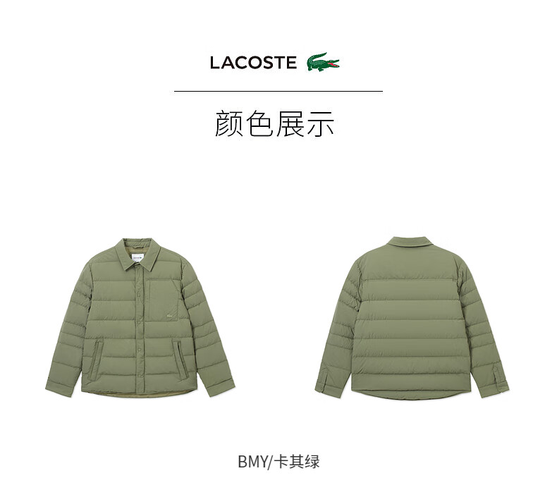 LACOSTE Wang Yibo's same style LACOSTE French crocodile men's lapel goose down jacket BH0709 BMY/khaki green S 44 /165