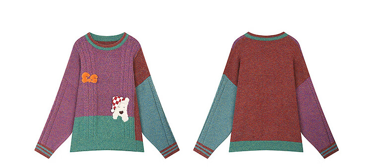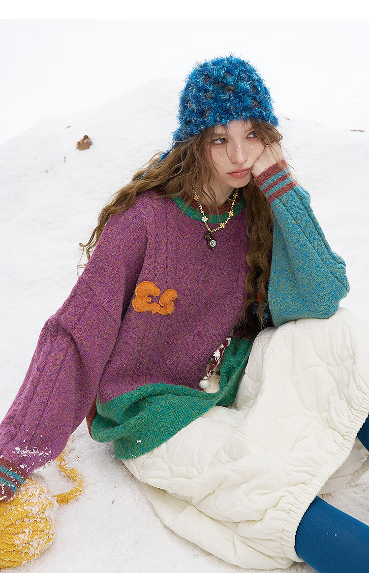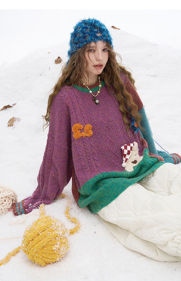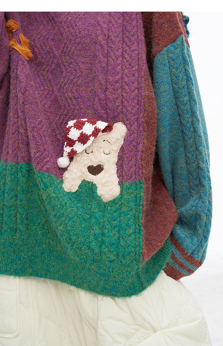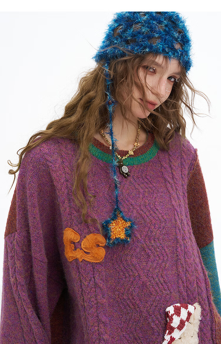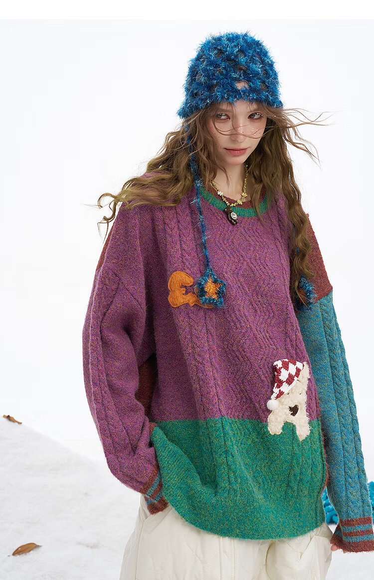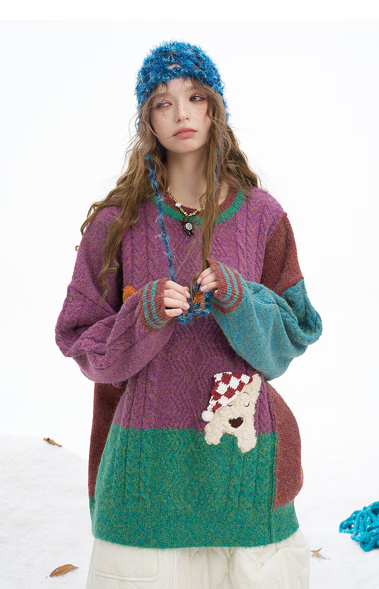 Fairy's Pocket Plush Three-dimensional Puppy Contrast Color Sweater Women's 2025 Winter New Lazy Style Soft and Waxy Puppy Green Purple L