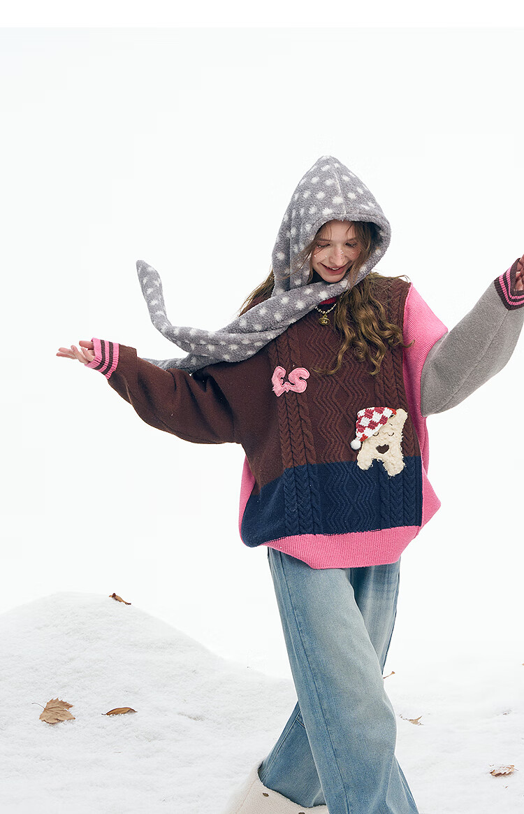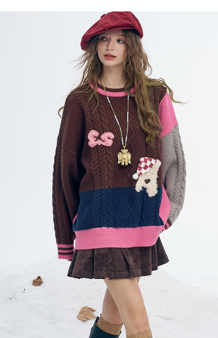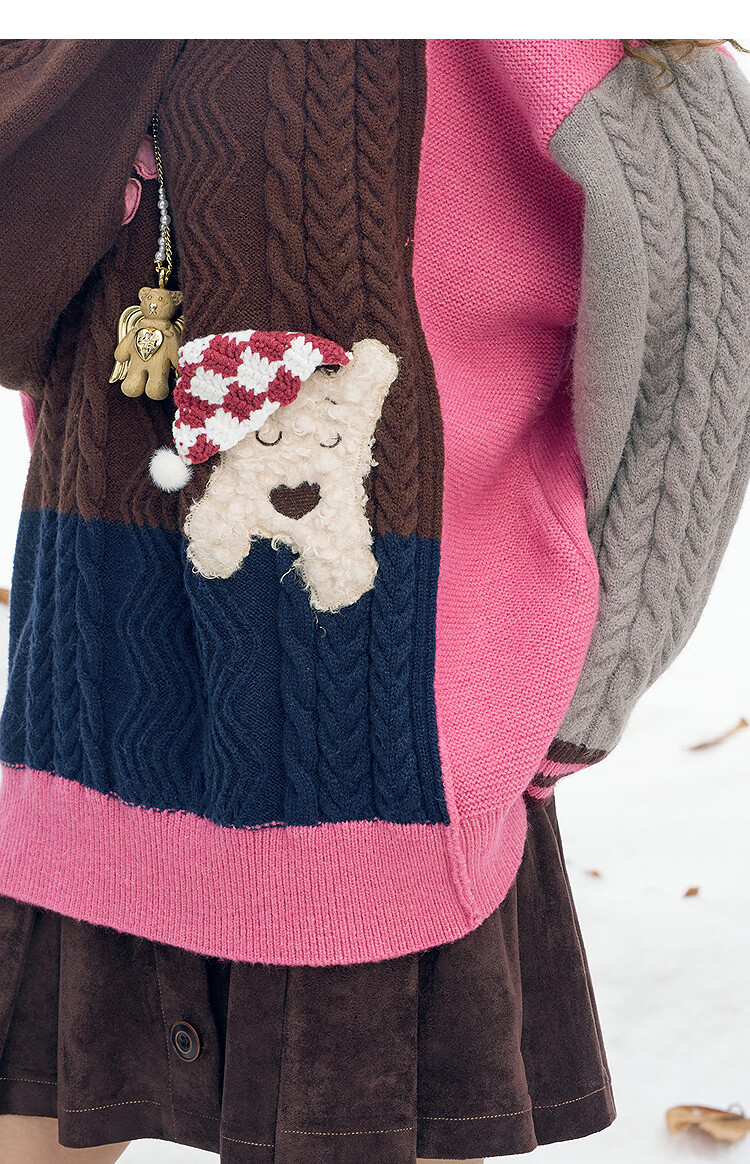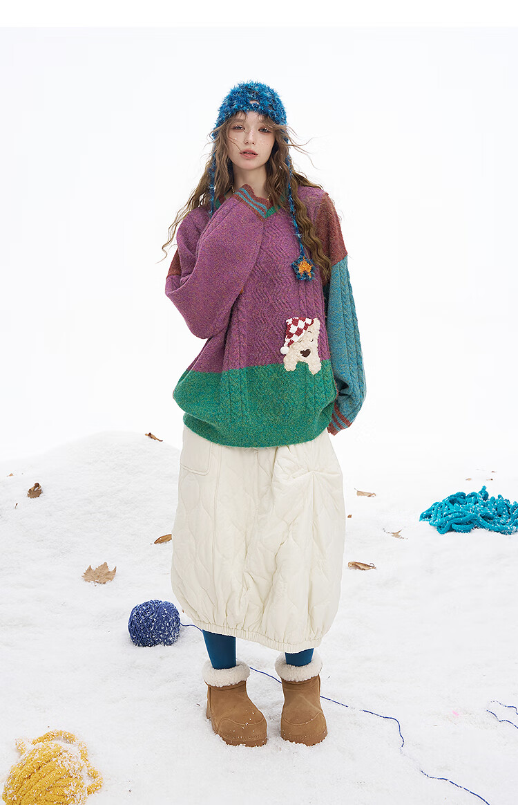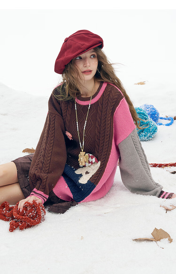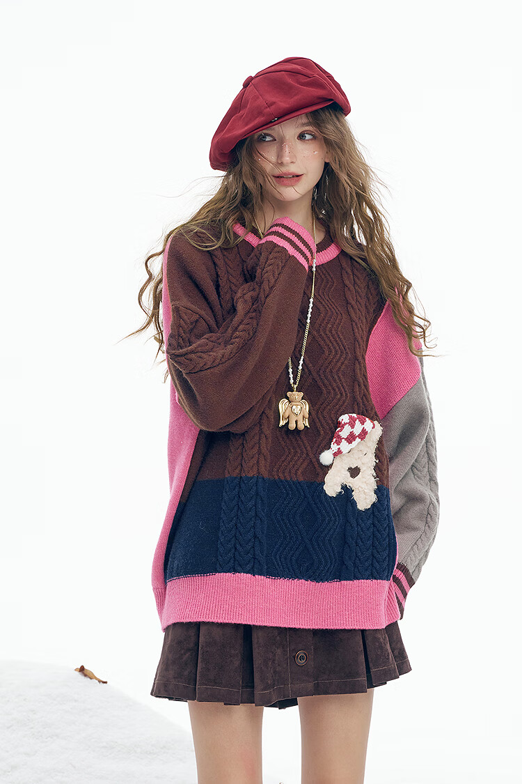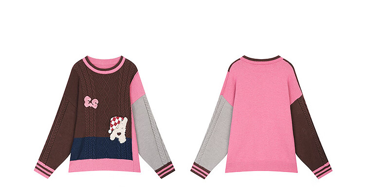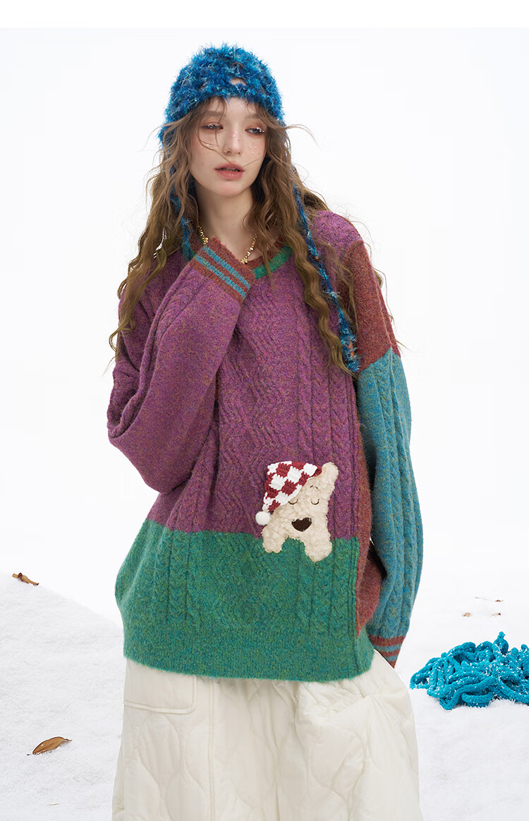 Fairy's Pocket Plush Three-dimensional Puppy Contrast Color Sweater Women's 2025 Winter New Lazy Style Soft and Waxy Puppy Green Purple L