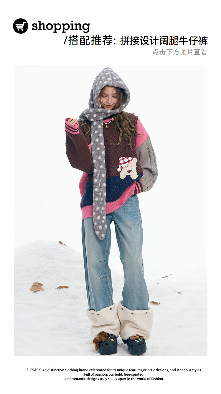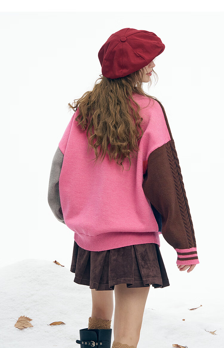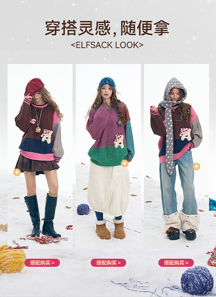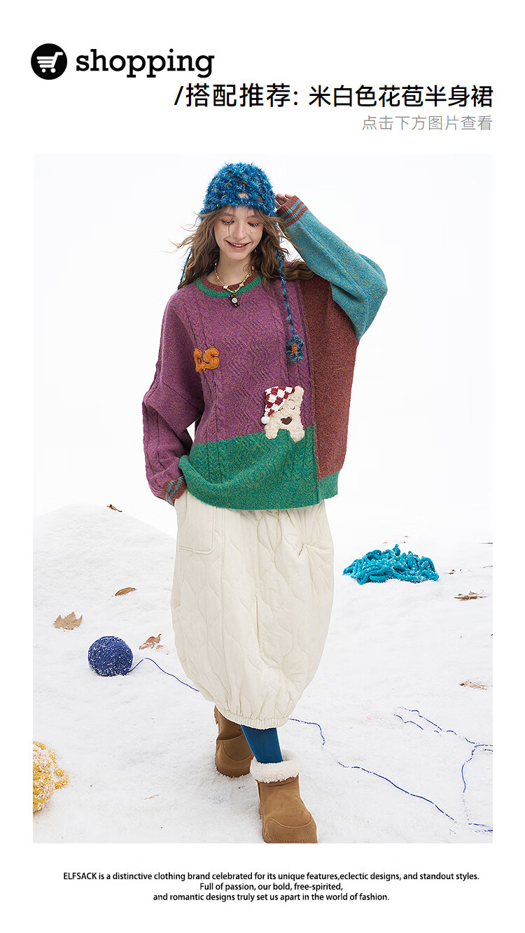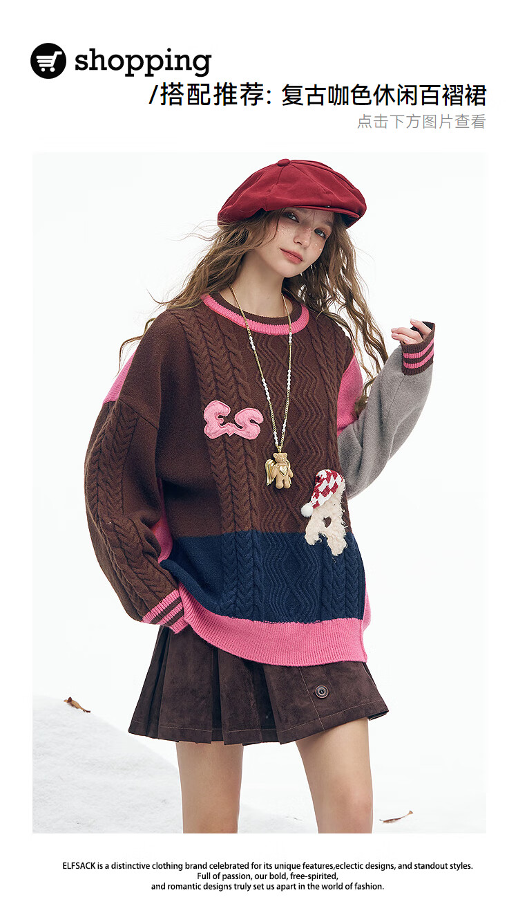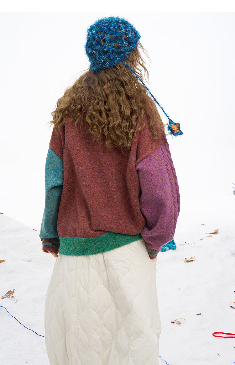 Fairy's Pocket Plush Three-dimensional Puppy Contrast Color Sweater Women's 2025 Winter New Lazy Style Soft and Waxy Puppy Green Purple L