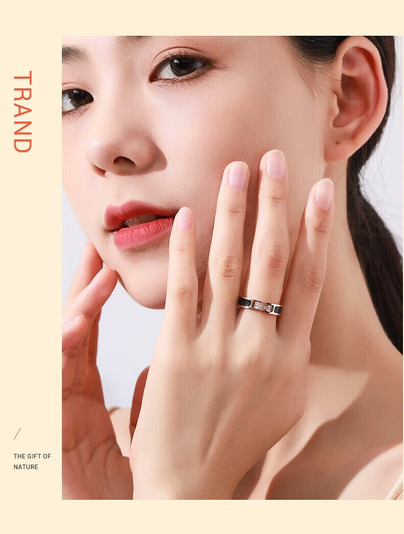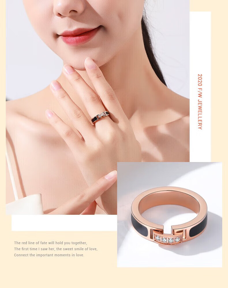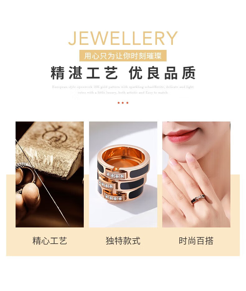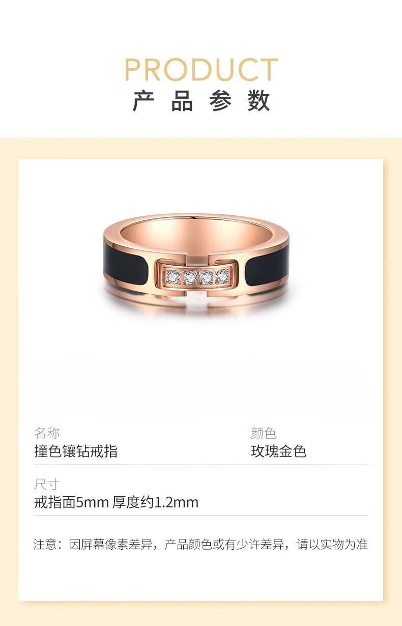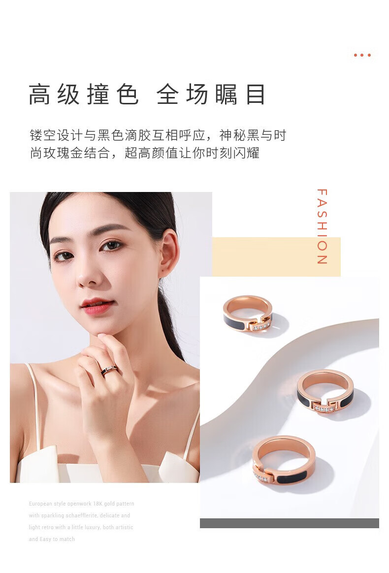 Ji Sifan light luxury brand fashion jewelry ring for women, high-end Valentine's Day gift for girlfriend and wife on birthday and anniversary, fashionable contrasting color ring - black stripe and diamond model, US No. 4 (with gift box), counter No. 5~7