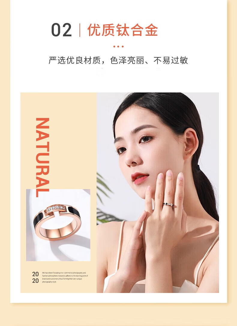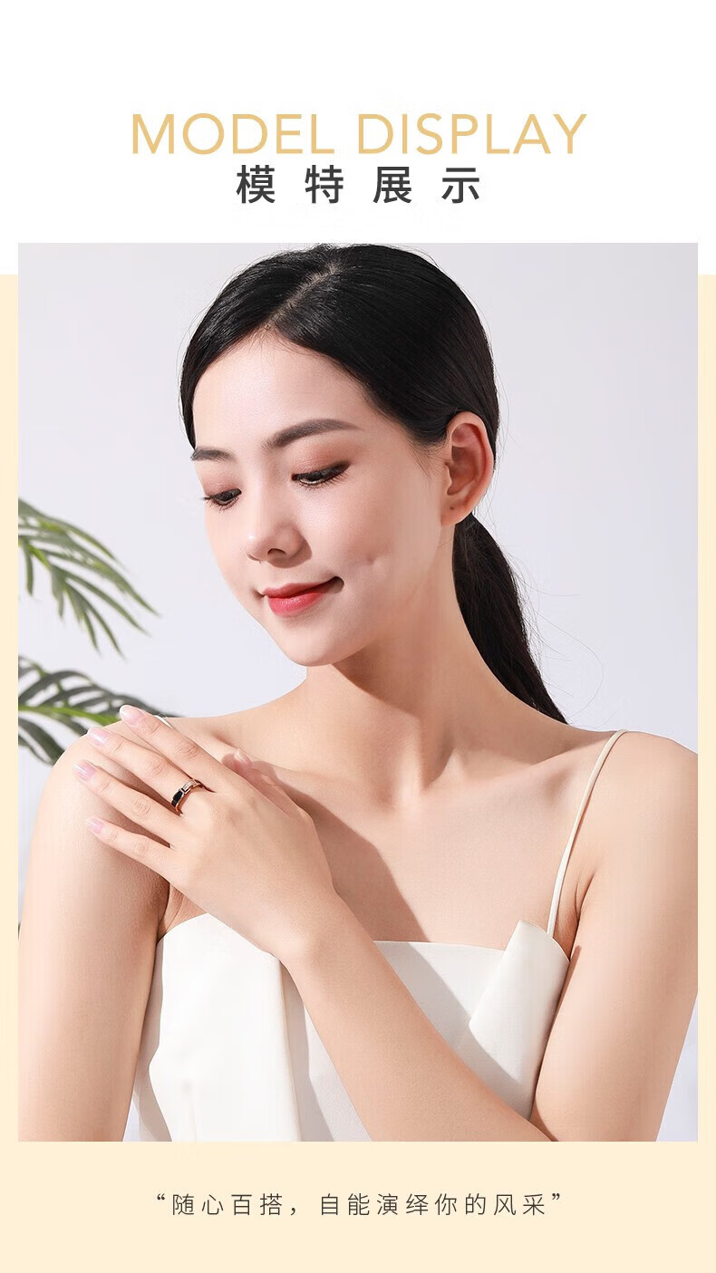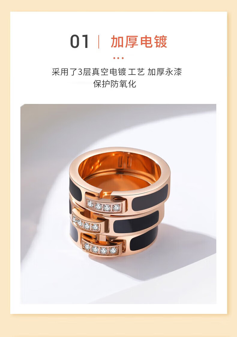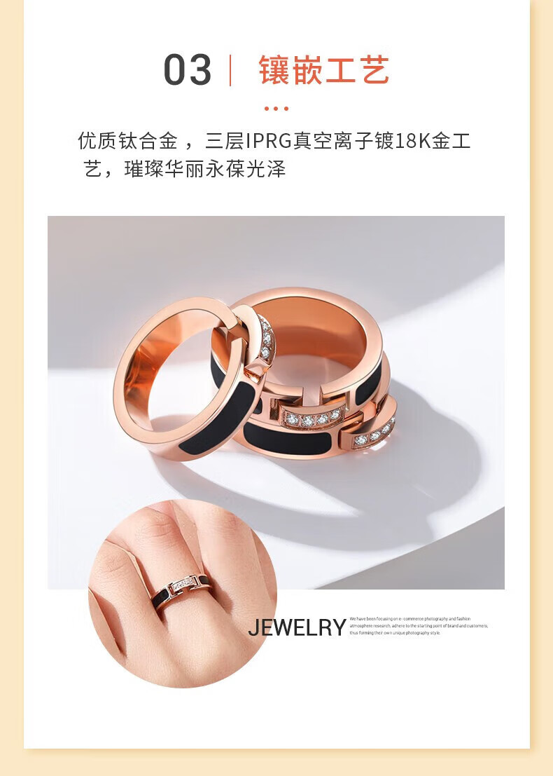 Ji Sifan light luxury brand fashion jewelry ring for women, high-end Valentine's Day gift for girlfriend and wife on birthday and anniversary, fashionable contrasting color ring - black stripe and diamond model, US No. 4 (with gift box), counter No. 5~7