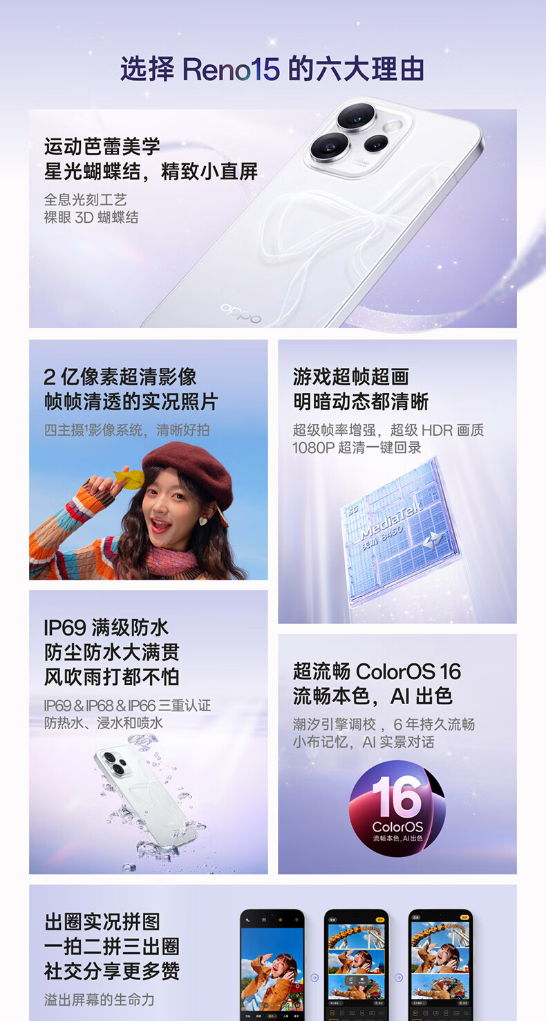 OPPO new product Reno15 new product launched opporeno15 new oppo mobile phone 5g full network camera and live broadcast mobile phone 200 million pixel ultra-clear image fully waterproof starlight bow 12+256GB official standard configuration