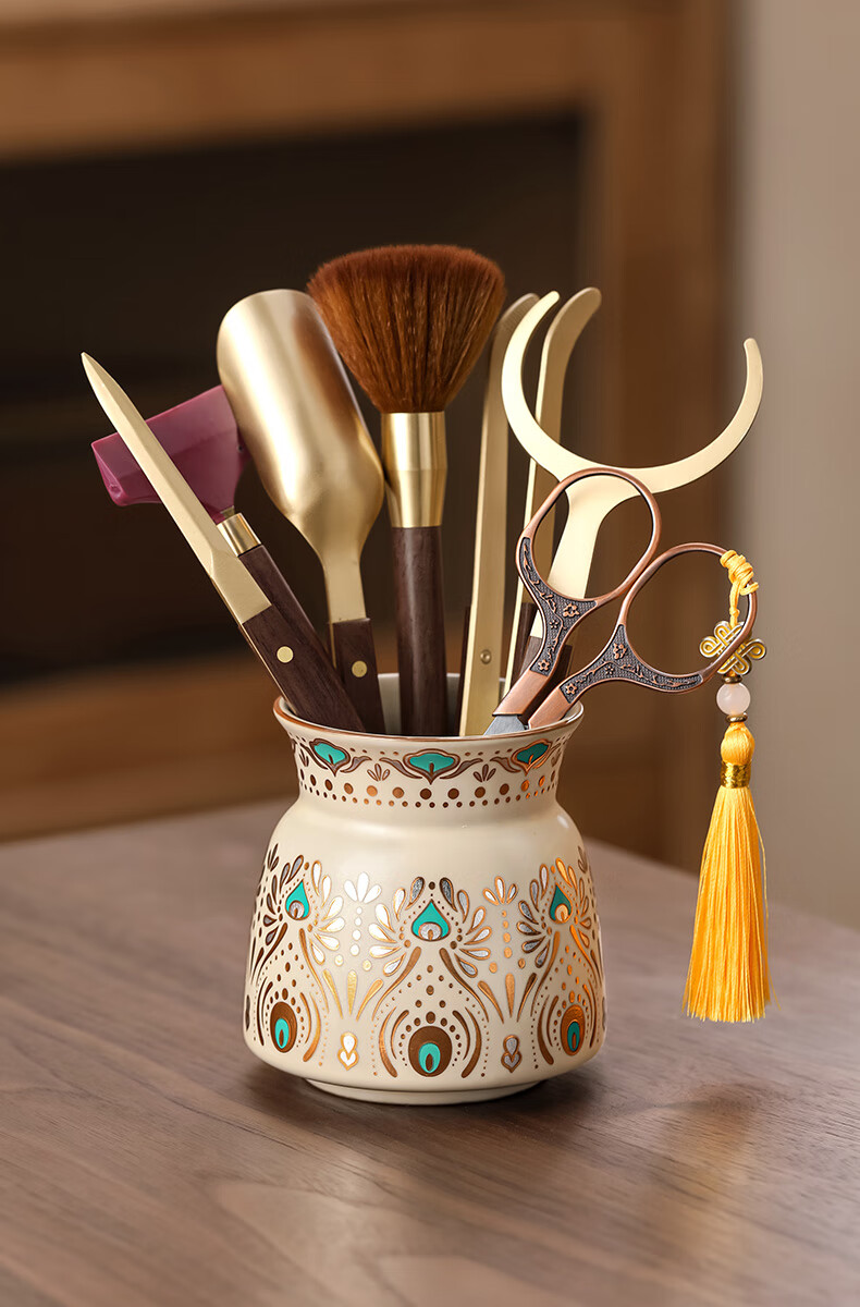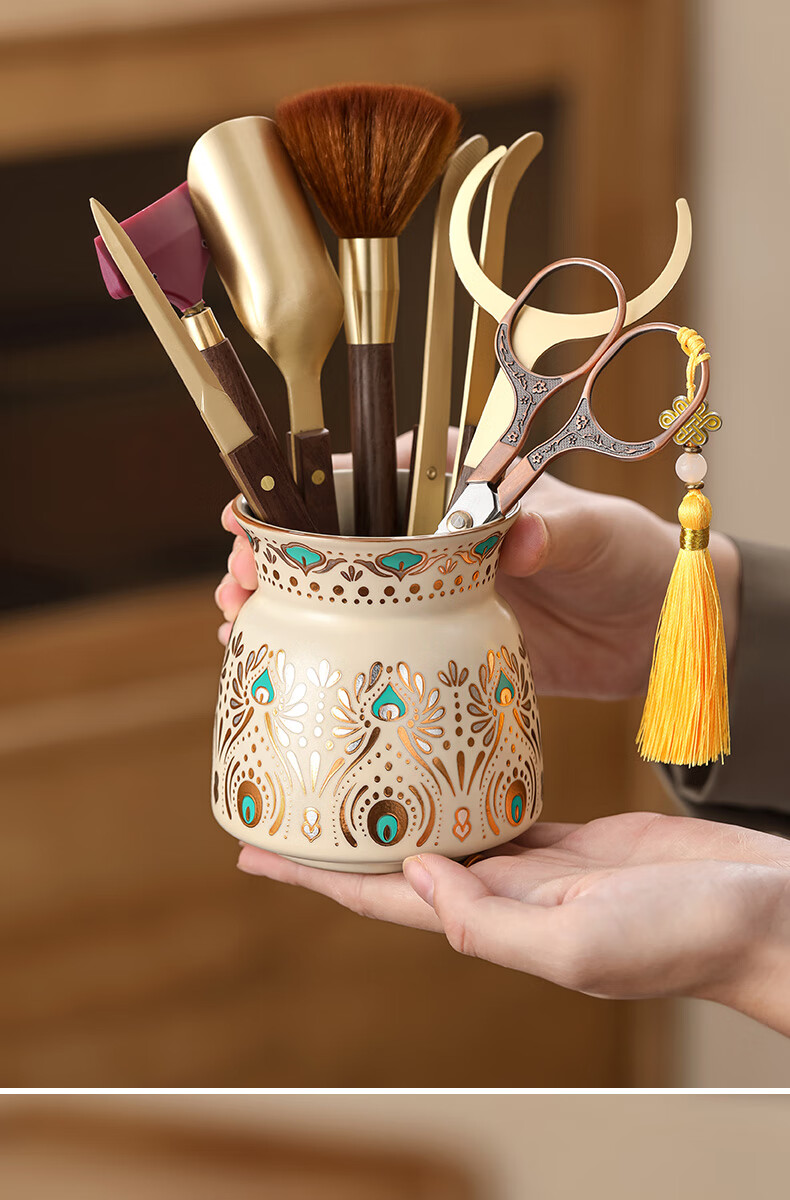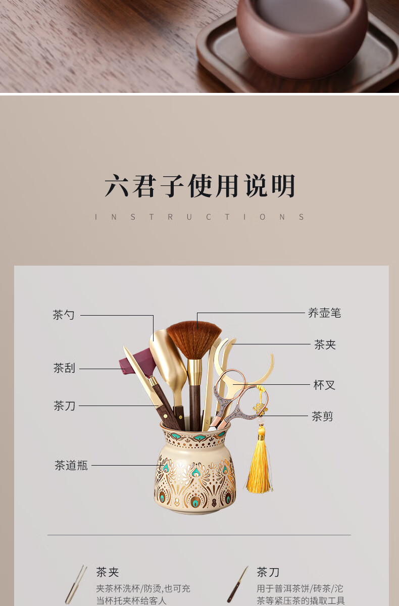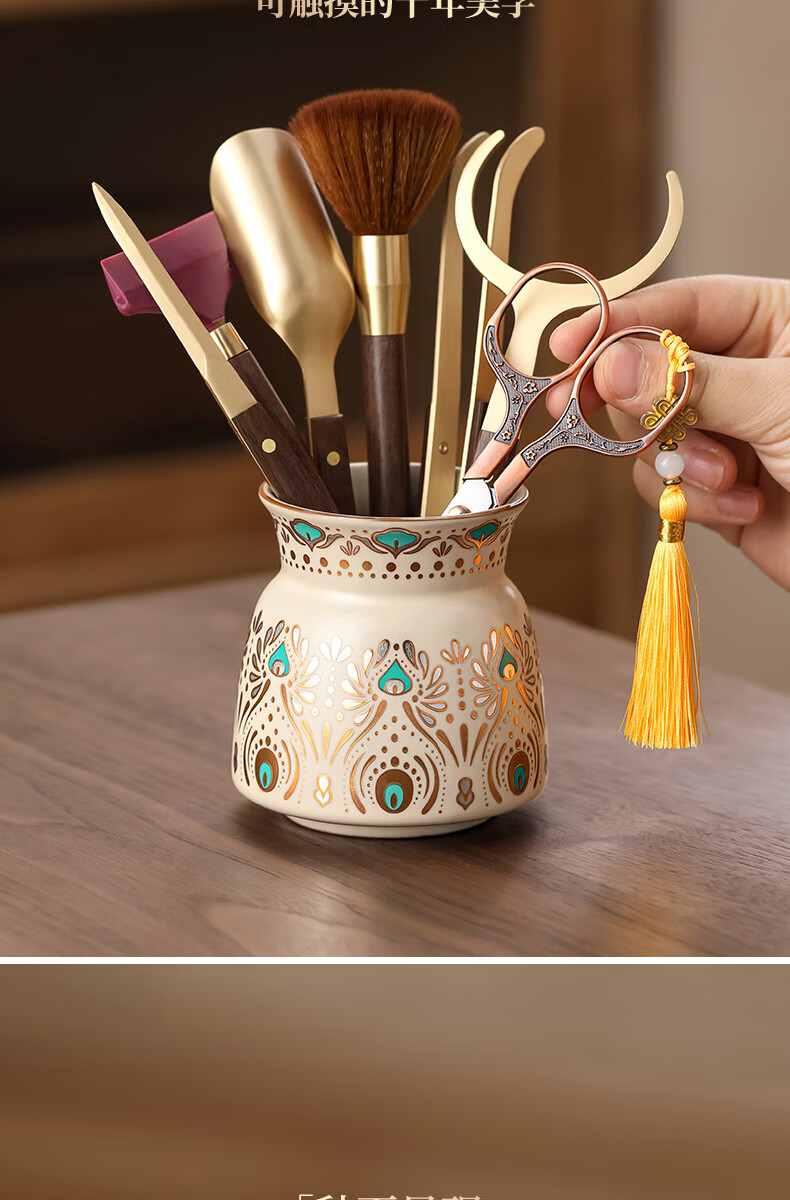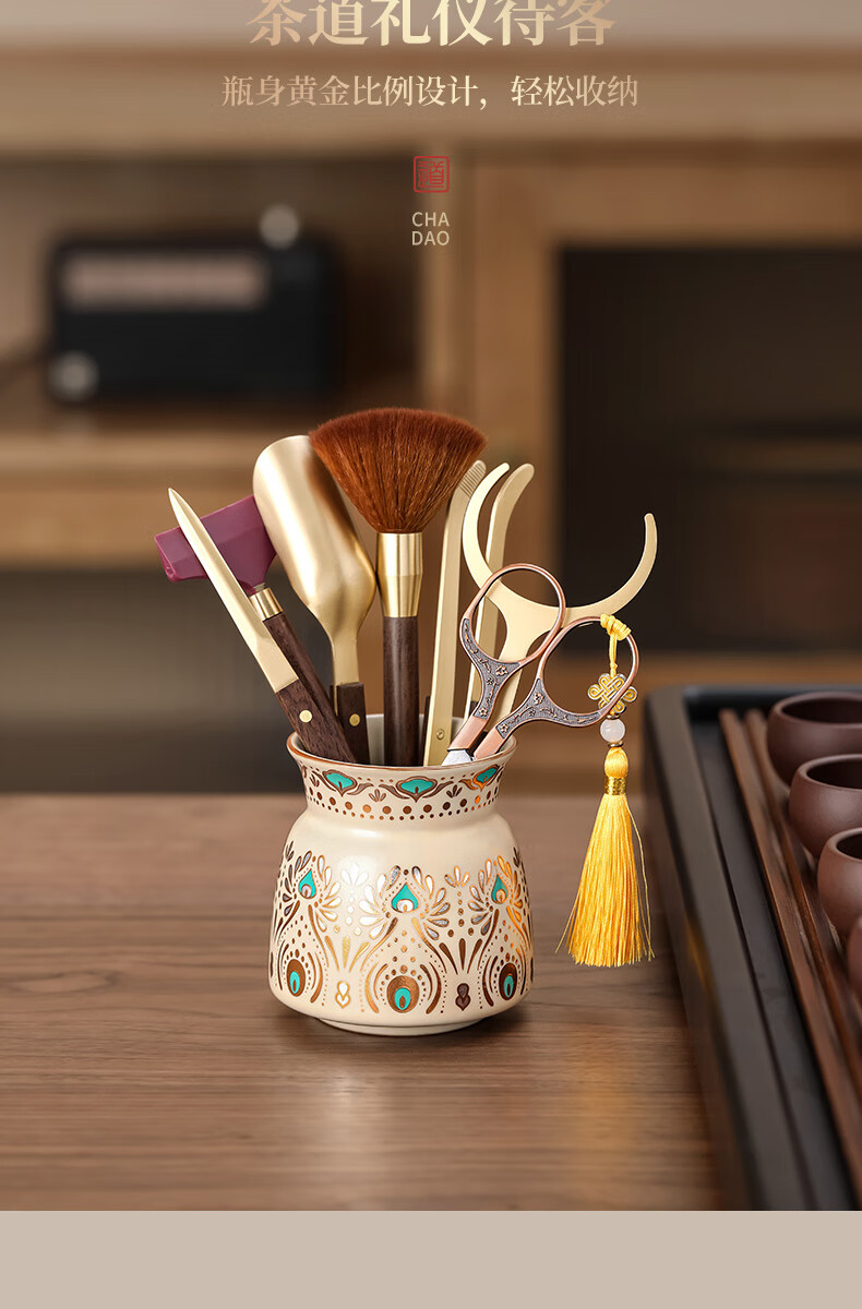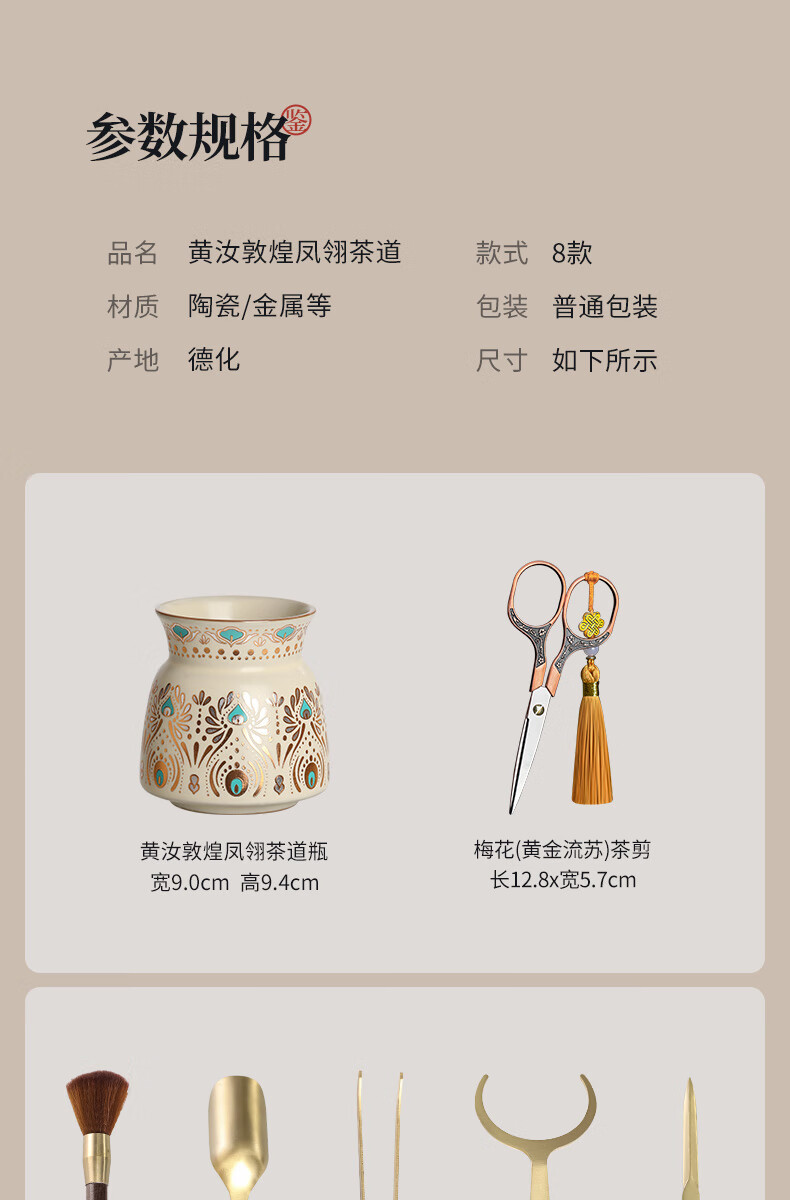 Tea Ceremony Six Gentlemen Set Dunhuang Ru Kiln High-end Tea Clips Tea Scissors Tea Spoon Tea Brush Tea Accessories 1-Huang Ru Dunhuang Feng Ling Tea Ceremony Bottle + Houze 6 Accessories + Plum Blossom Scissors