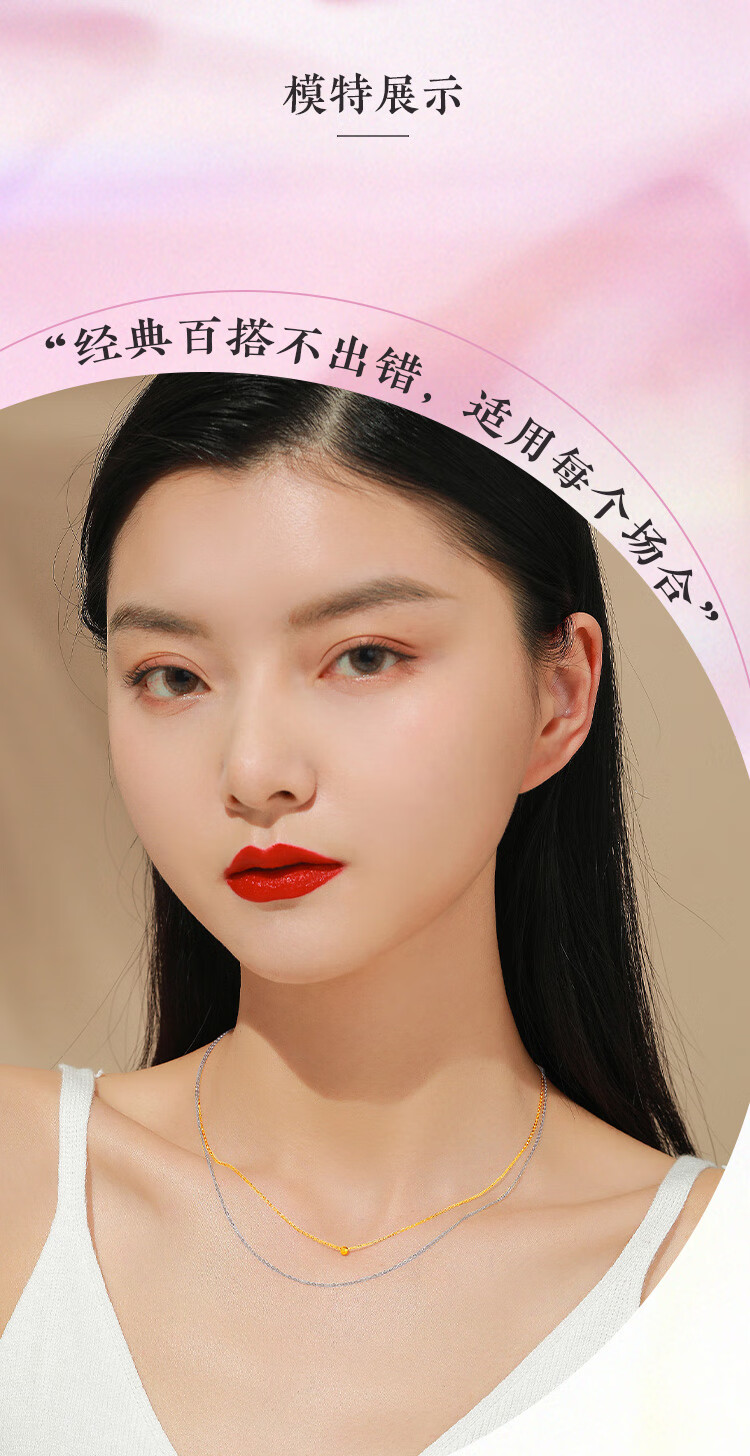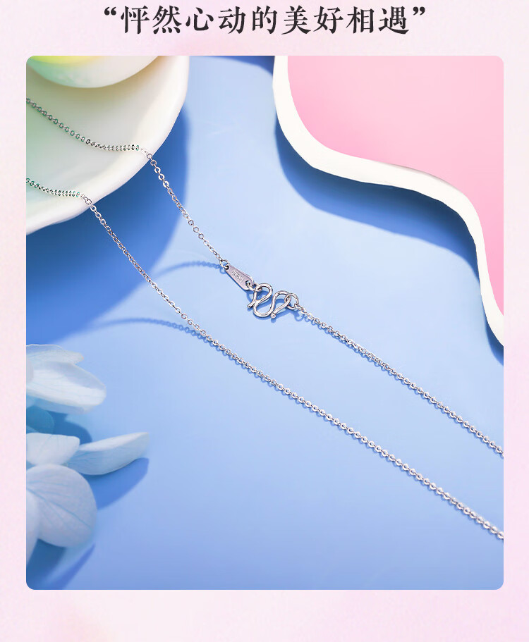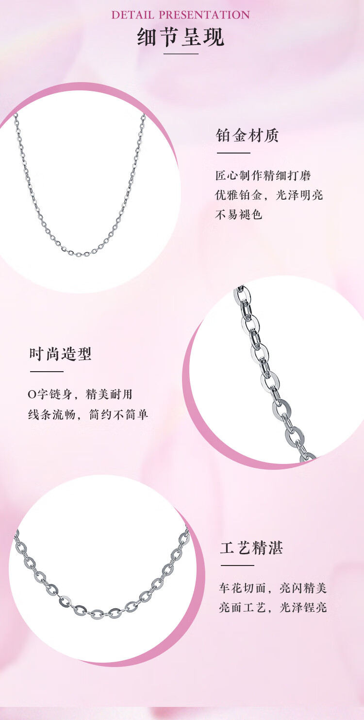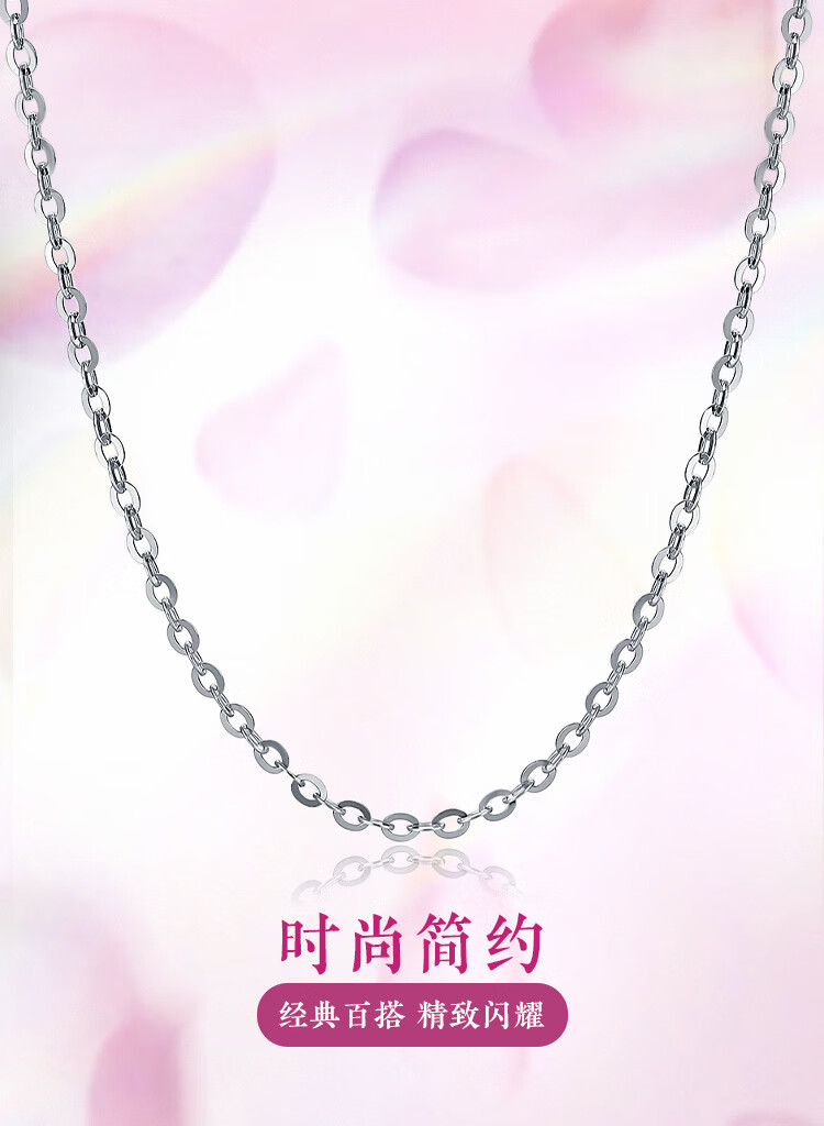 WAN FU LONG platinum PT950 necklace, genuine platinum clavicle O-shaped all-match plain chain M buckle women's birthday gift for girlfriend, PT950 platinum, about 43cm long, weighing 1.29g