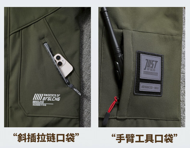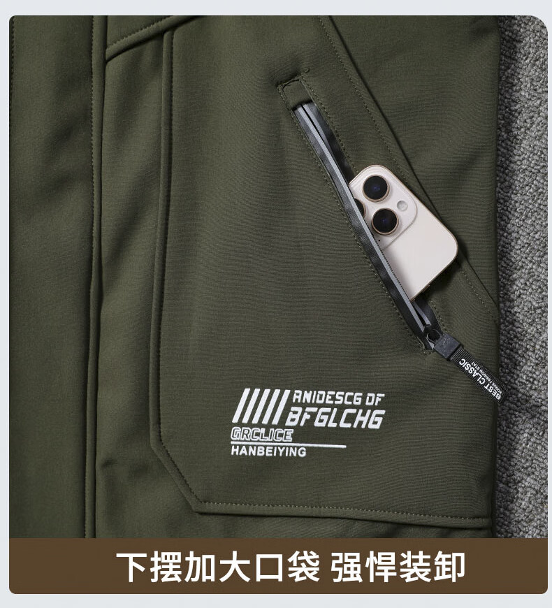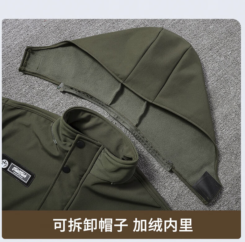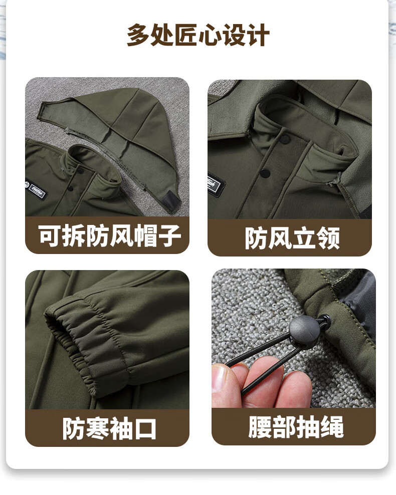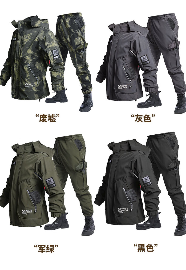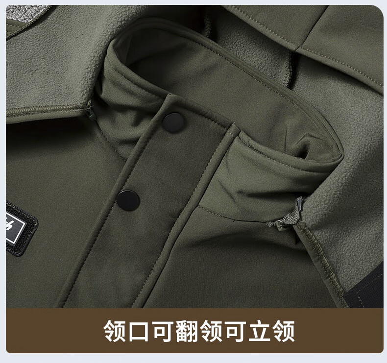 Camel autumn and winter velvet waterproof jacket, wind-resistant and warm soft-shell combat clothing, fishing and riding warm labor protection work clothes H style_9968_waterproof velvet jacket suit_black 170