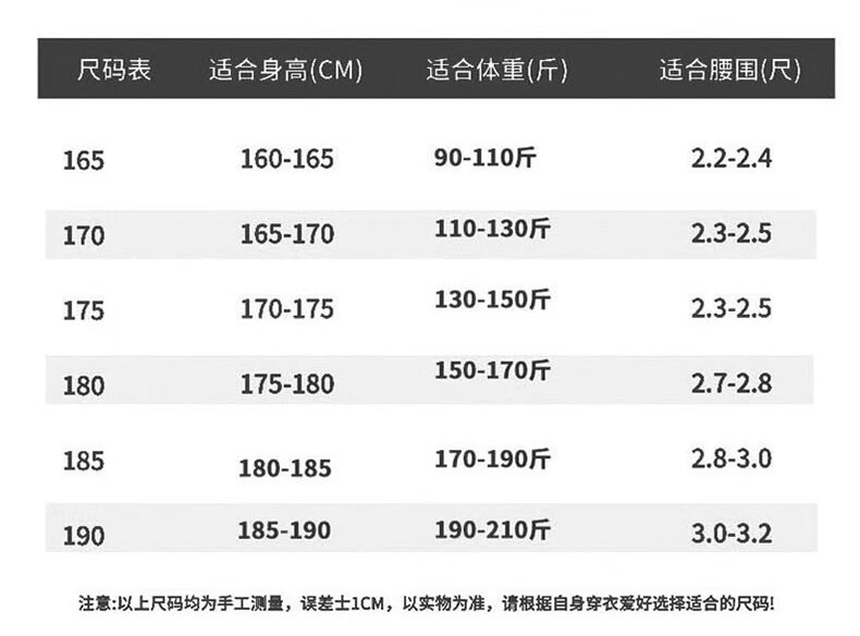 China (cm) 165 / 88-90 170 / 96-98 175 / 108-110 180 / 118-122 185 / 126-130