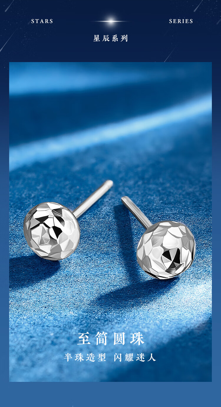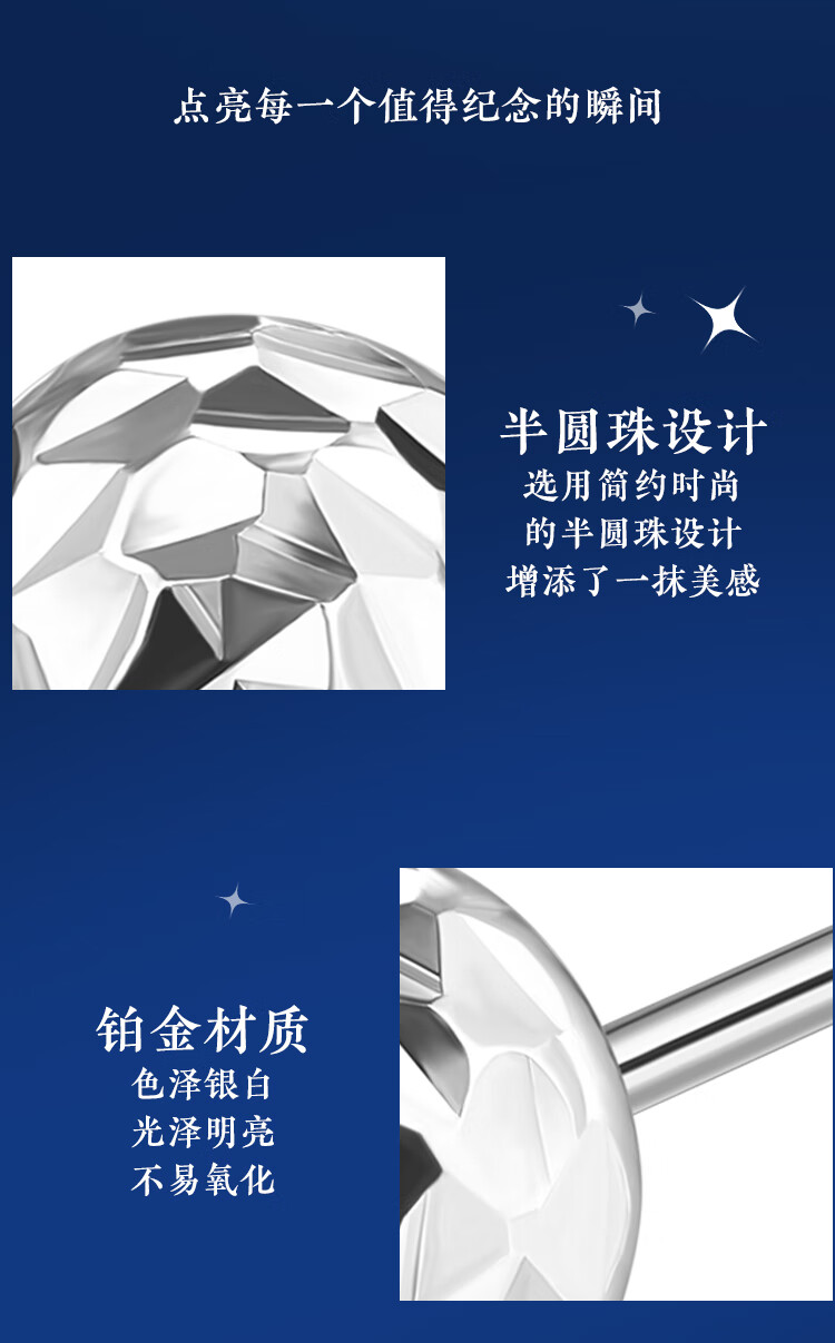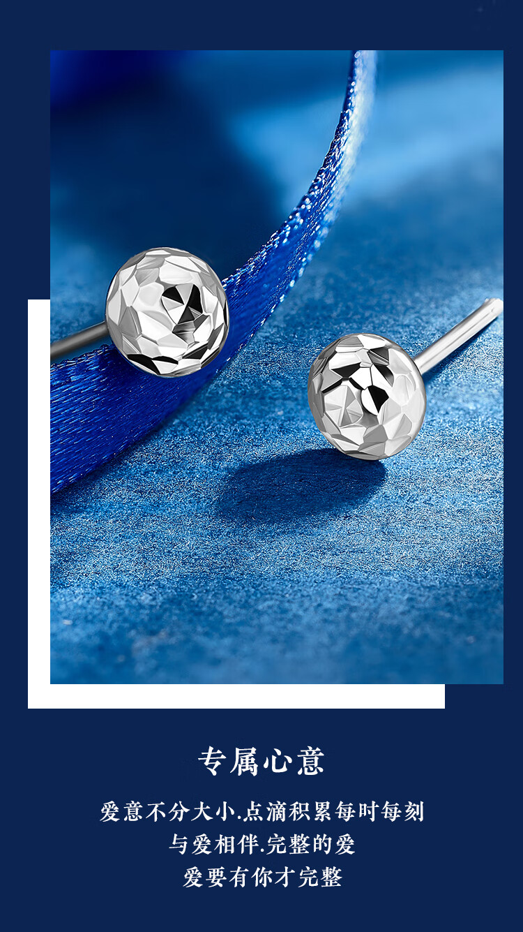 Wanfulong Soft Light Reflects the Face丨PT950 Semi-circular Mirror Beads Platinum Earrings for Ear Holization, Temperament and Versatile Platinum Earrings for Gifts, Genuine Platinum, One Certificate for One Thing, 10% off for Fake Ones 0.75g