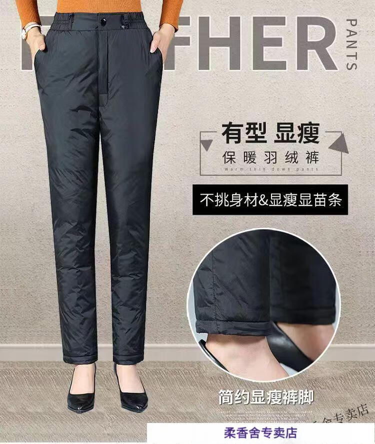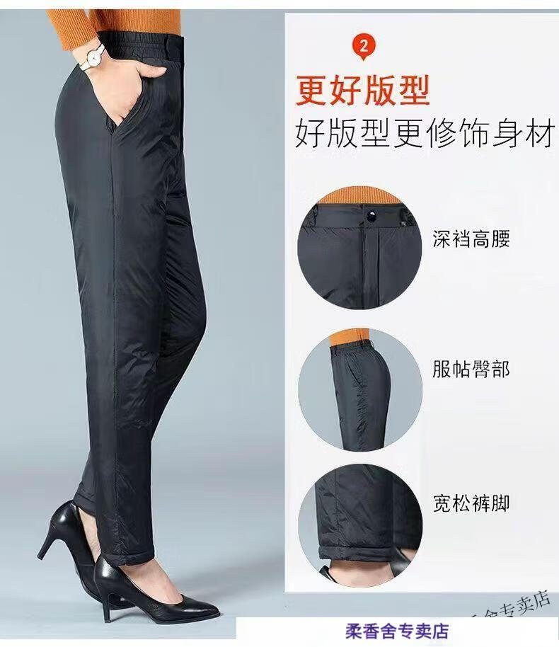 ROMON down pants for middle-aged and elderly women, loose large-size thickened warm cotton pants for winter, high-waisted duck pants for men and women, official flagship black M, recommended 80-105 Jin Jin equals 0.5 kg
