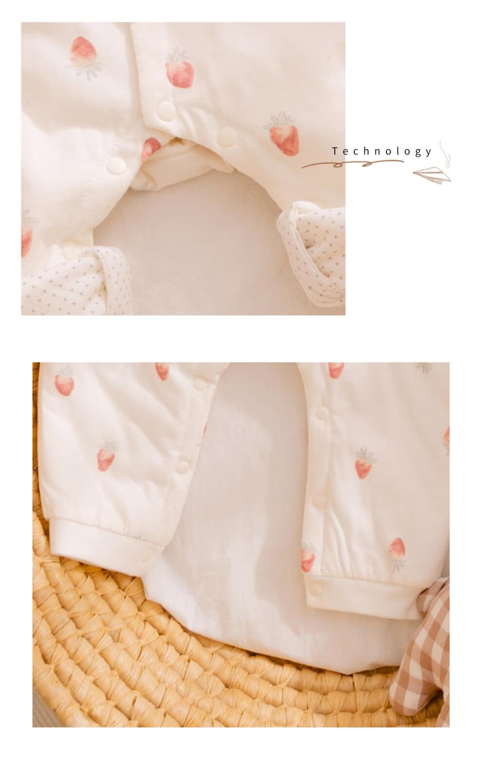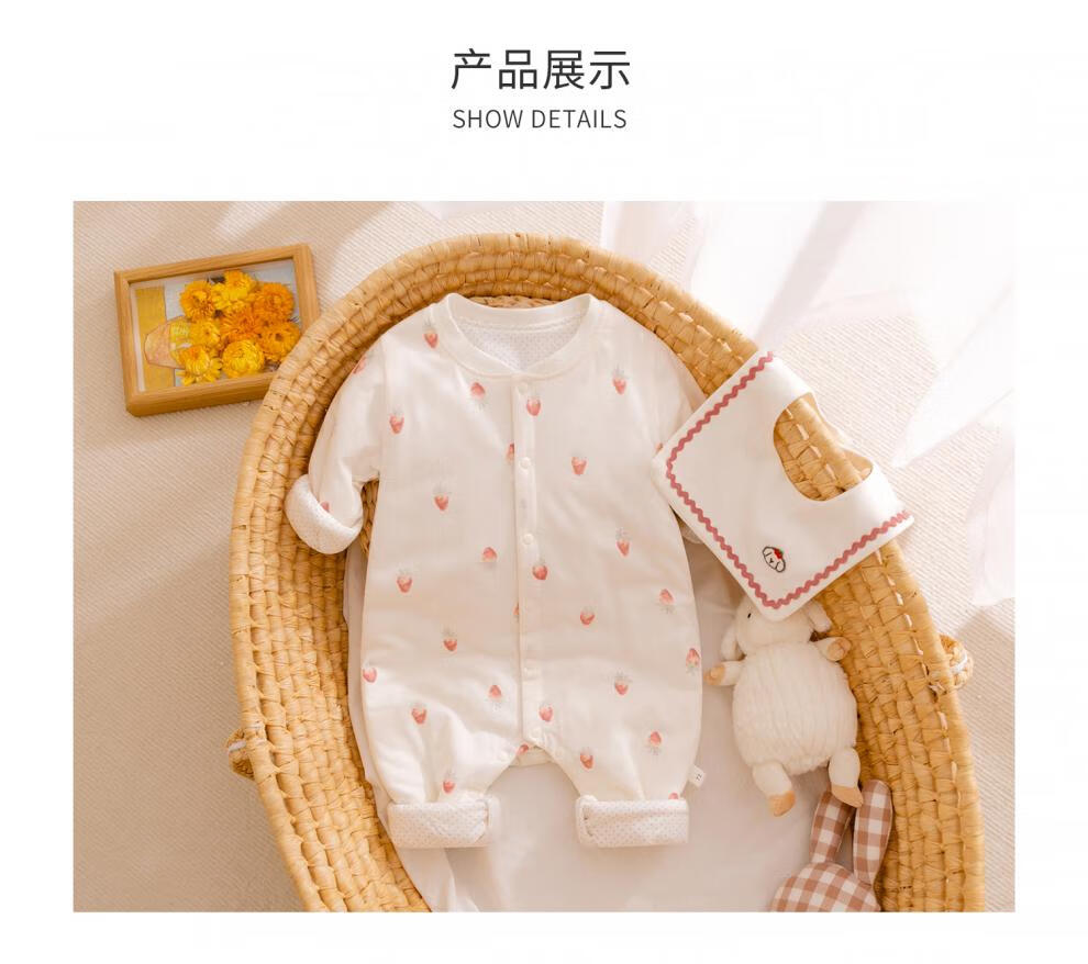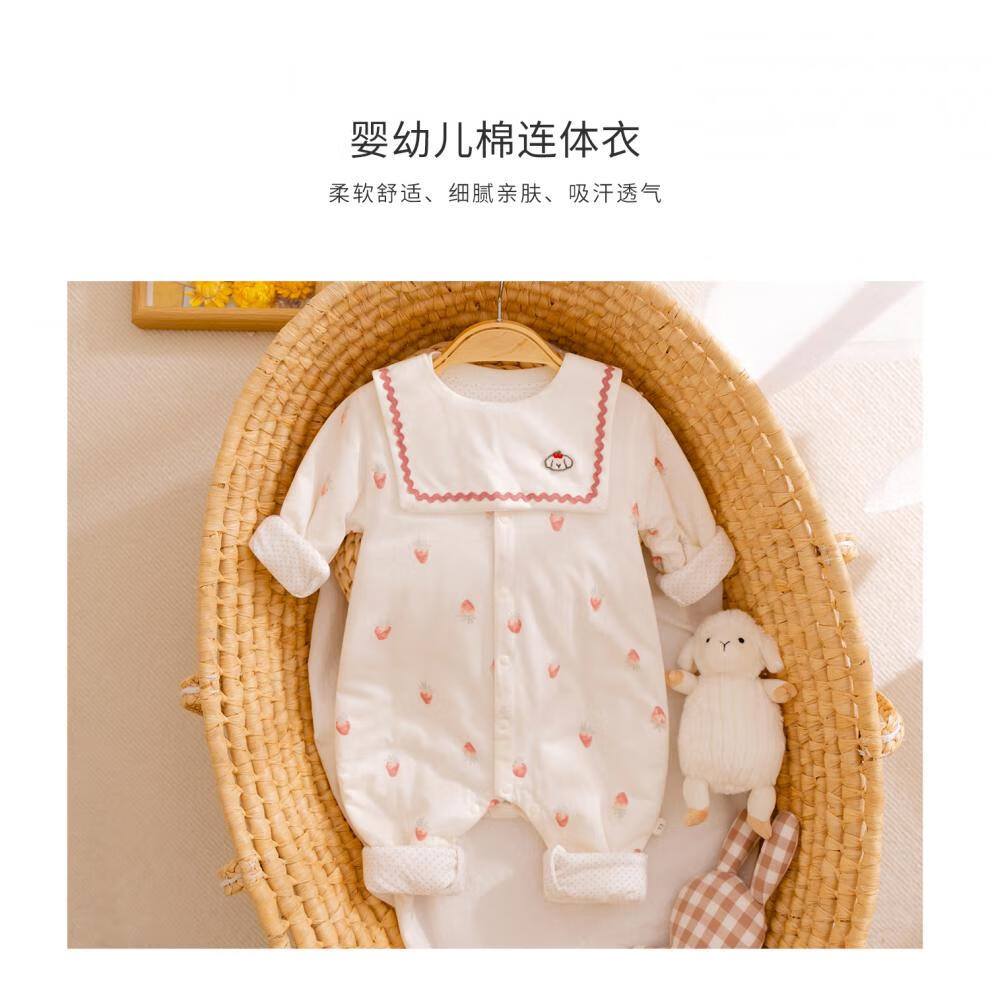 Semir children's baby quilted jumpsuit, autumn and winter clothes, thin cotton clothes, 369-month-old baby rompers, pure cotton, early autumn, full of printed delicious strawberries 73cm