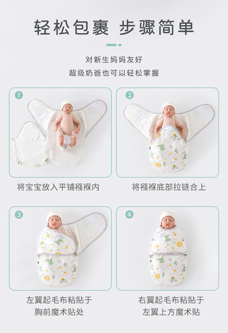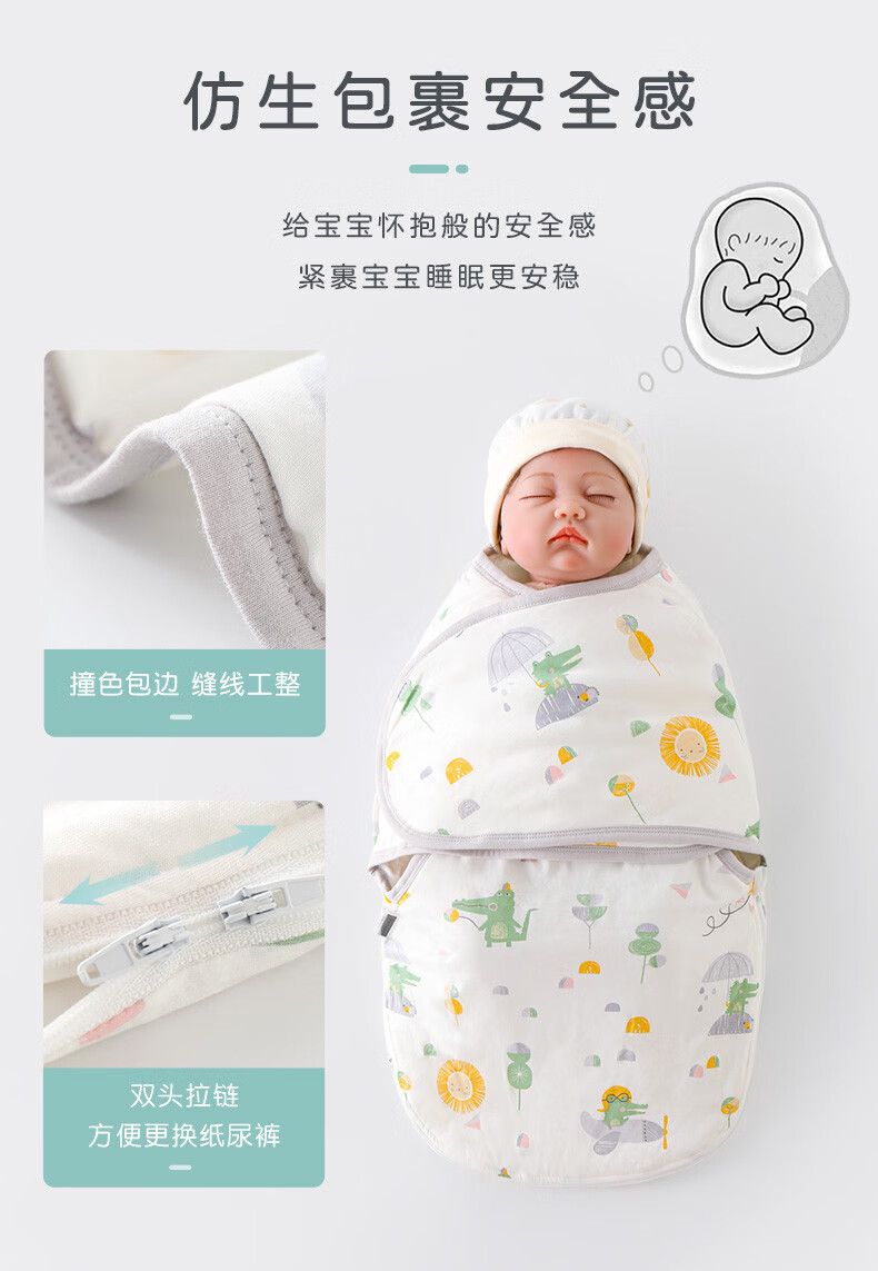 Tongtaibeikang Tongtai baby anti-jump sleeping bag swaddle spring, autumn and winter pure cotton swaddling towel baby sleeping god leaf white often single layer M 66cm