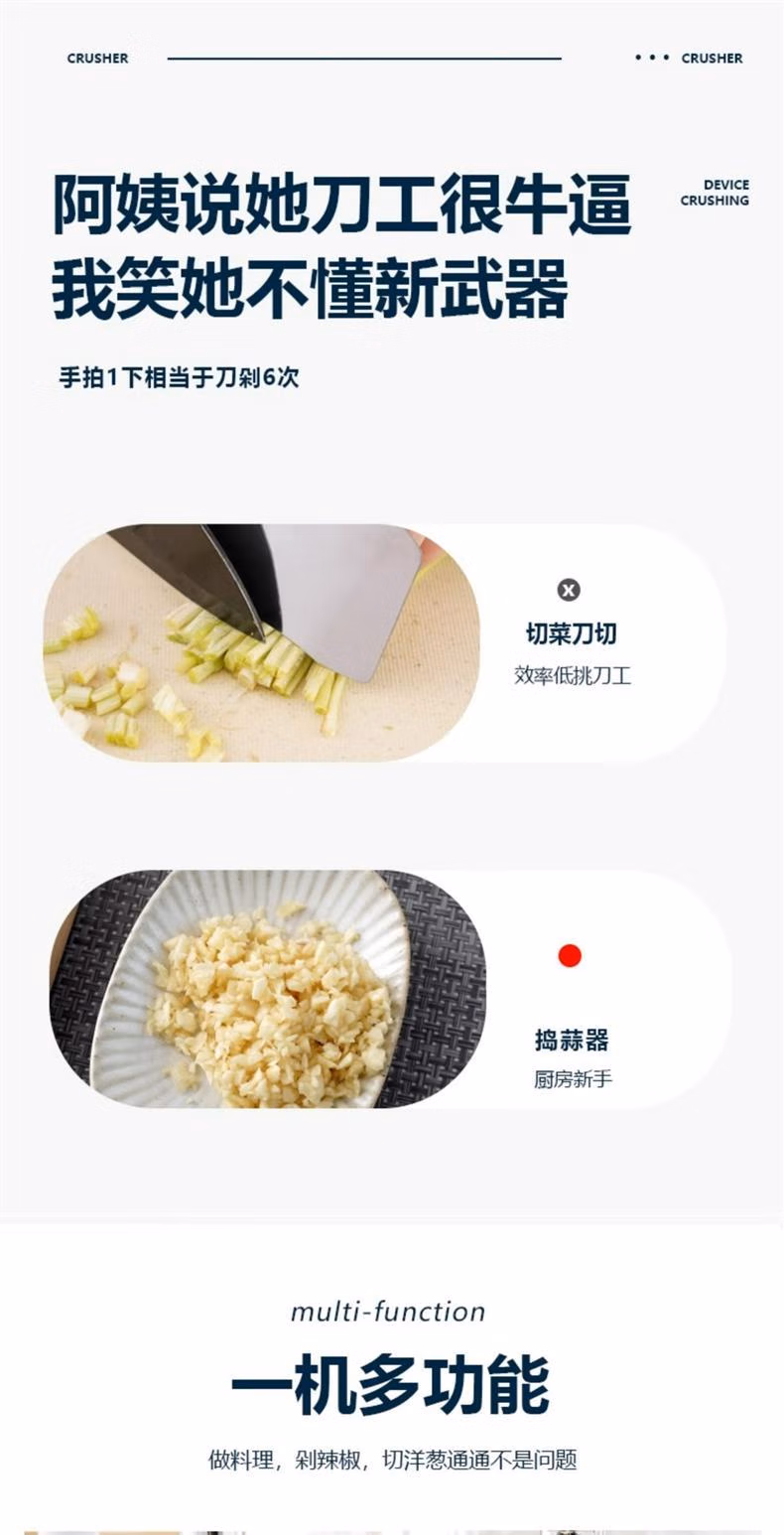 Huli Germany's new model multi-functional garlic cutter household manual garlic press stirrer garlic masher kitchen garlic god upgraded model black 1 pack