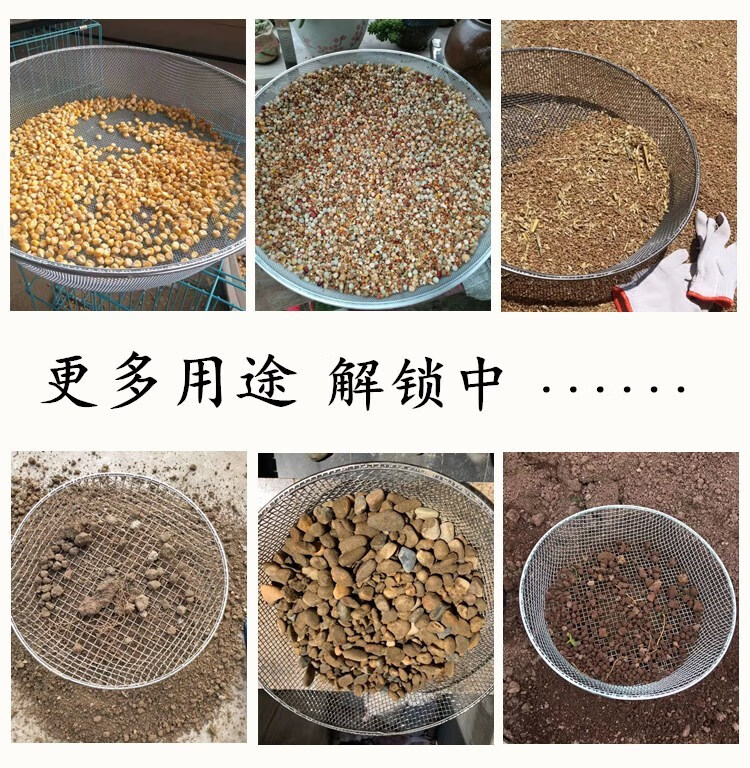 304 stainless steel sieve household round sieve sand chestnut rice bean filter large mesh gardening corn soil sieve 1.5 mm mesh (diameter 37 cm) 304 stainless steel