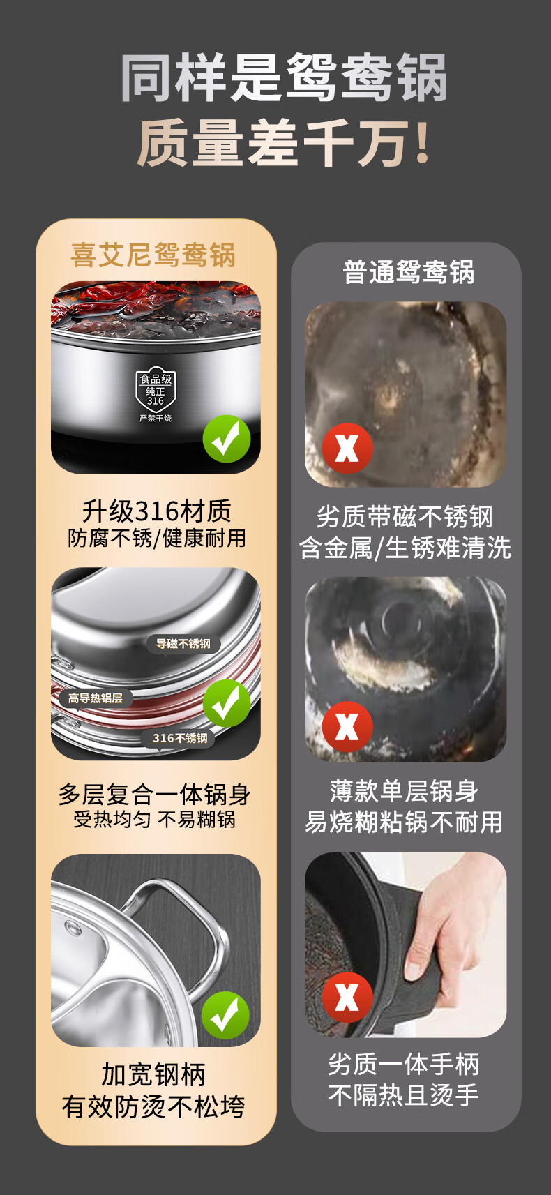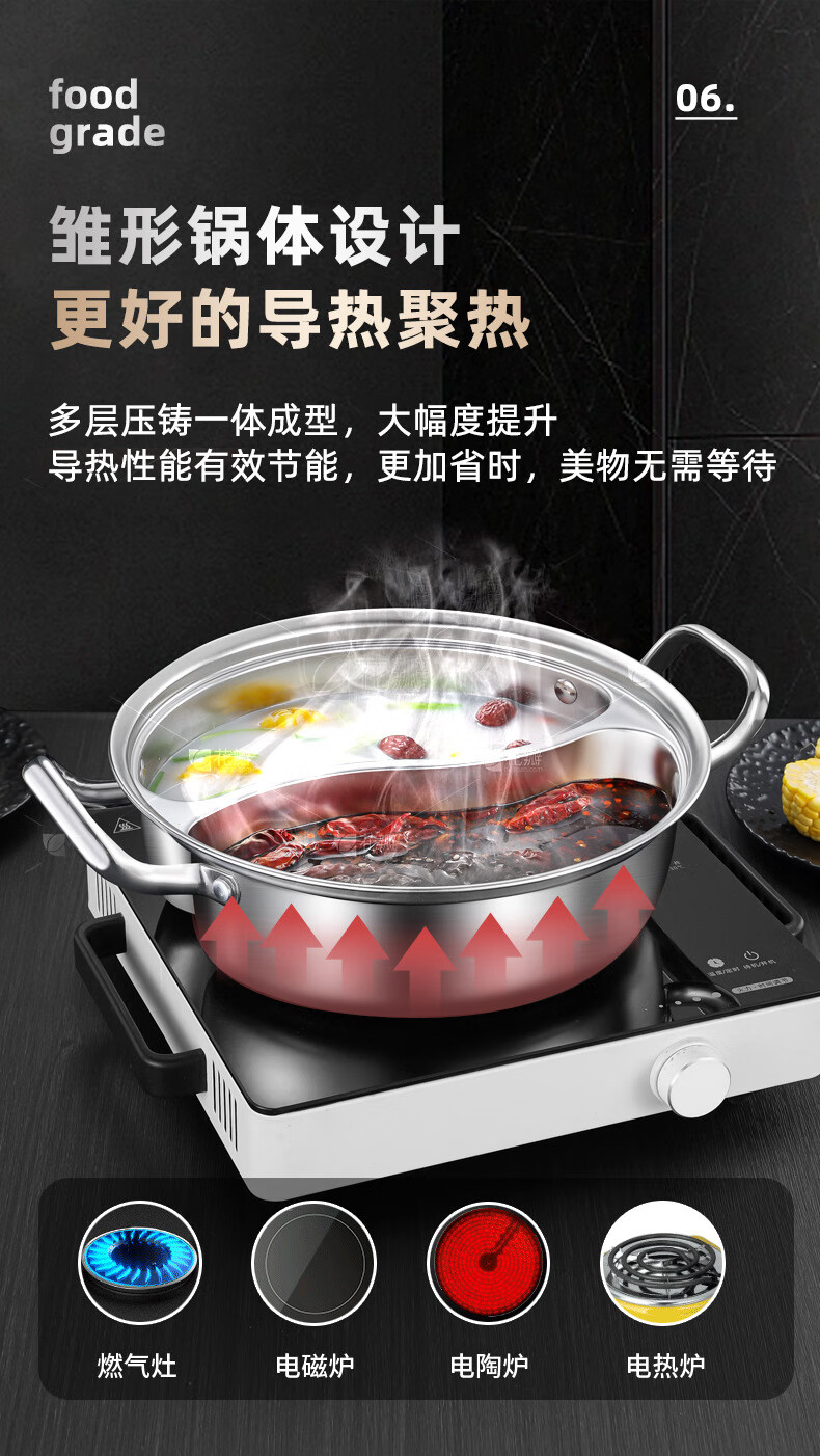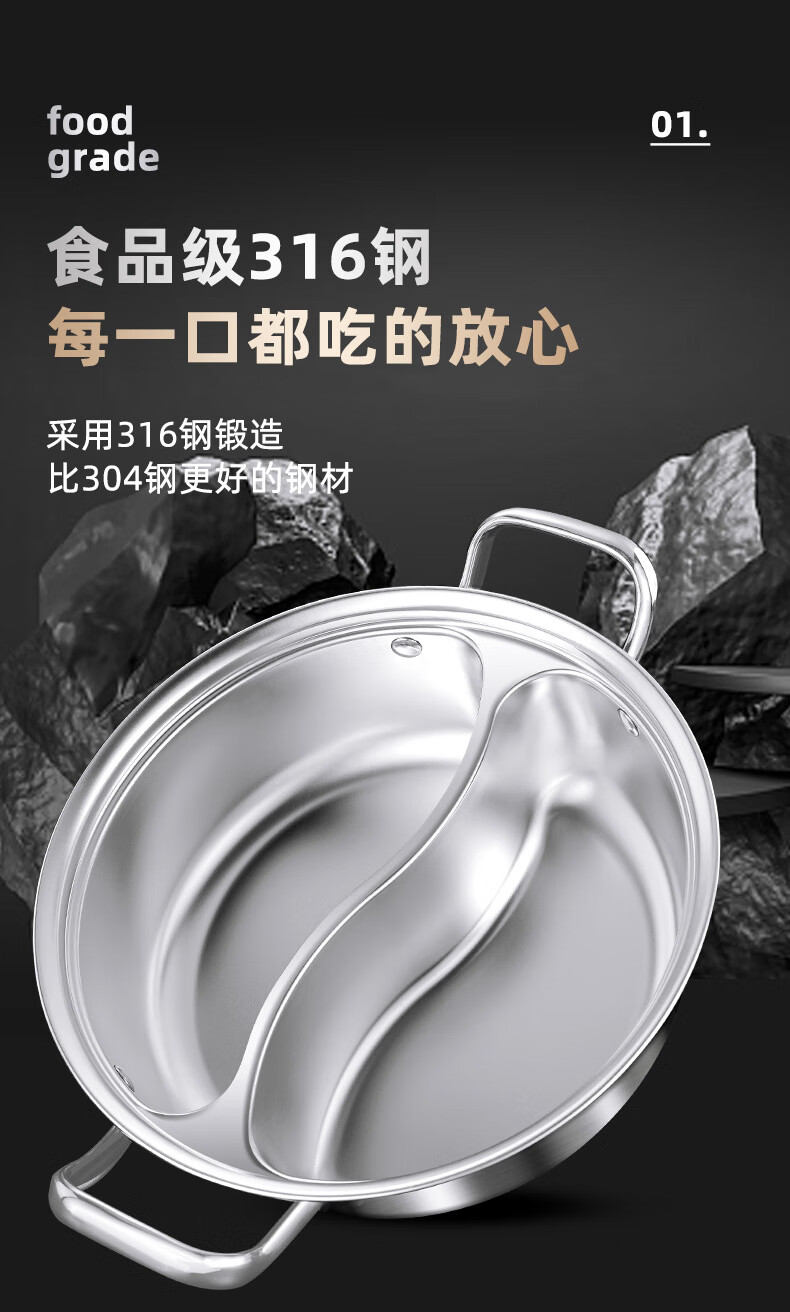 ZWILLING 316 stainless steel Yuanyang large-capacity soup pot special pot induction cooker hot pot household thickened thickened Yuanyang pot steel SUS316L 28cm