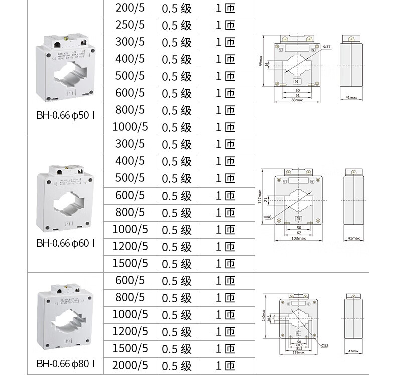 Chint AC current transformer 30 0.5 level 1 level 3 current ratio 75/150/300/5A BH-0.66 30B 50/5A 1 turn 0.5