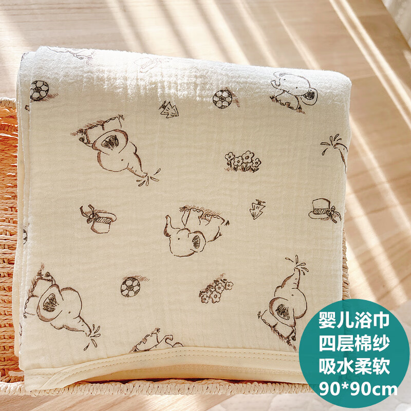 Dini Doudou baby pure cotton gauze bath towel super soft absorbent waterproof saliva towel bib newborn supplies blanket bag single cover towel gray baby elephant 4 layers organic cotton gauze bath towel 90*90cm