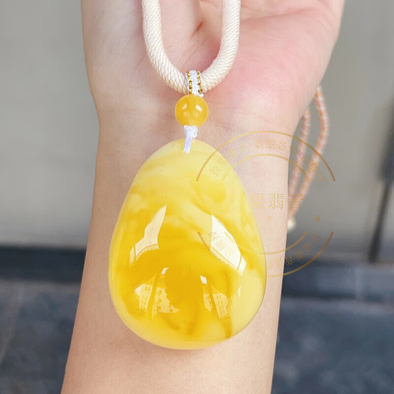 Layun Feiyin collection grade full honey yellow and white flower beeswax water drop pendant raw ore raw stone amber natural authentic product with certificate and gift 52*39*22mm about 28 grams