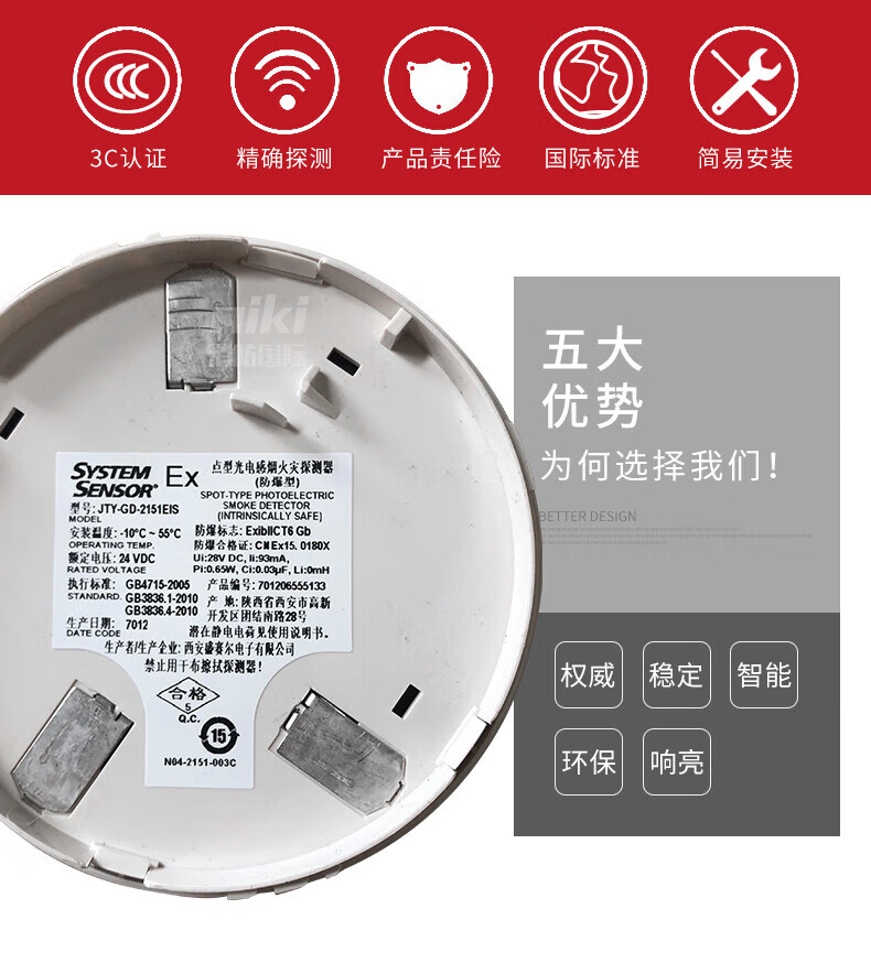 Shengser explosion-proof smoke photosensitive inductive smoke fire detector non-coded 2151EIS explosion-proof smoke detector with base for marine use