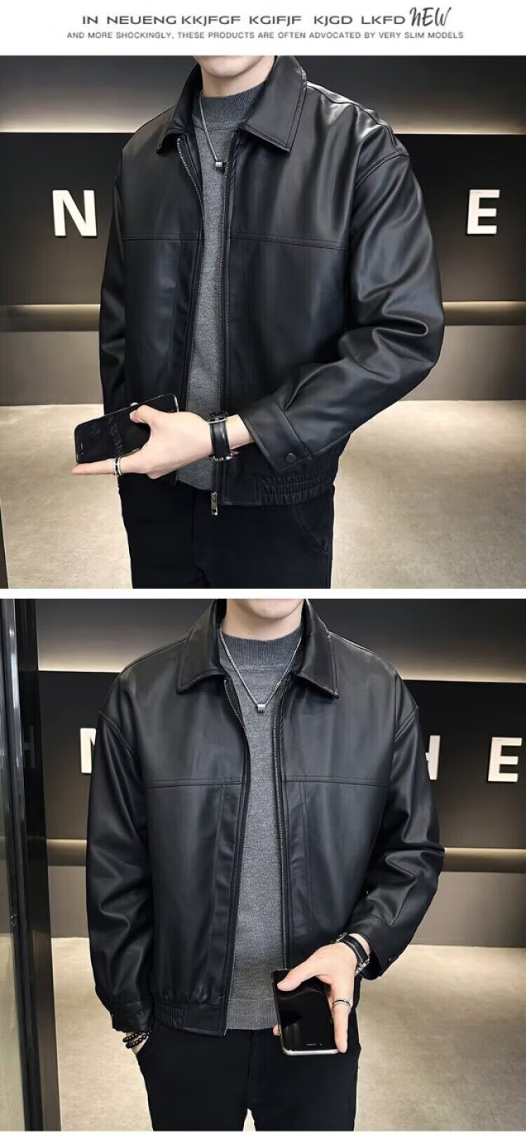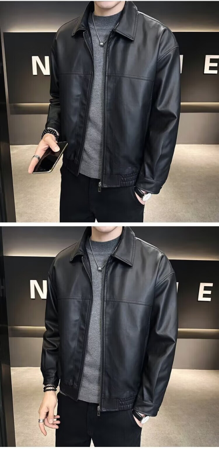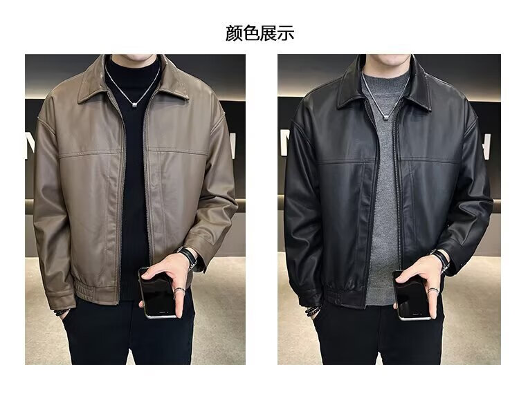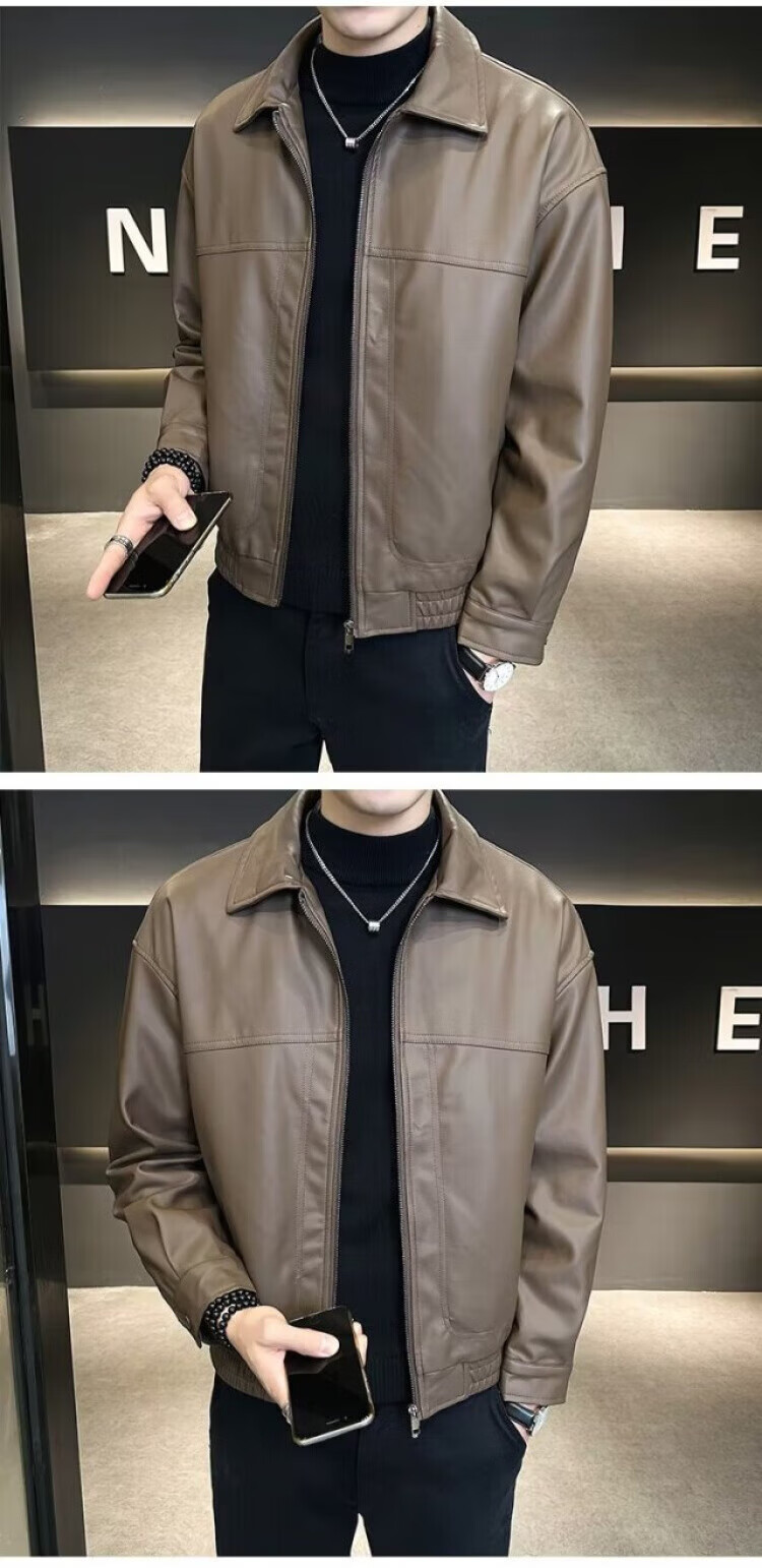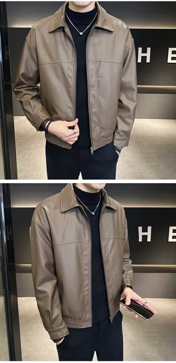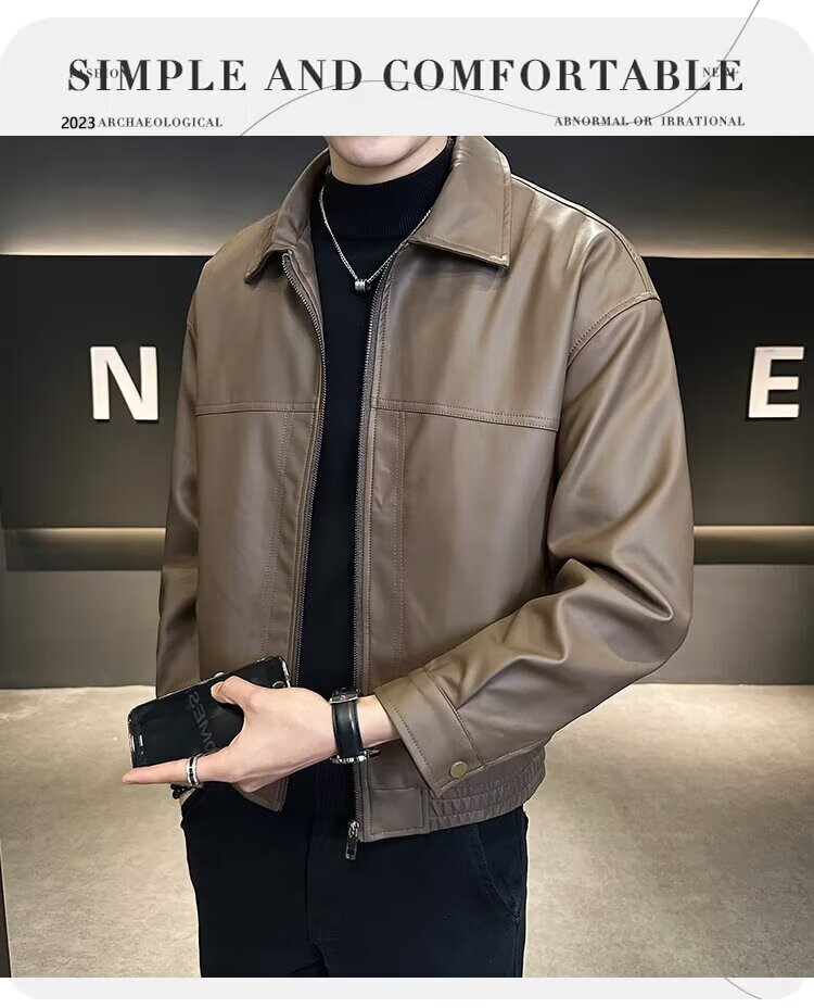 Men's Short Leather Jacket Men's Handsome New Autumn and Winter Motorcycle Leather Jacket Brown L