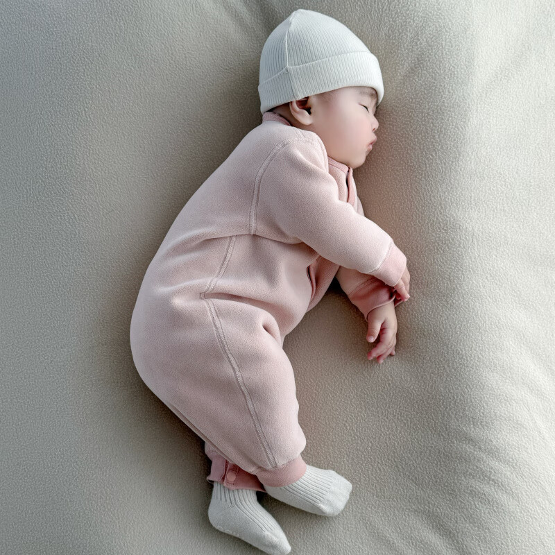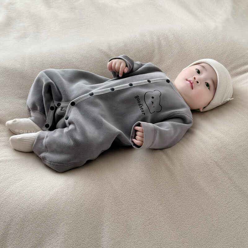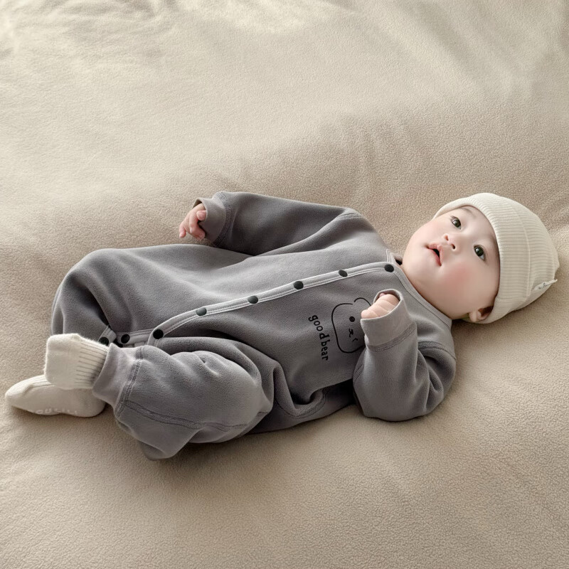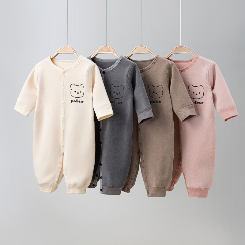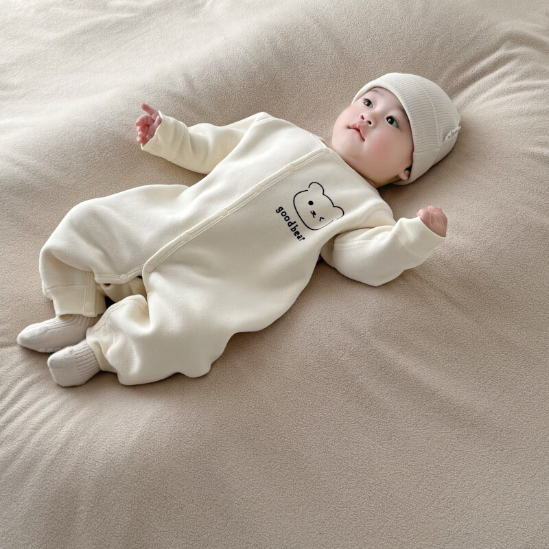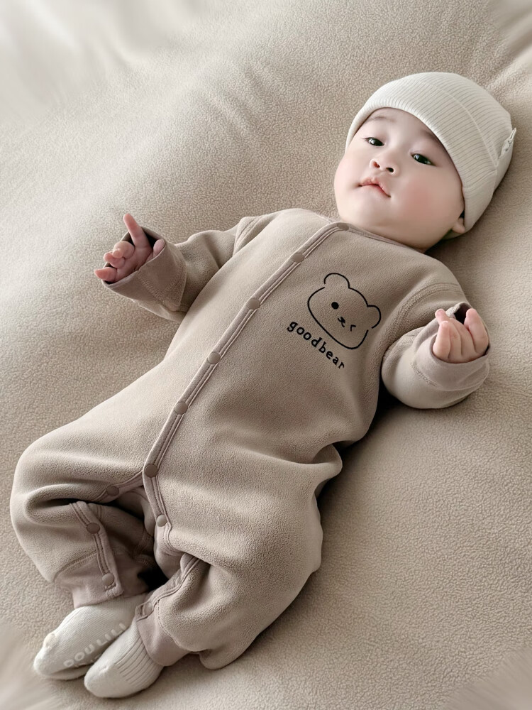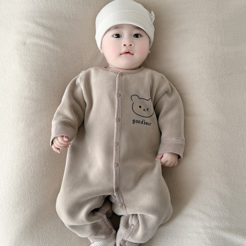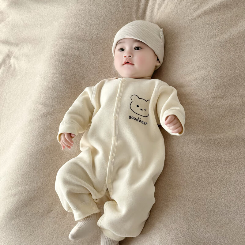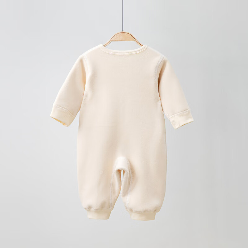 Semir children's warm velvet jumpsuit for spring, autumn and winter, warm velvet outdoor clothing for boys and girls, baby indoor rompers, beige warm velvet edged jumpsuit 66cm