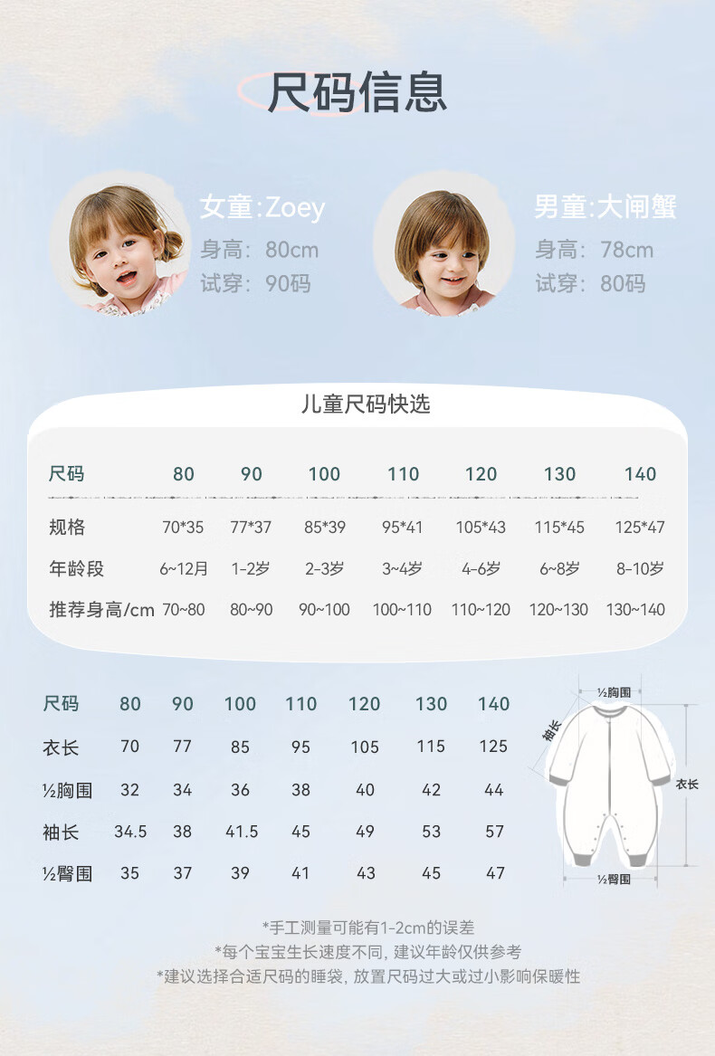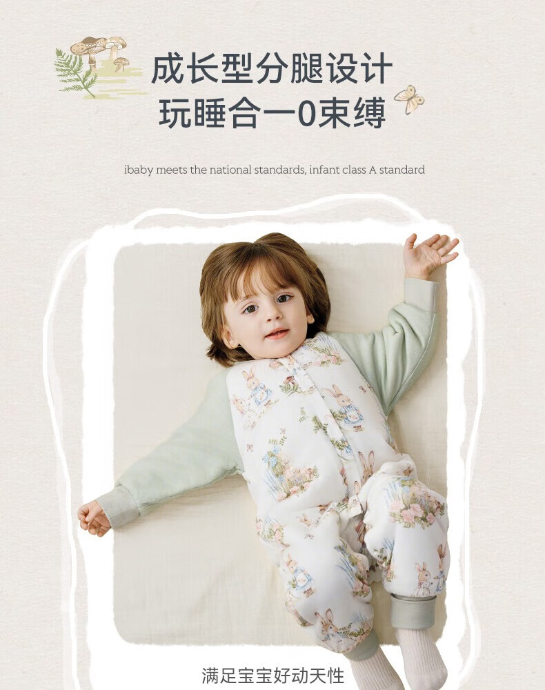 I-babyibaby baby sleeping bag with split legs, constant temperature, autumn and winter knitted cotton pajamas for infants and young children, baby anti-kicking quilt 7A 20-2460g comfortable style - Makino Meadow, size 90, height 80-90cm