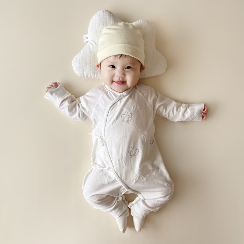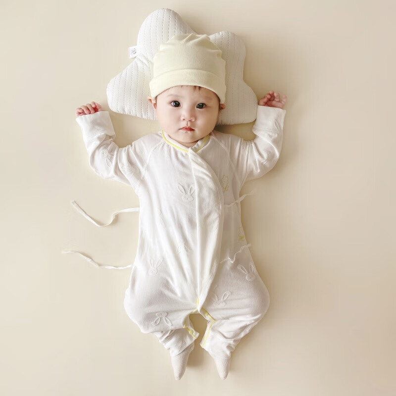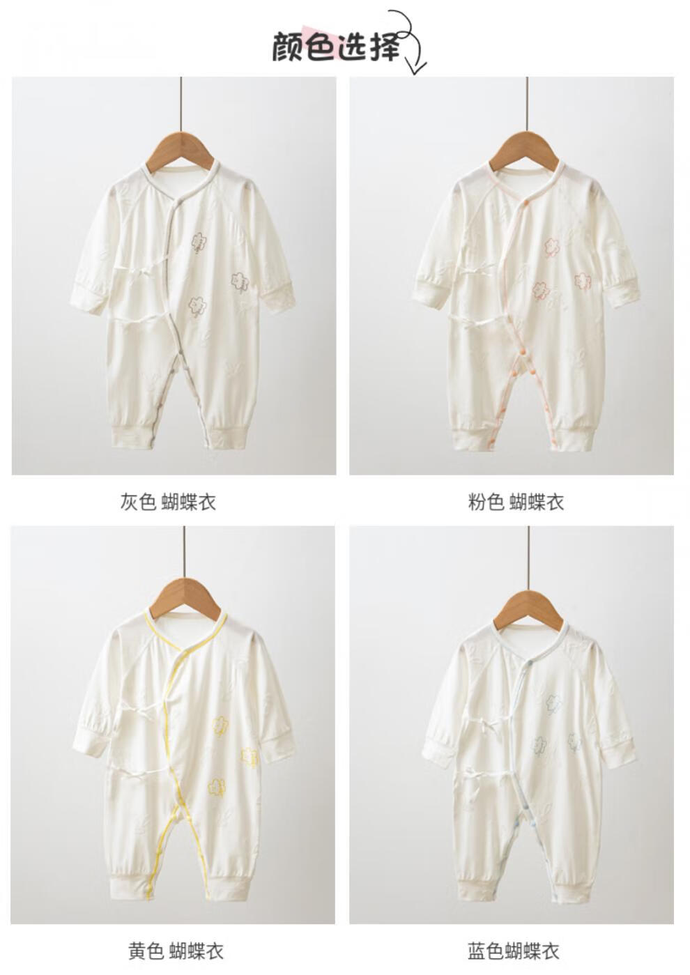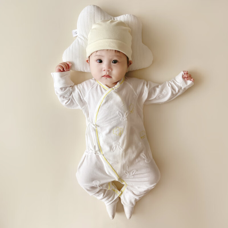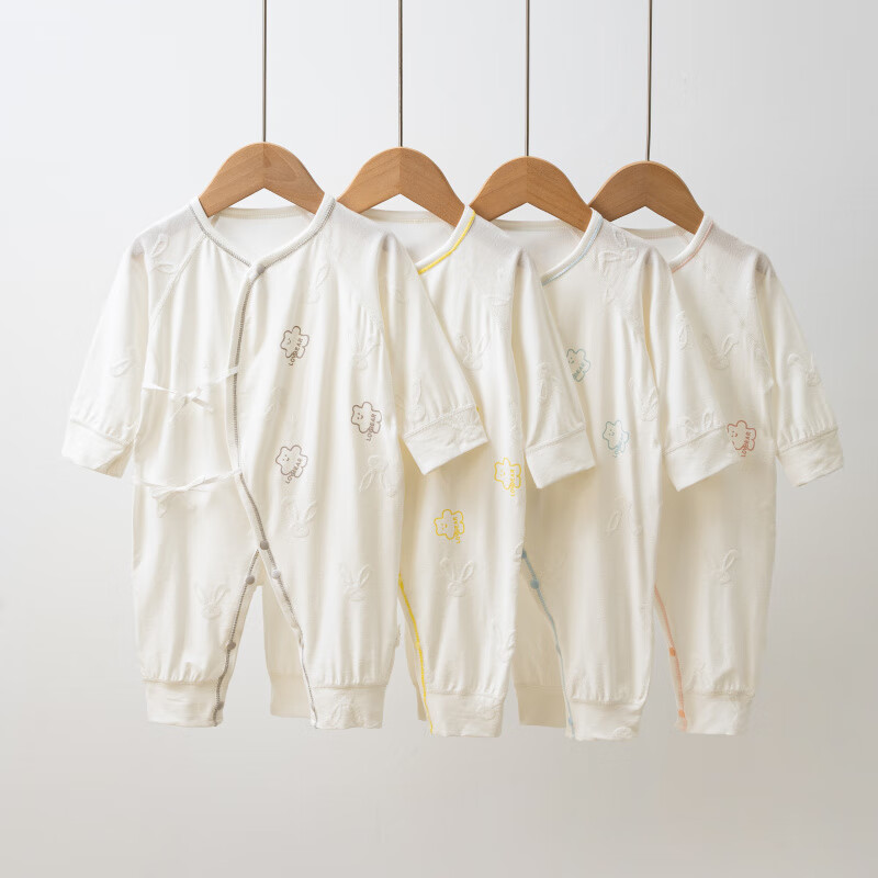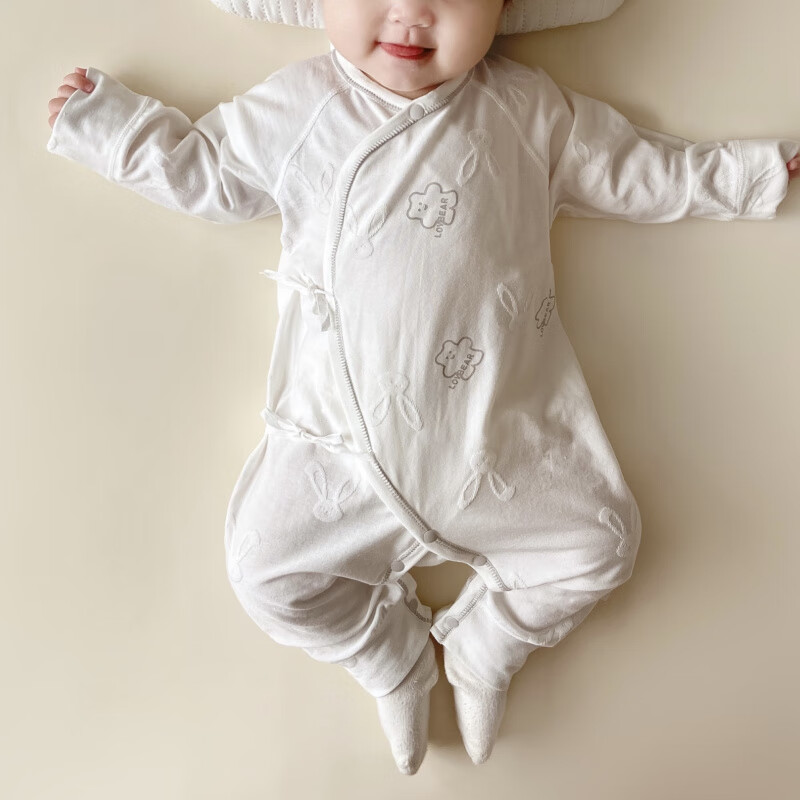 Semir children's spring and autumn newborn baby's oblique lapel lace-up butterfly clothing baby long-sleeved one-piece romper suit four seasons baby clothes gray towel rabbit butterfly clothing 90cm