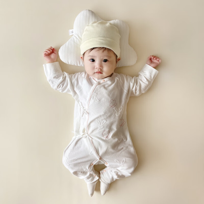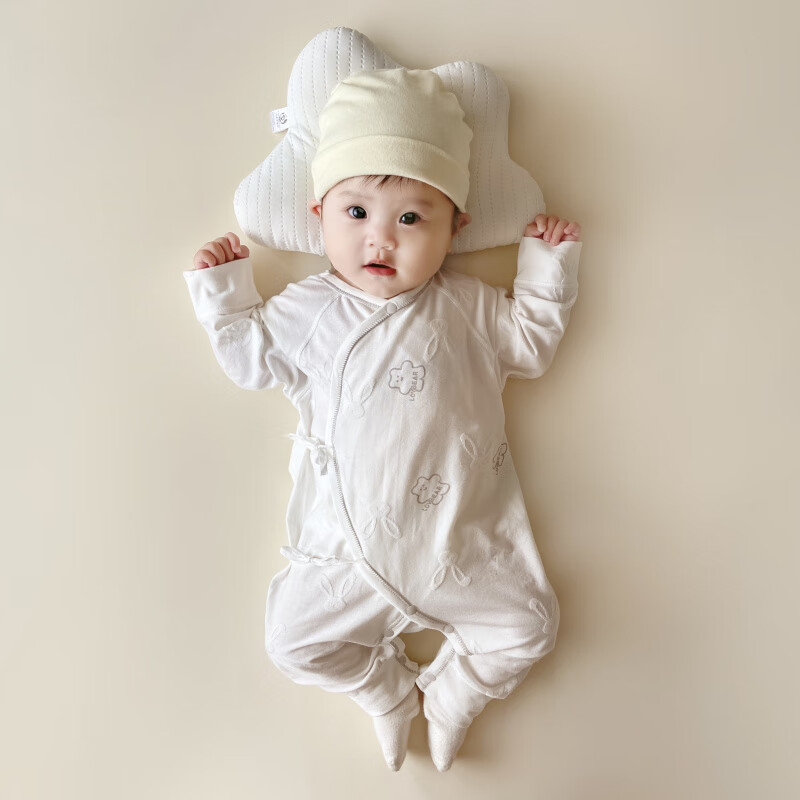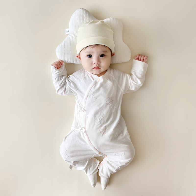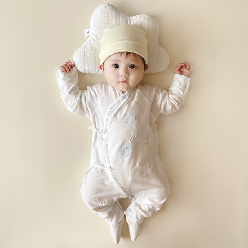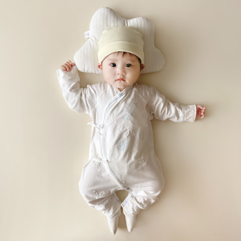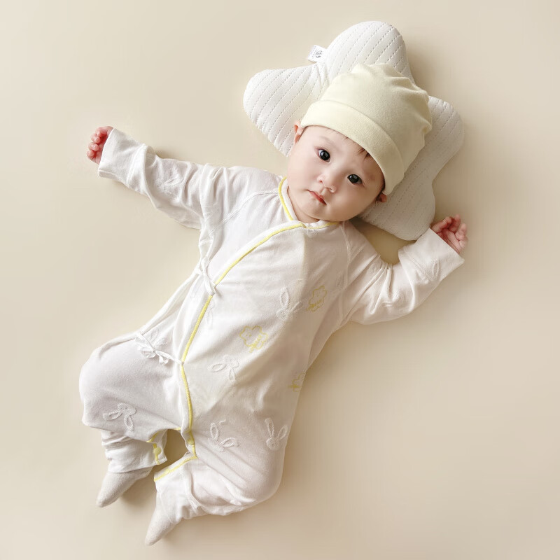 Semir children's spring and autumn newborn baby's oblique lapel lace-up butterfly clothing baby long-sleeved one-piece romper suit four seasons baby clothes gray towel rabbit butterfly clothing 90cm